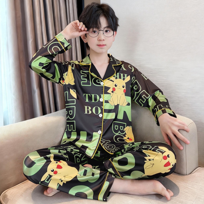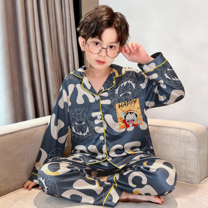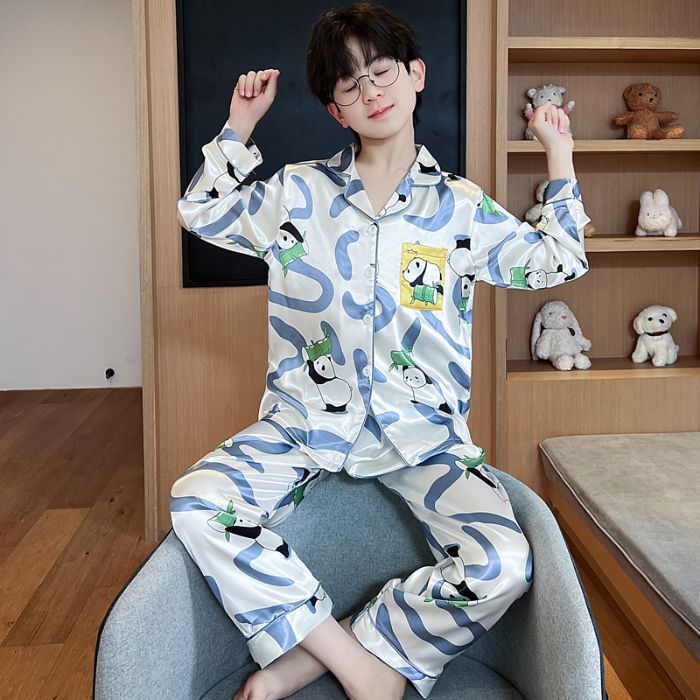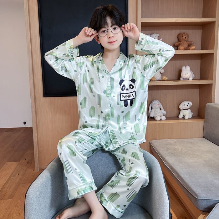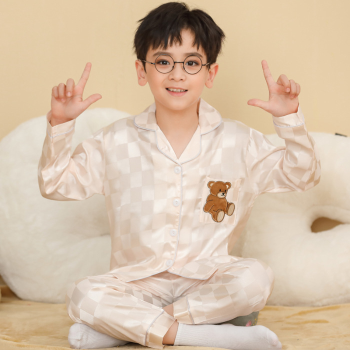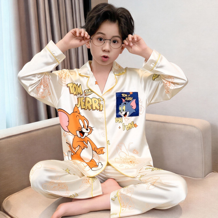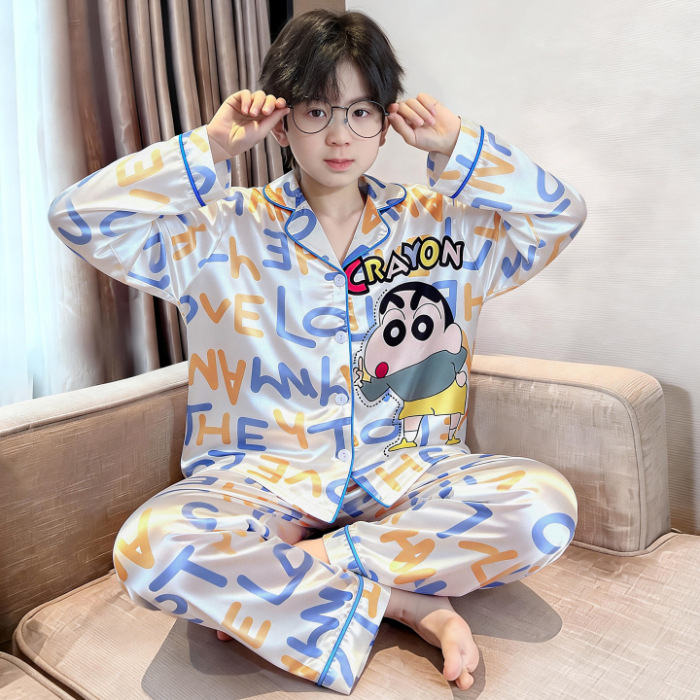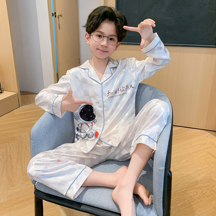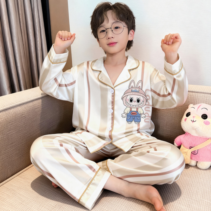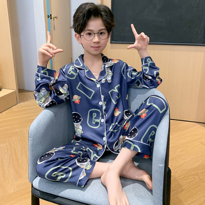남아용 아이스 실크 잠옷, 얇은 긴팔 봄/가을 2025년 신상 아동 홈웨어 세트, 중대형 아동용 에어컨 의류스토어 가기