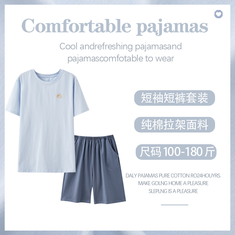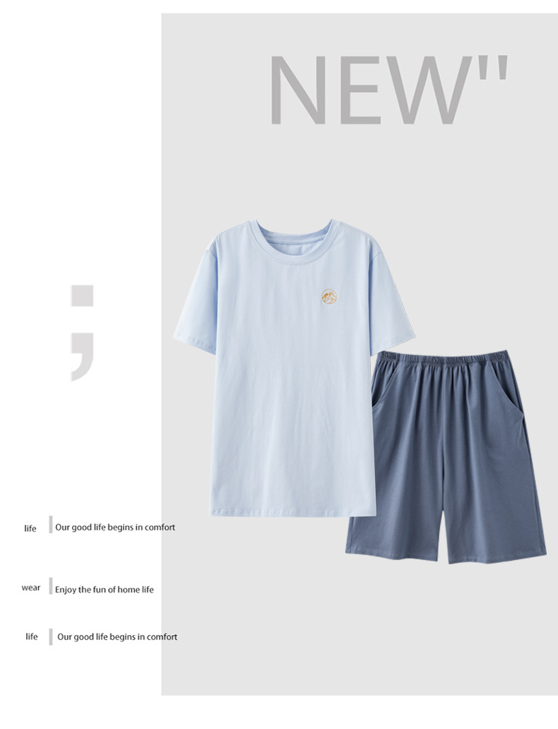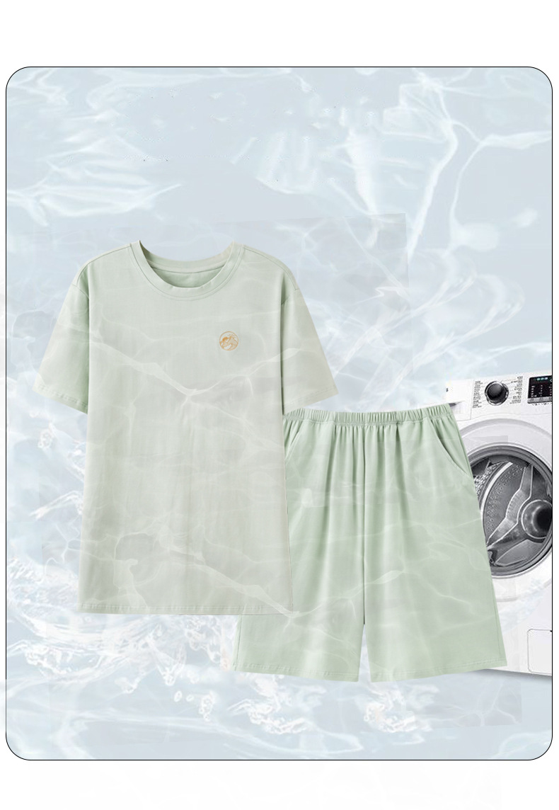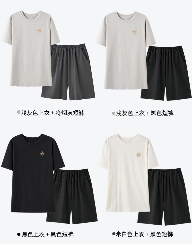 2024 봄과 여름 새로운 시원한면 풀 프레임 짧은 소매 반바지 둥근 목 간단한 멀티 컬러 옵션 남성용 홈웨어 세트스토어 가기