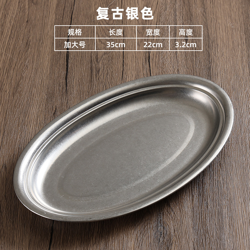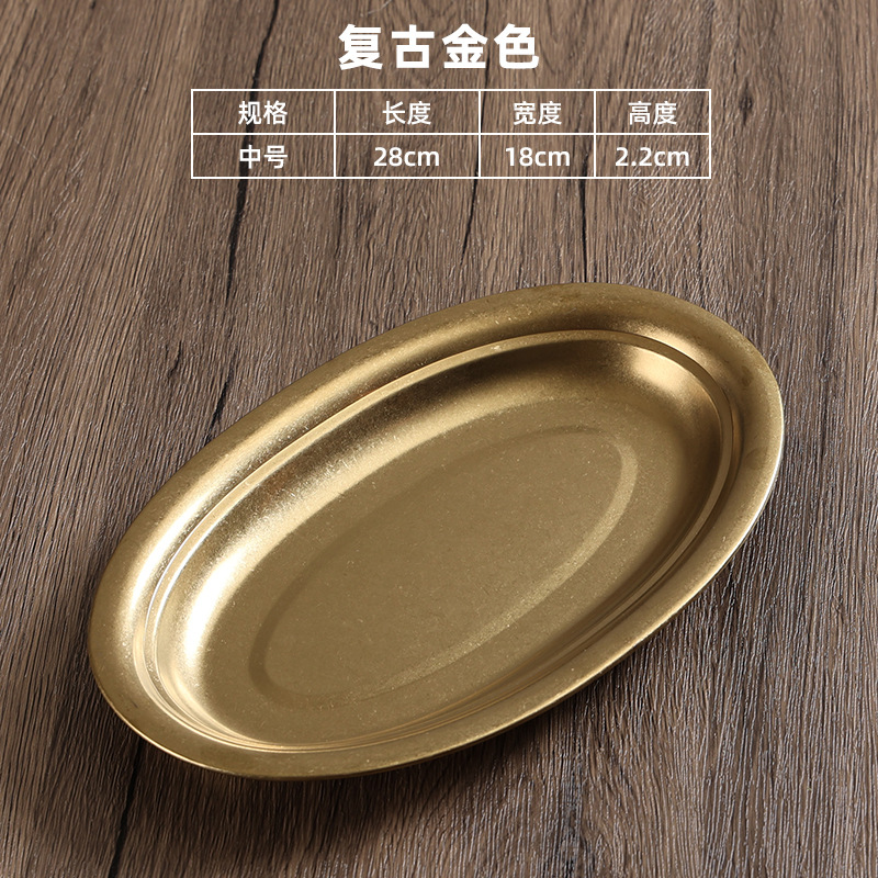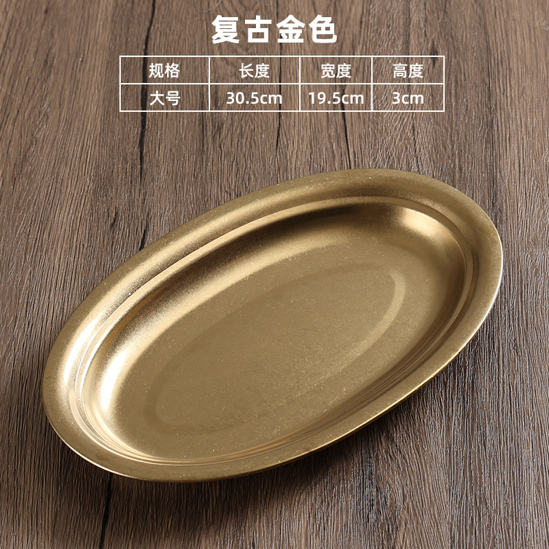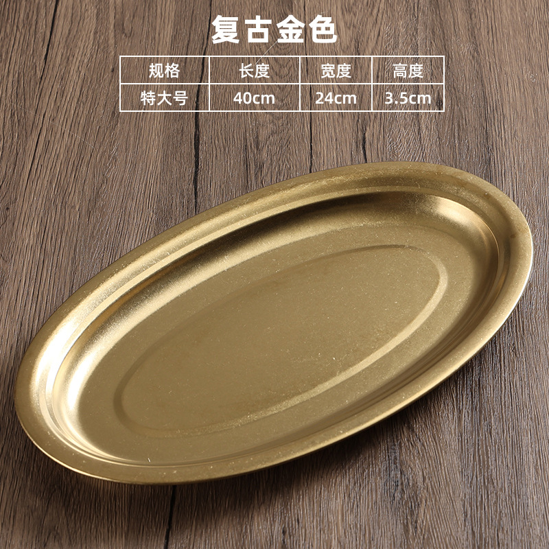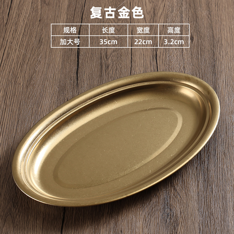 한국 304 스테인리스 타원형 찐 생선 접시 바베큐 접시 창조적 인 황금 데니어 플레이트 차가운 요리 바베큐 접시스토어 가기