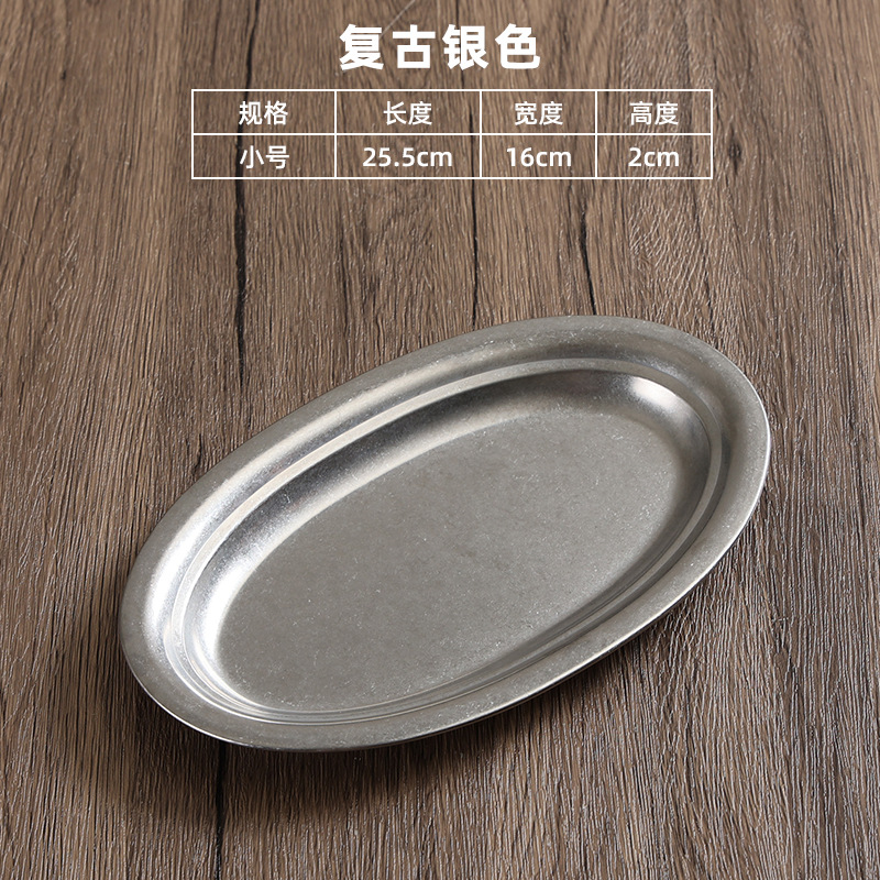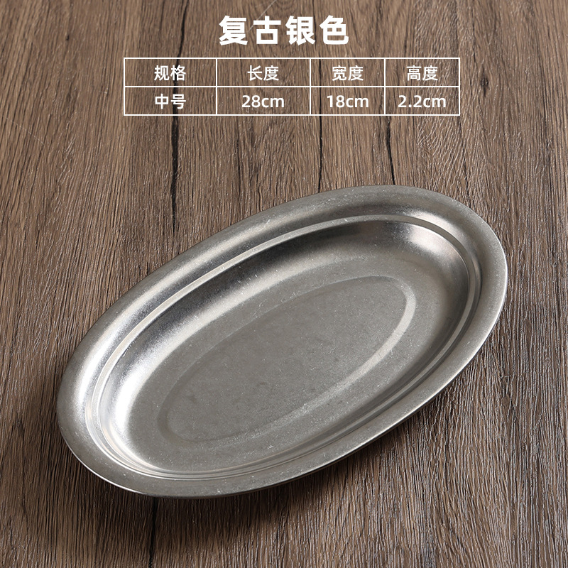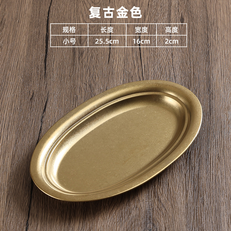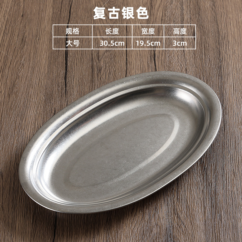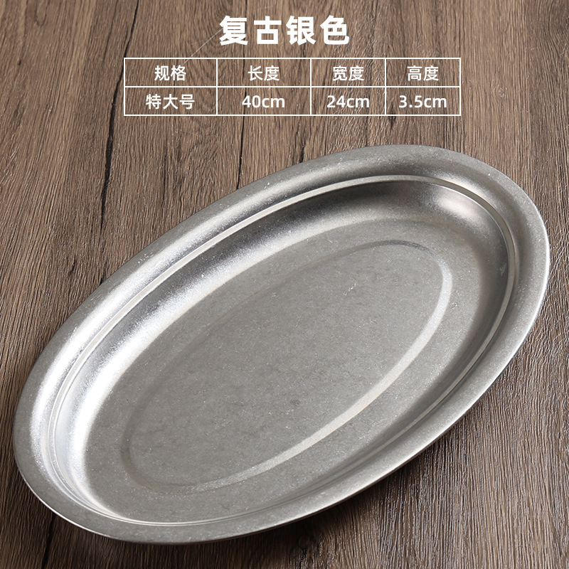 한국 304 스테인리스 타원형 찐 생선 접시 바베큐 접시 창조적 인 황금 데니어 플레이트 차가운 요리 바베큐 접시스토어 가기