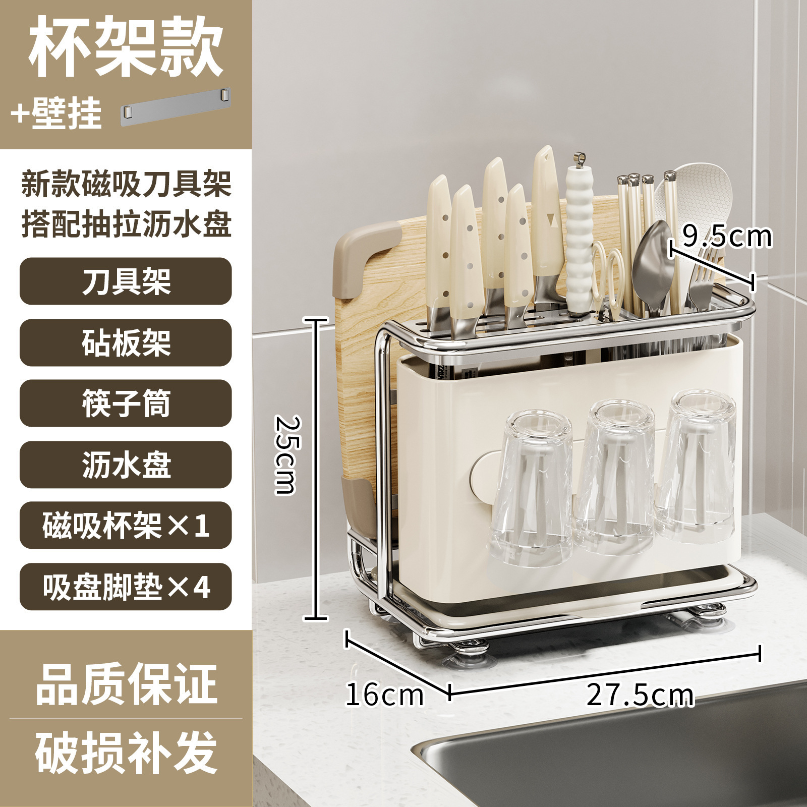• 벽걸이형 [크림 스타일] 자석 칼꽂이 [컵 홀더 포함]