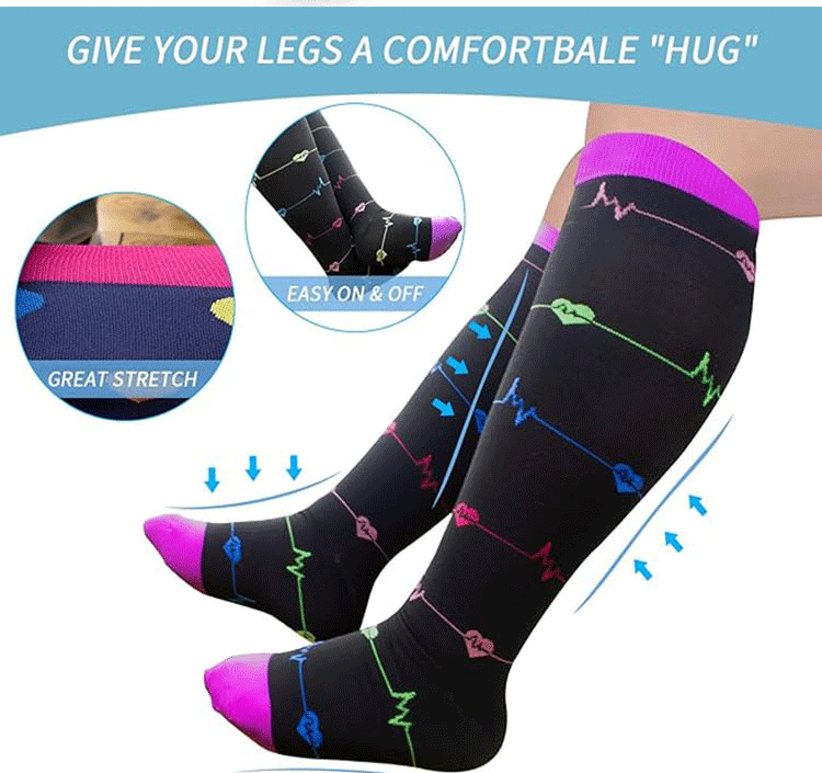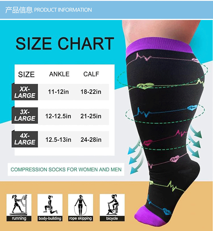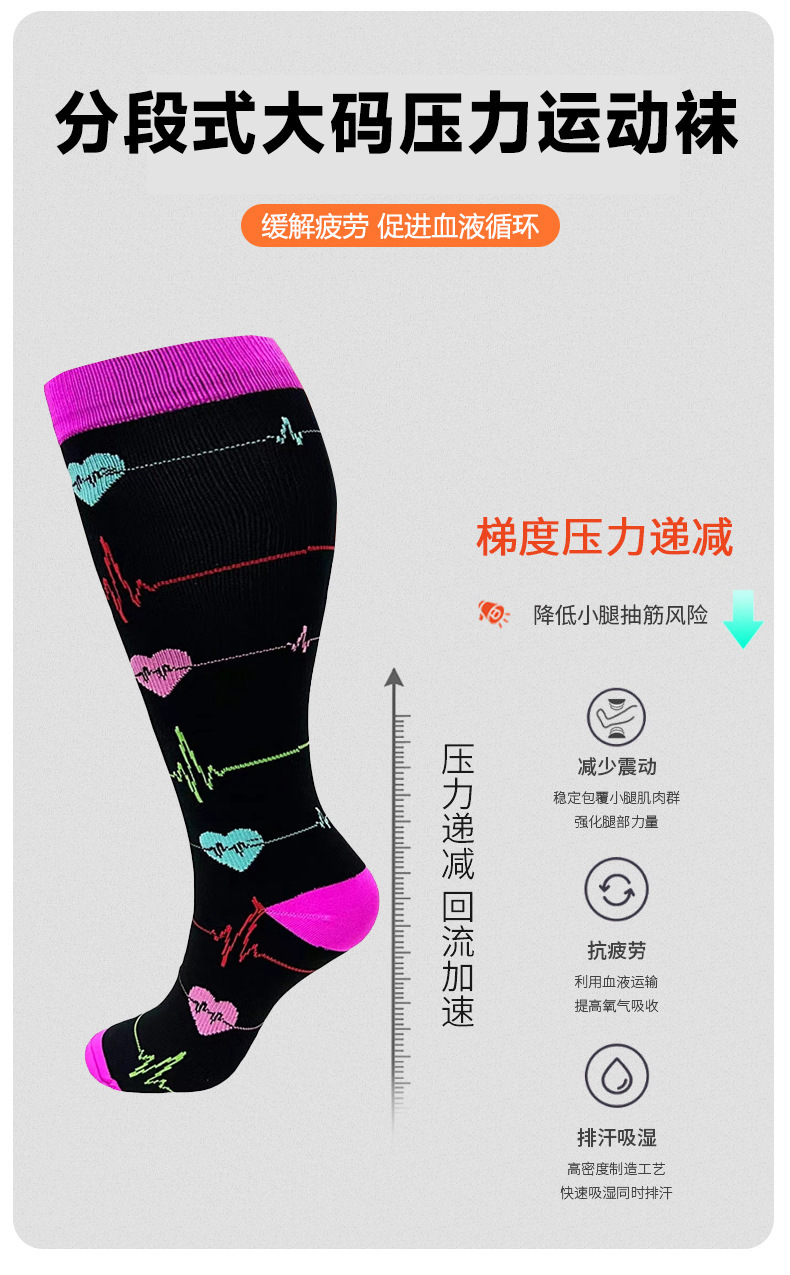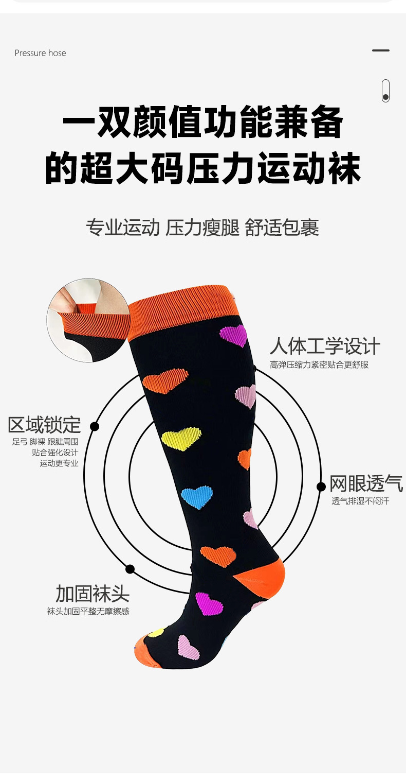 2XL-7XL 사이즈의 특대형 압박 양말, 스포츠 압박 양말, 피트니스 러닝 양말, 종아리 높이까지 오는 고탄력 양말