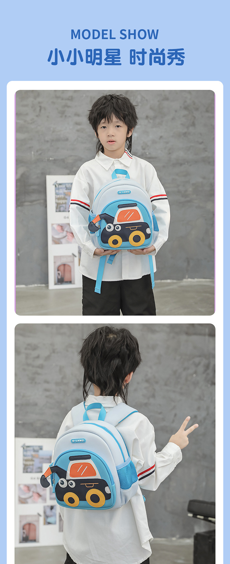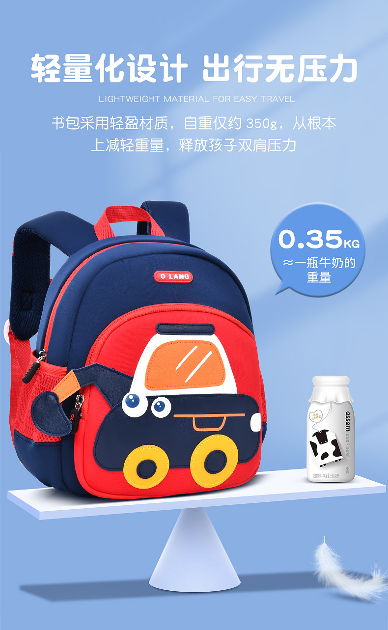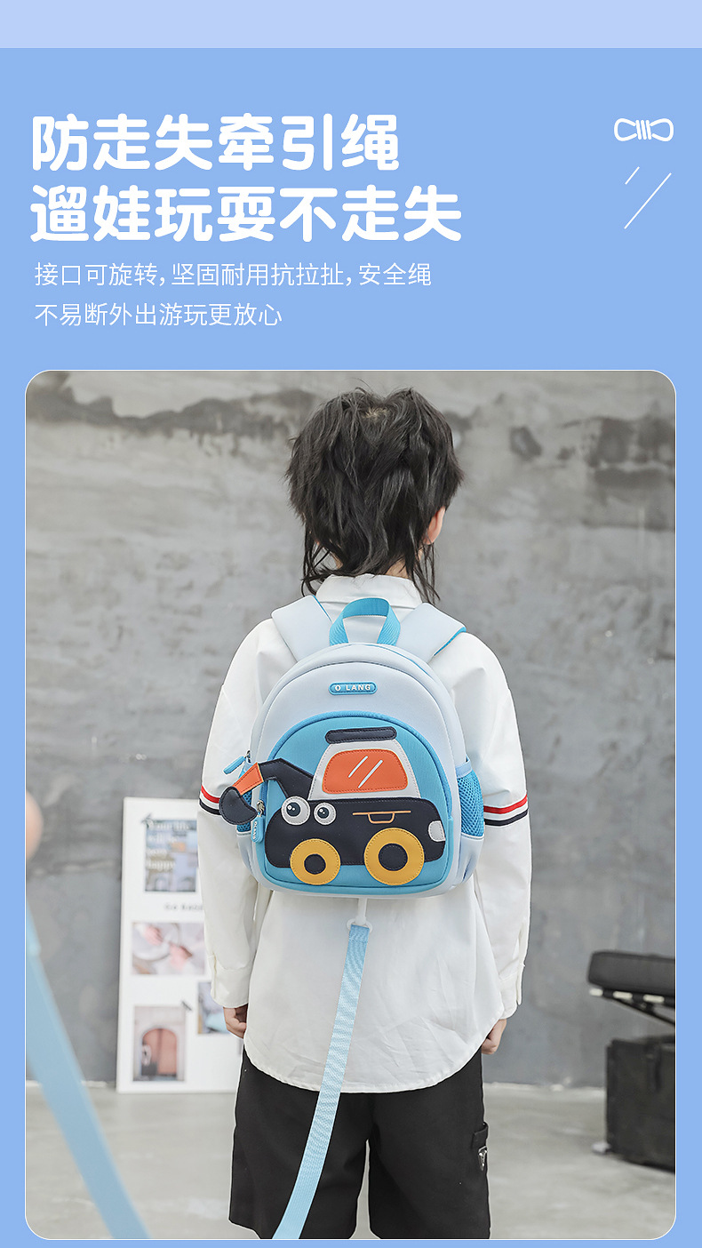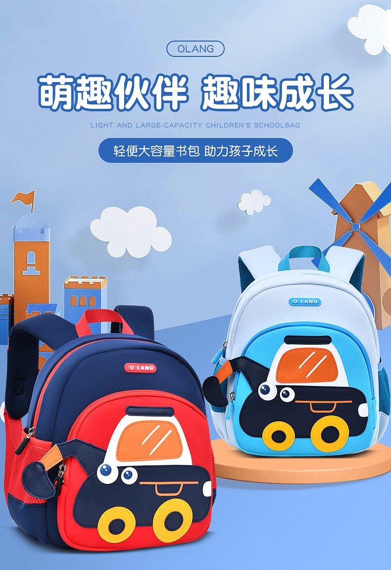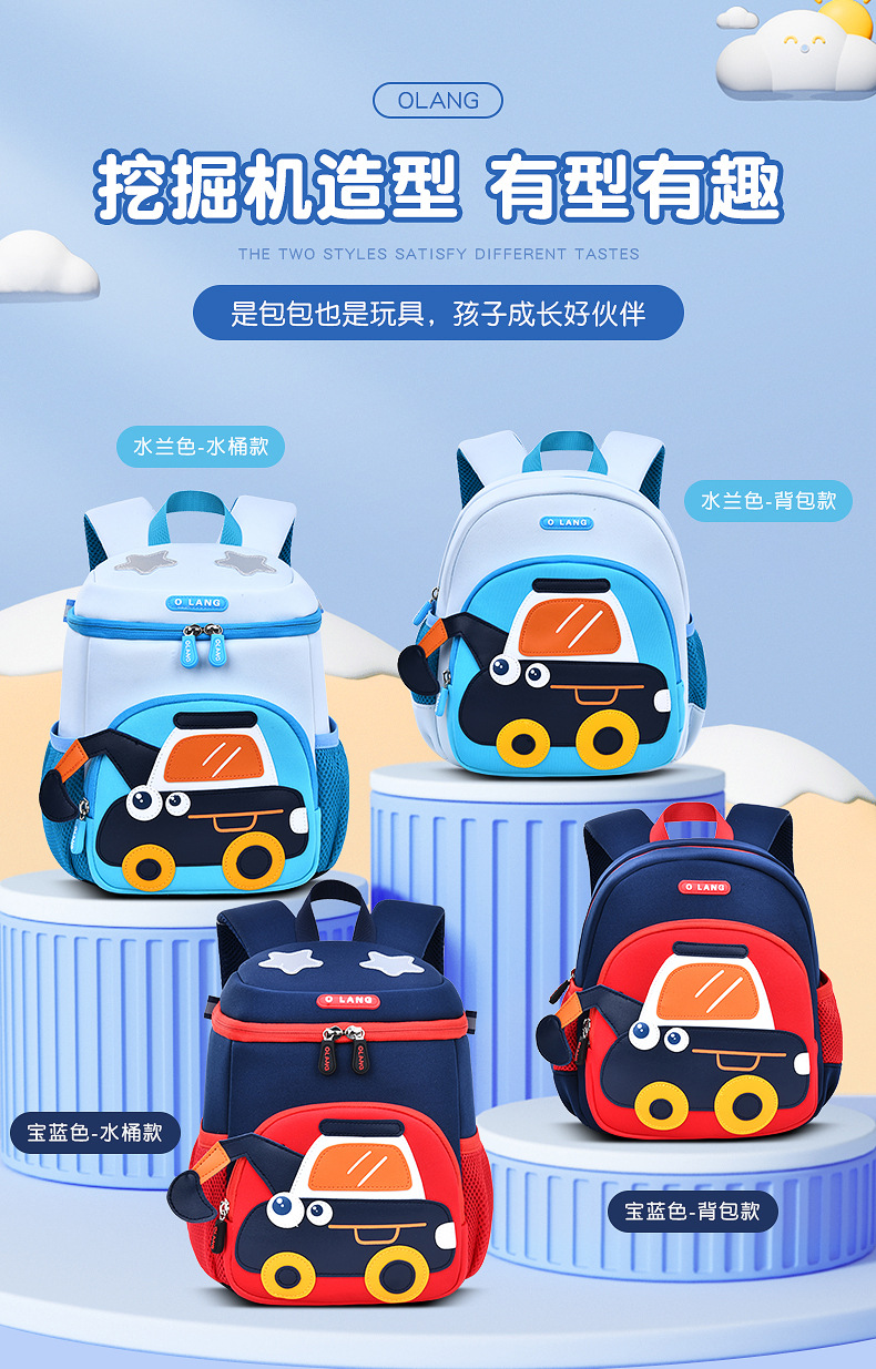 Olang 가죽 귀여운 굴삭기 책가방 만화 책가방 배낭 통기성 방수 다이빙 소재 유치원 책가방스토어 가기