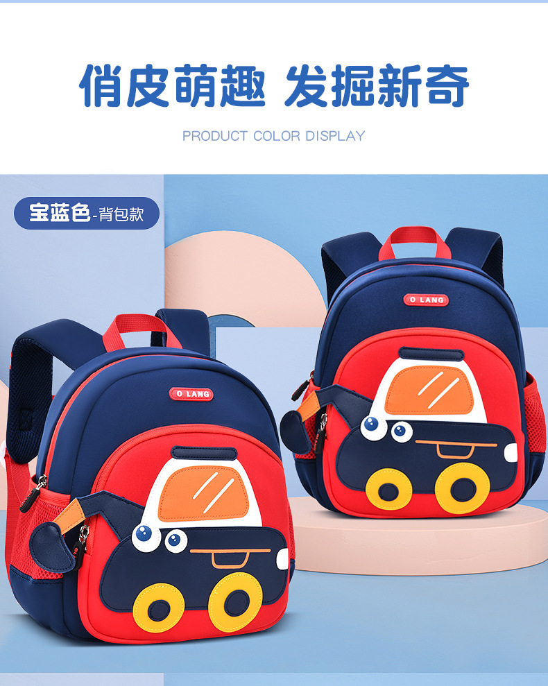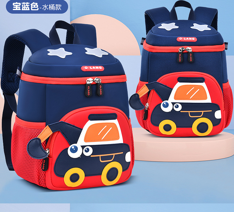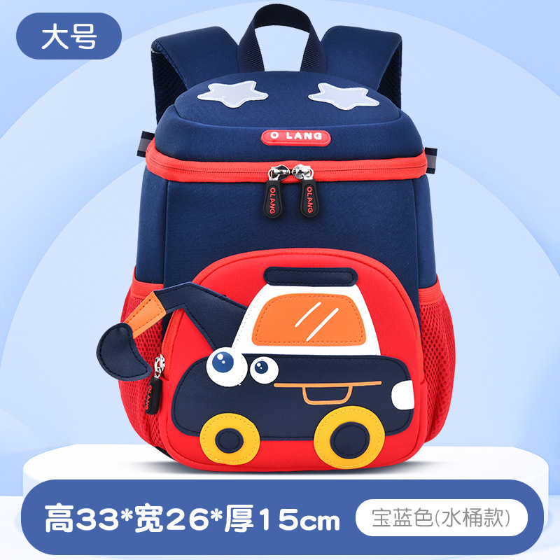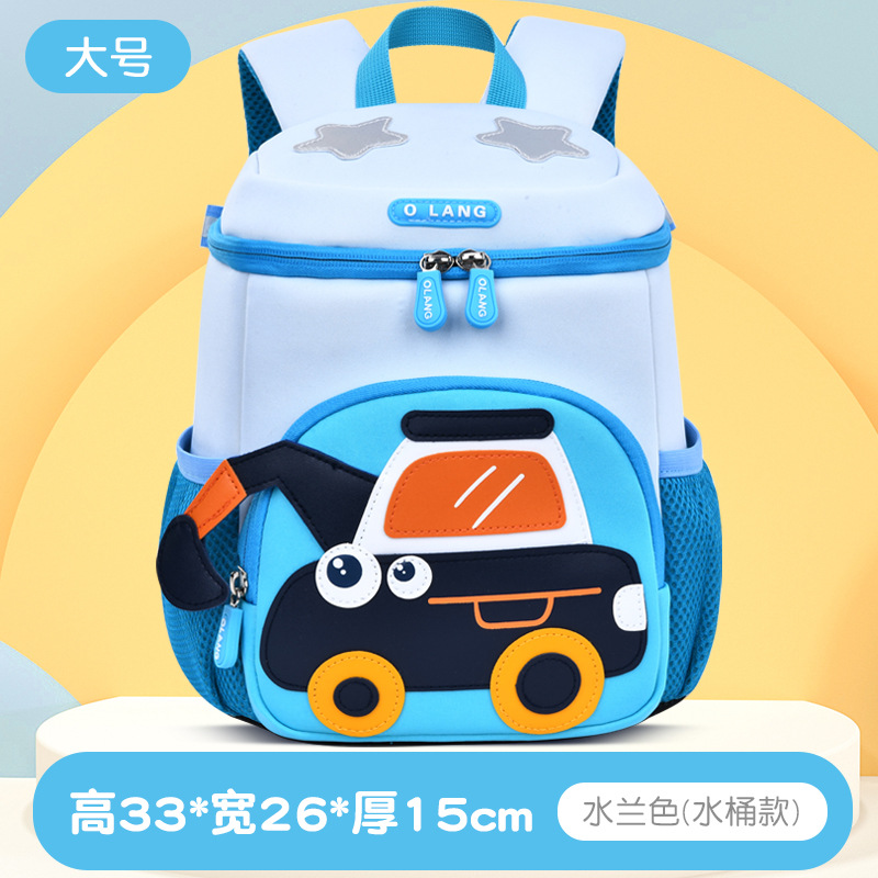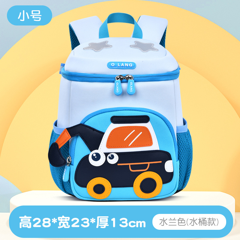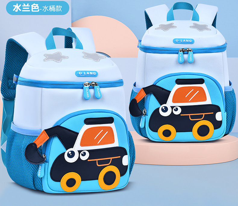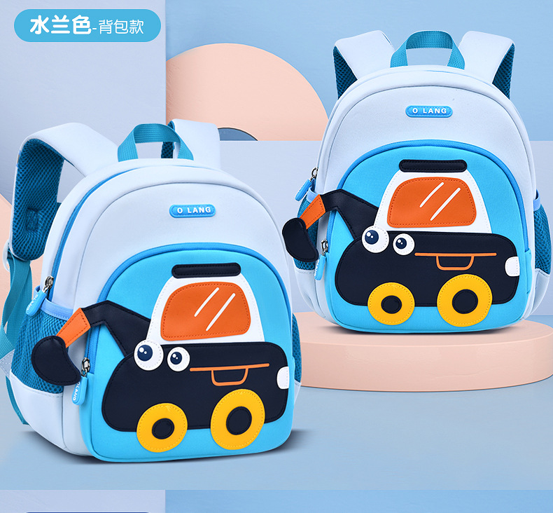 Olang 가죽 귀여운 굴삭기 책가방 만화 책가방 배낭 통기성 방수 다이빙 소재 유치원 책가방