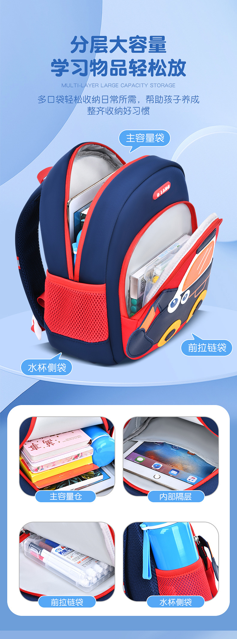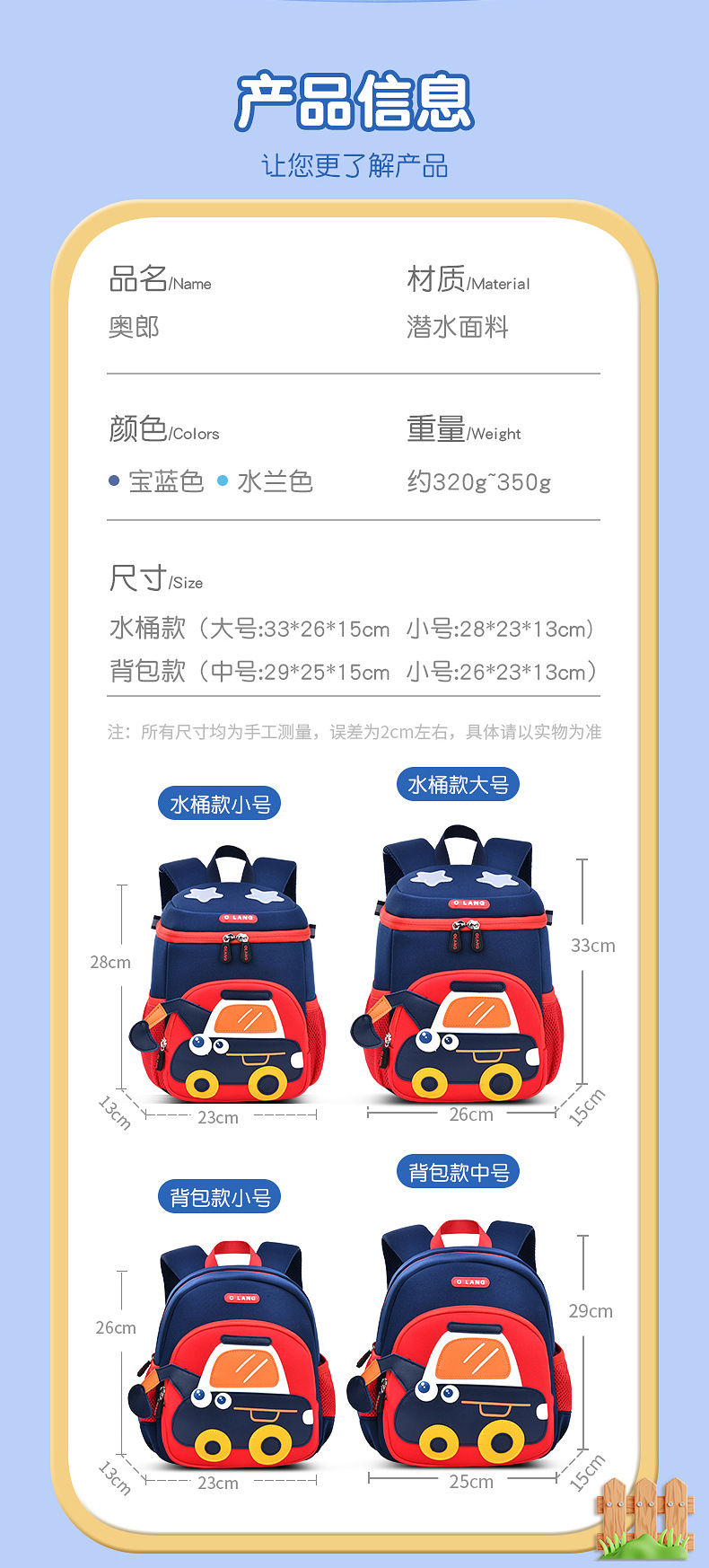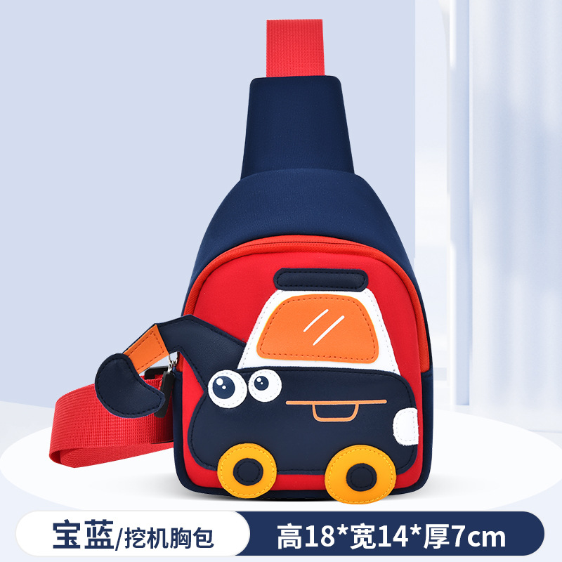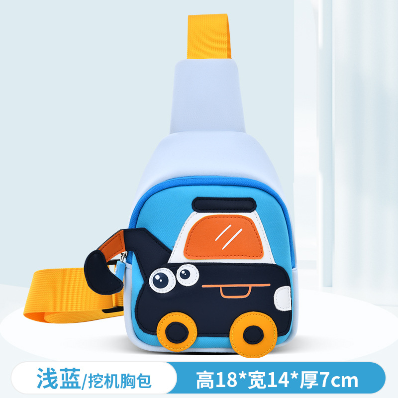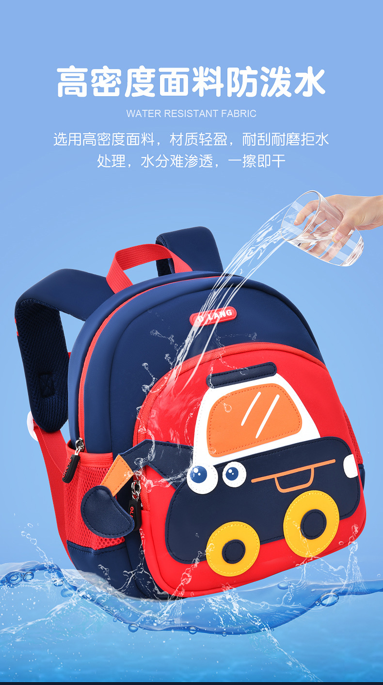 Olang 가죽 귀여운 굴삭기 책가방 만화 책가방 배낭 통기성 방수 다이빙 소재 유치원 책가방