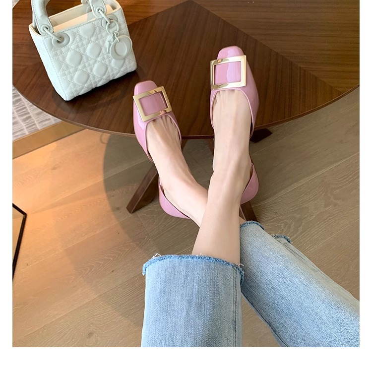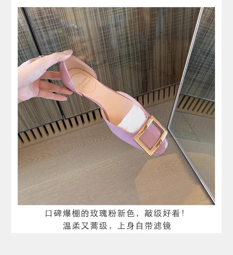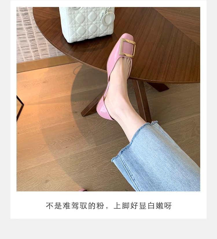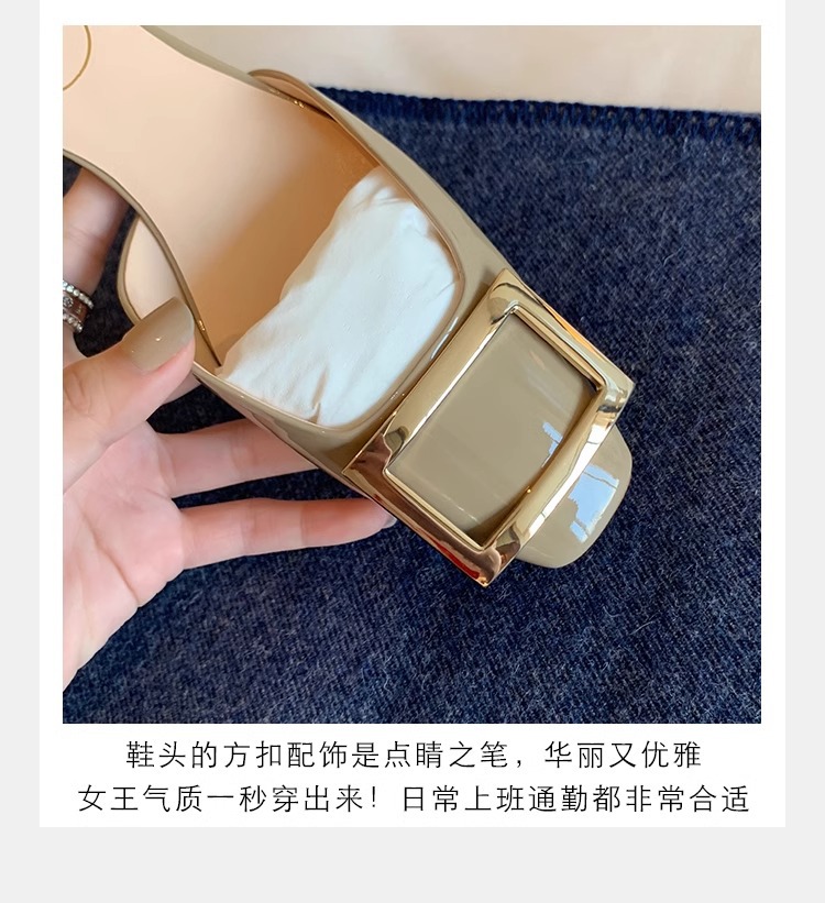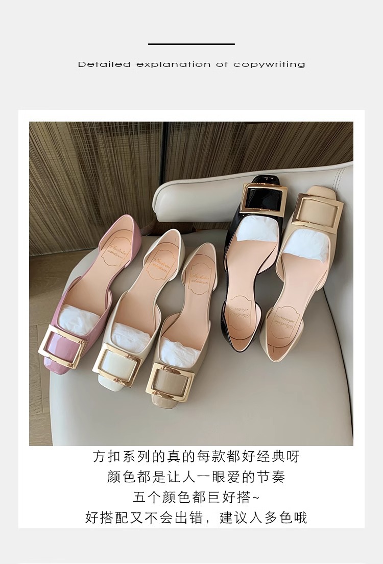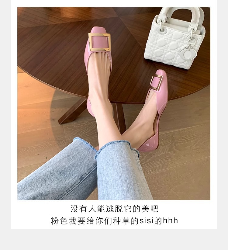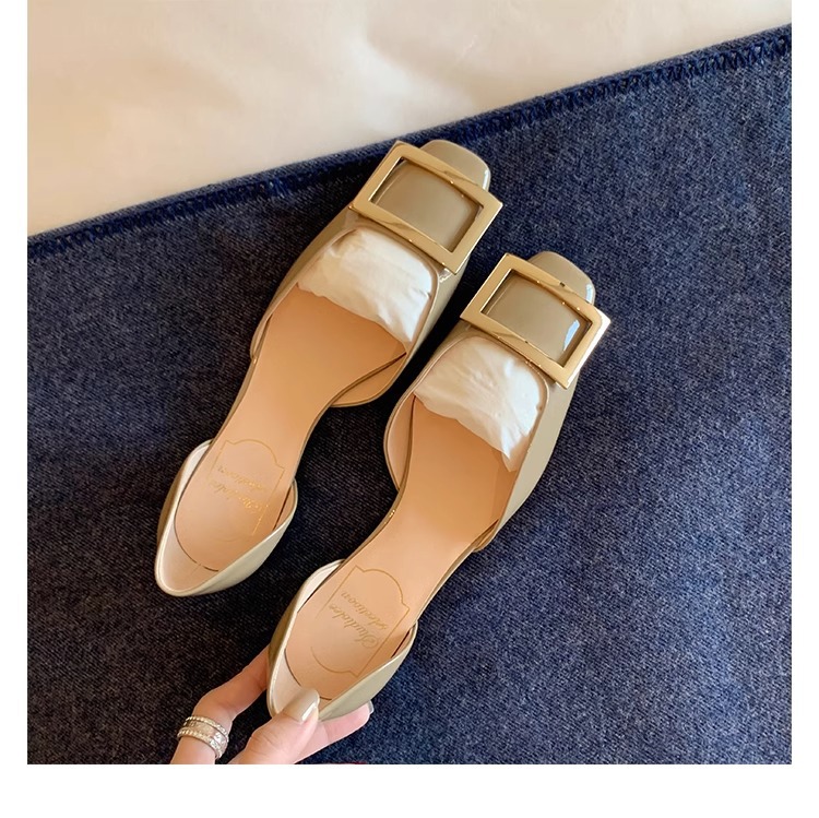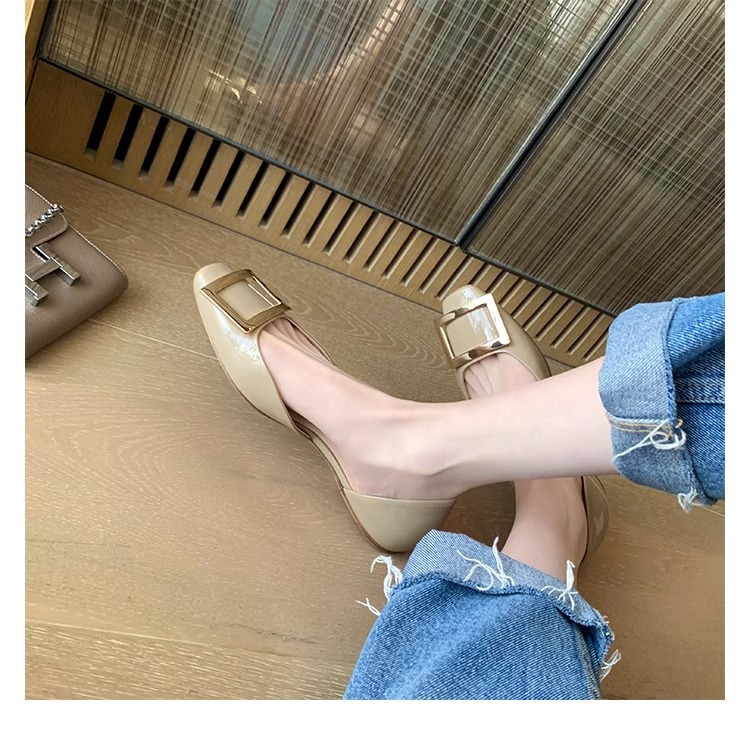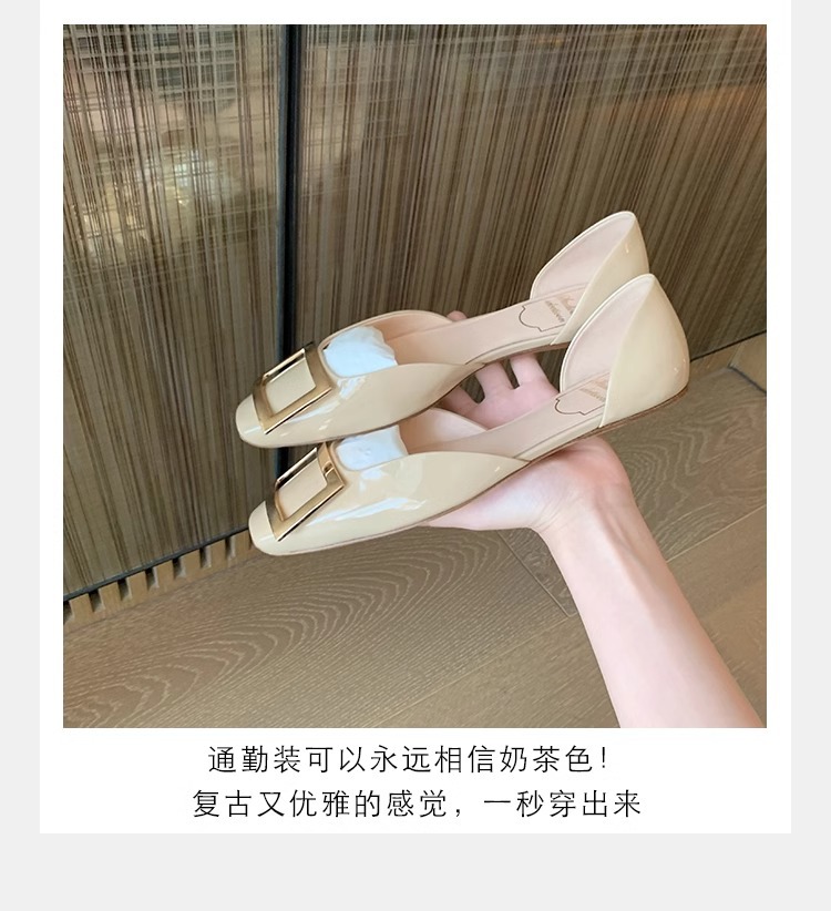 누드 컬러의 샤넬 스타일 슬립온, 우아한 사각 버클, 에나멜 가죽, 요정풍 사각 앞코, 얕은 입구, 속이 비치는 플랫 슈즈, 여성용 여름 신발스토어 가기