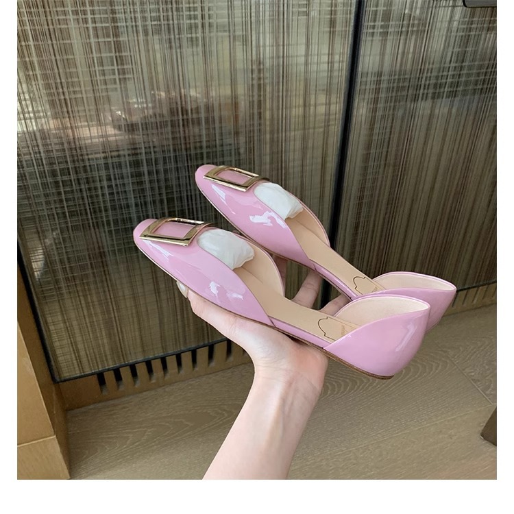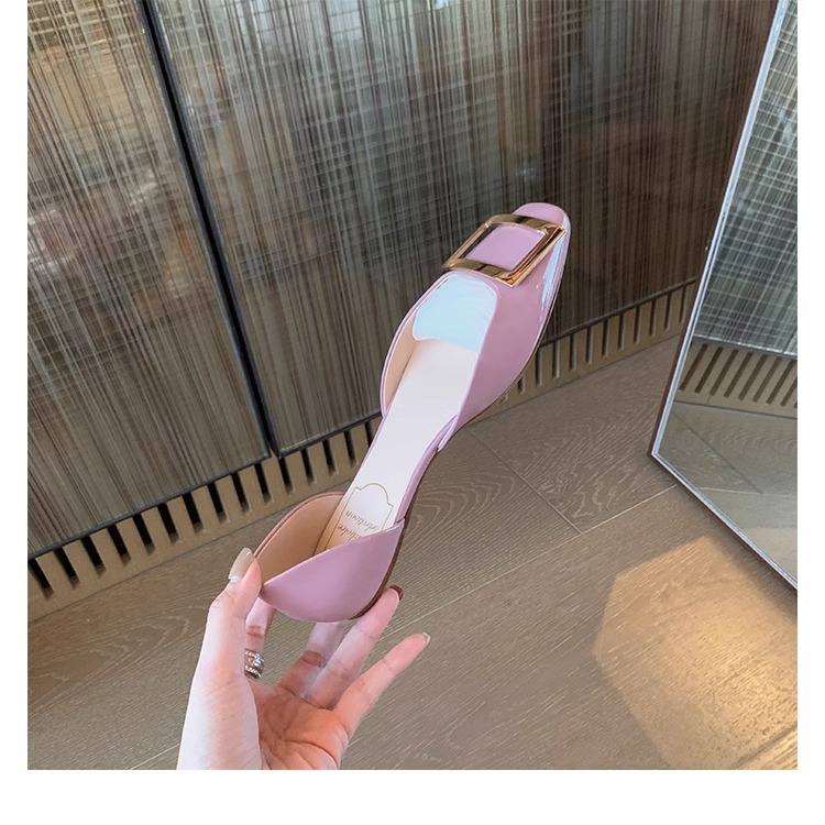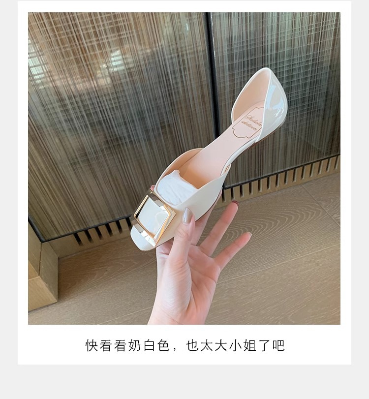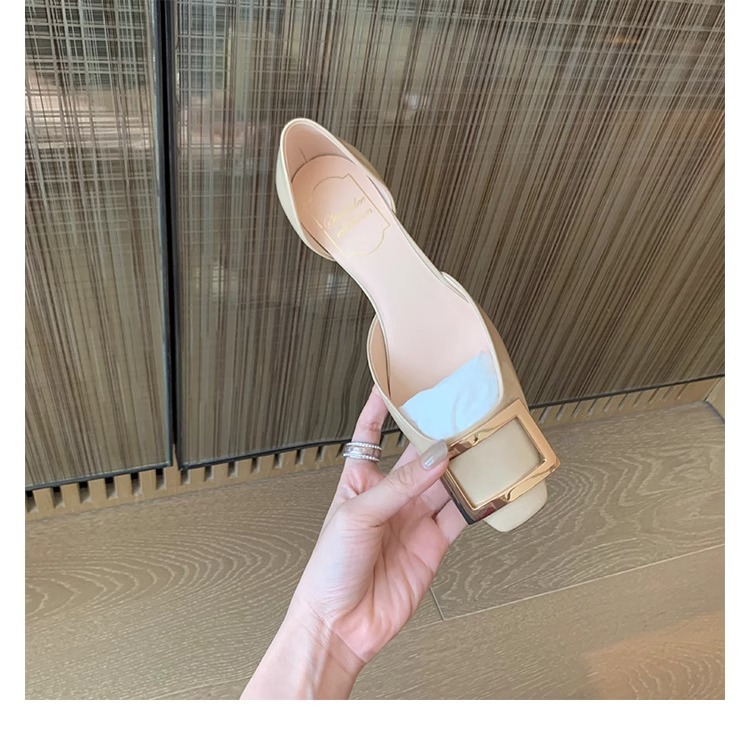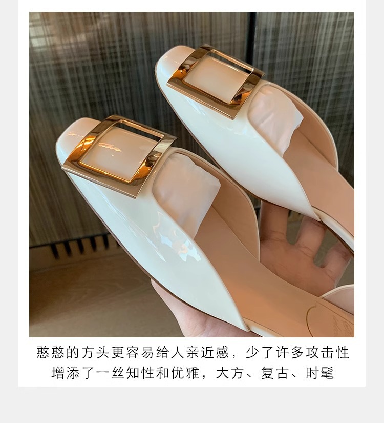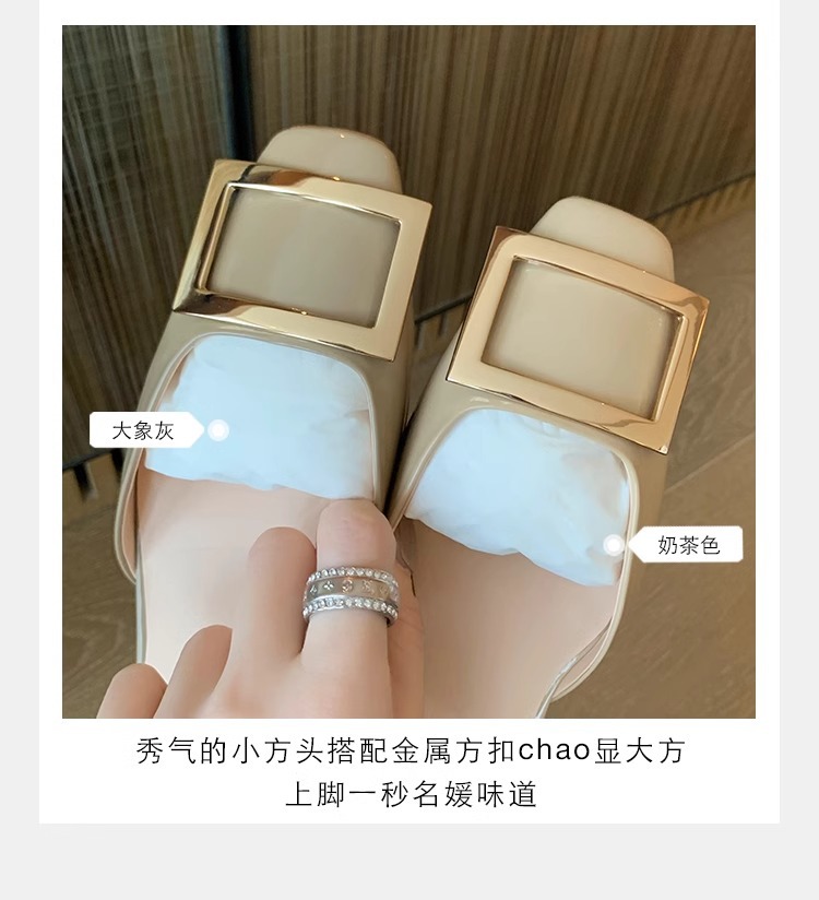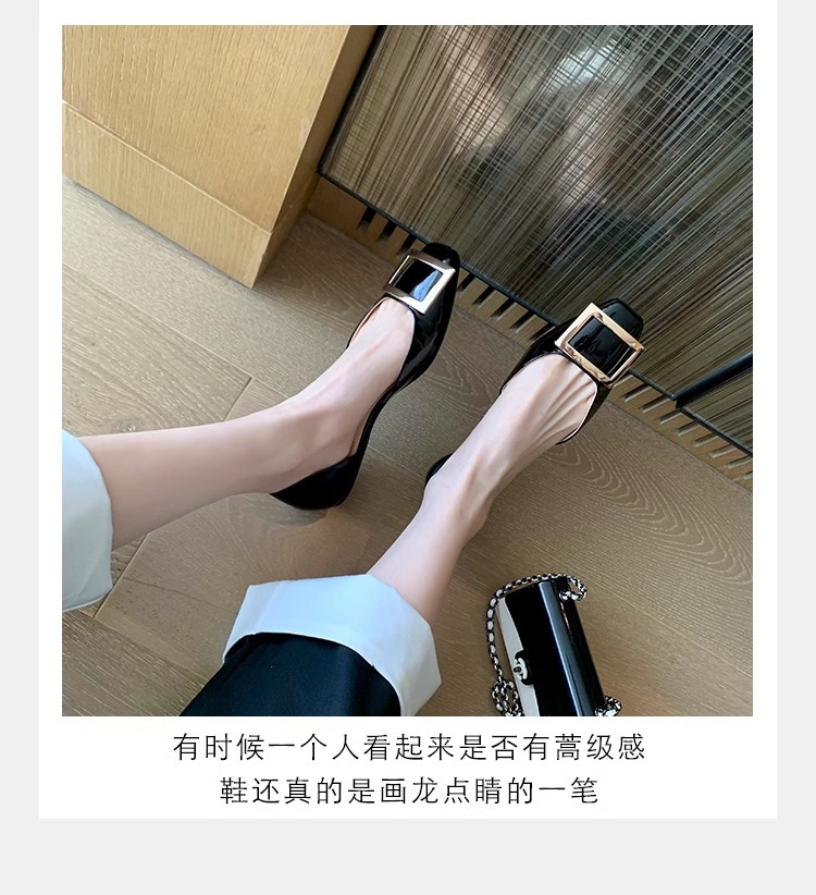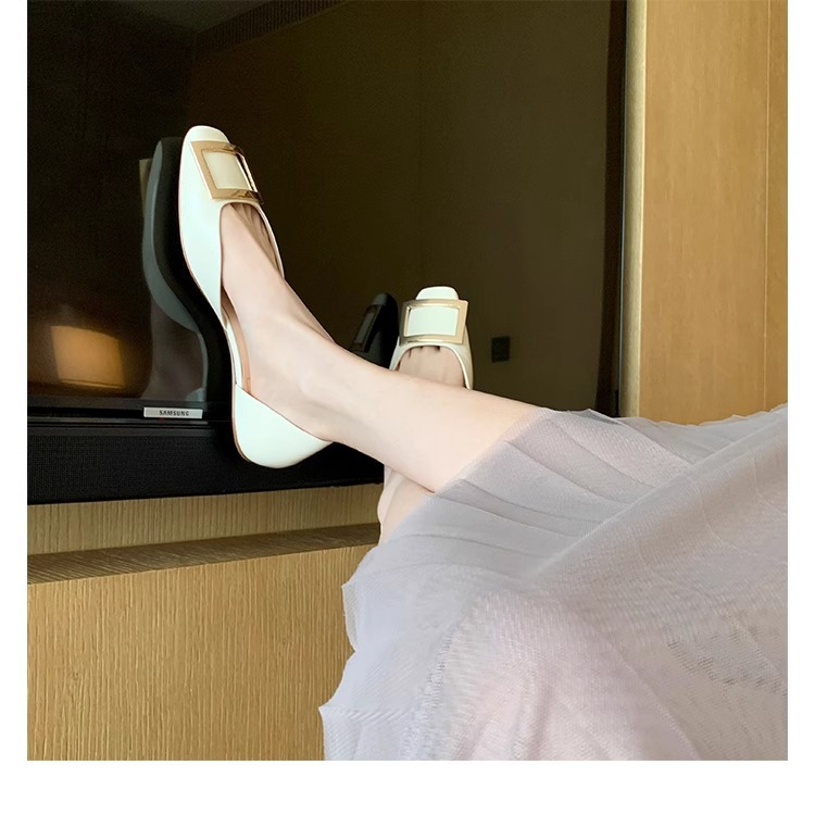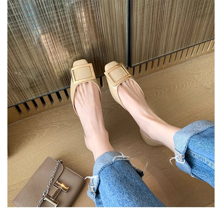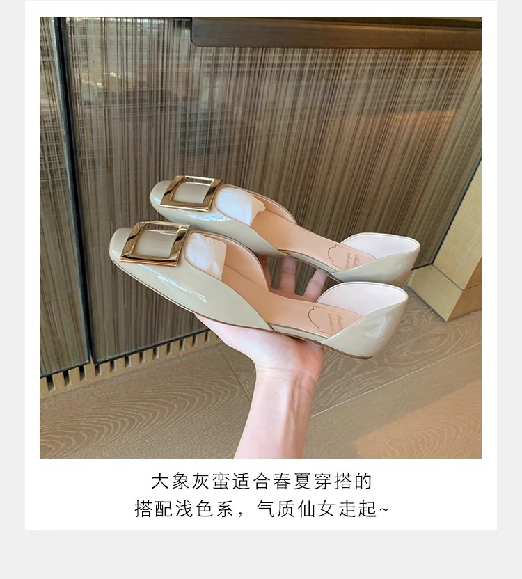 누드 컬러의 샤넬 스타일 슬립온, 우아한 사각 버클, 에나멜 가죽, 요정풍 사각 앞코, 얕은 입구, 속이 비치는 플랫 슈즈, 여성용 여름 신발스토어 가기