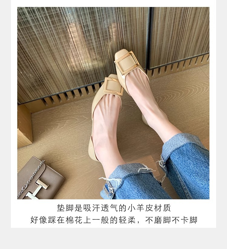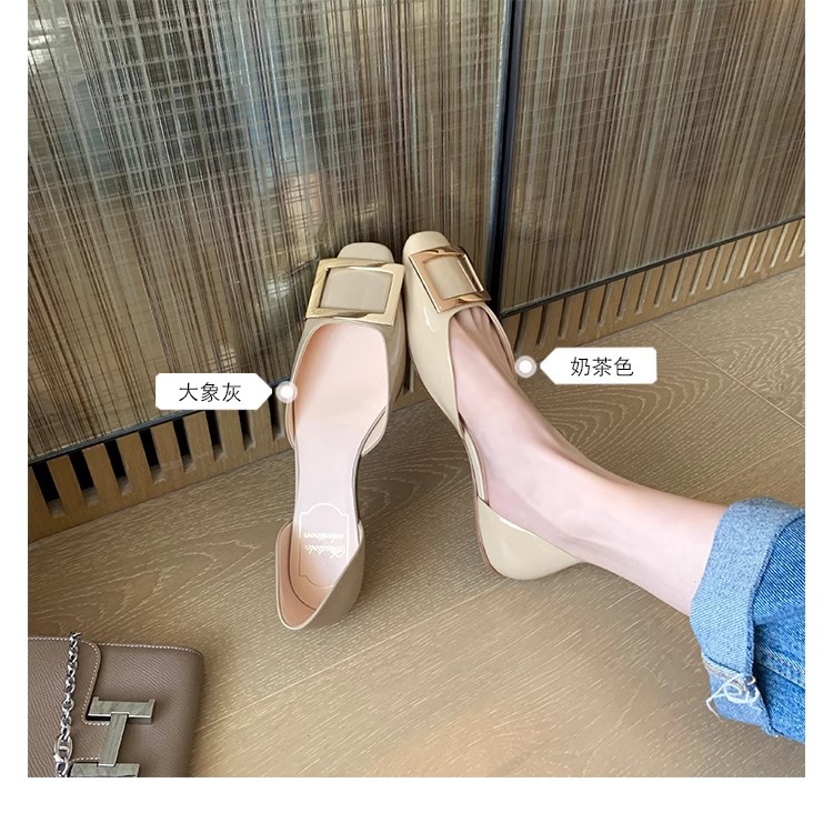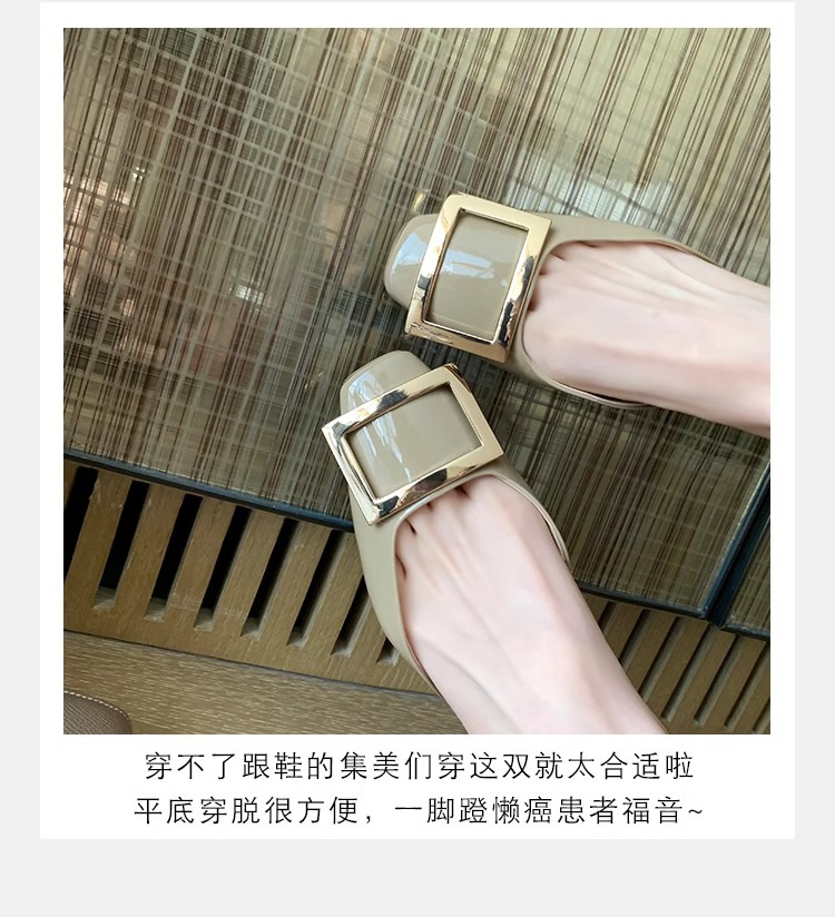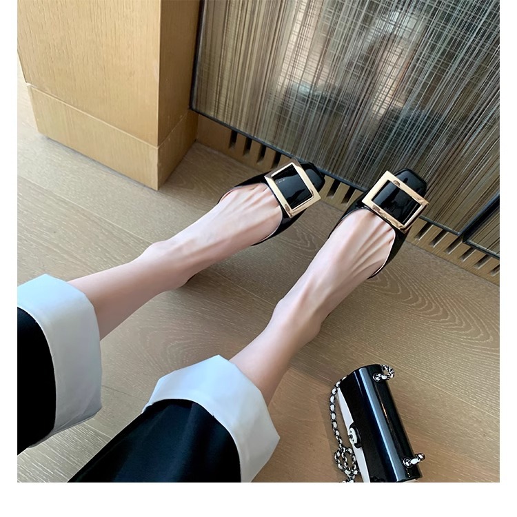 누드 컬러의 샤넬 스타일 슬립온, 우아한 사각 버클, 에나멜 가죽, 요정풍 사각 앞코, 얕은 입구, 속이 비치는 플랫 슈즈, 여성용 여름 신발