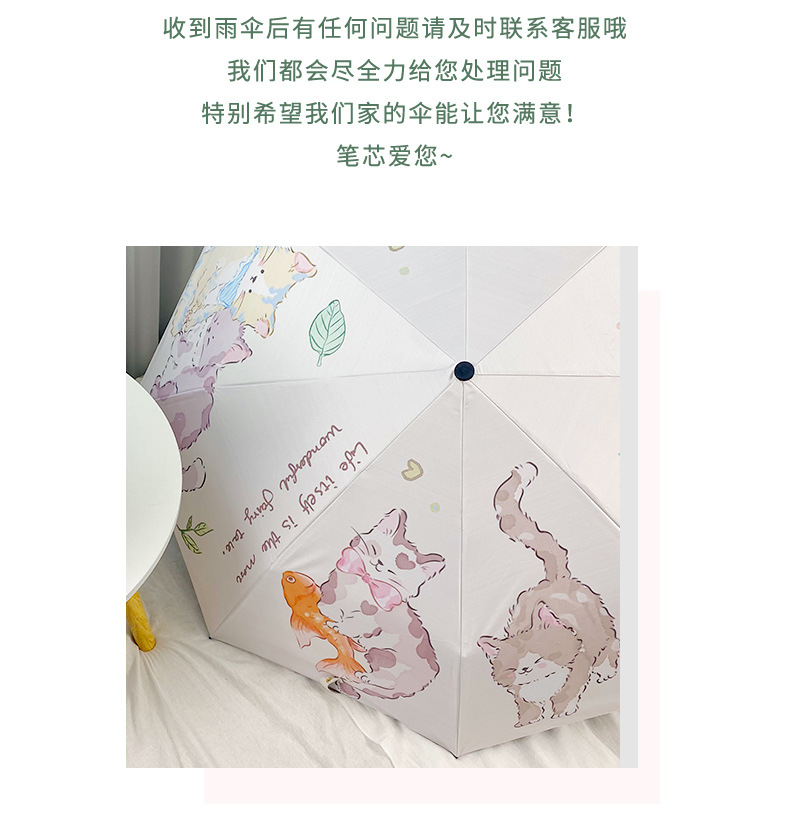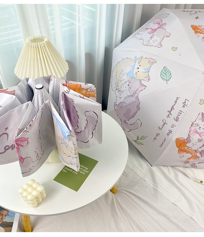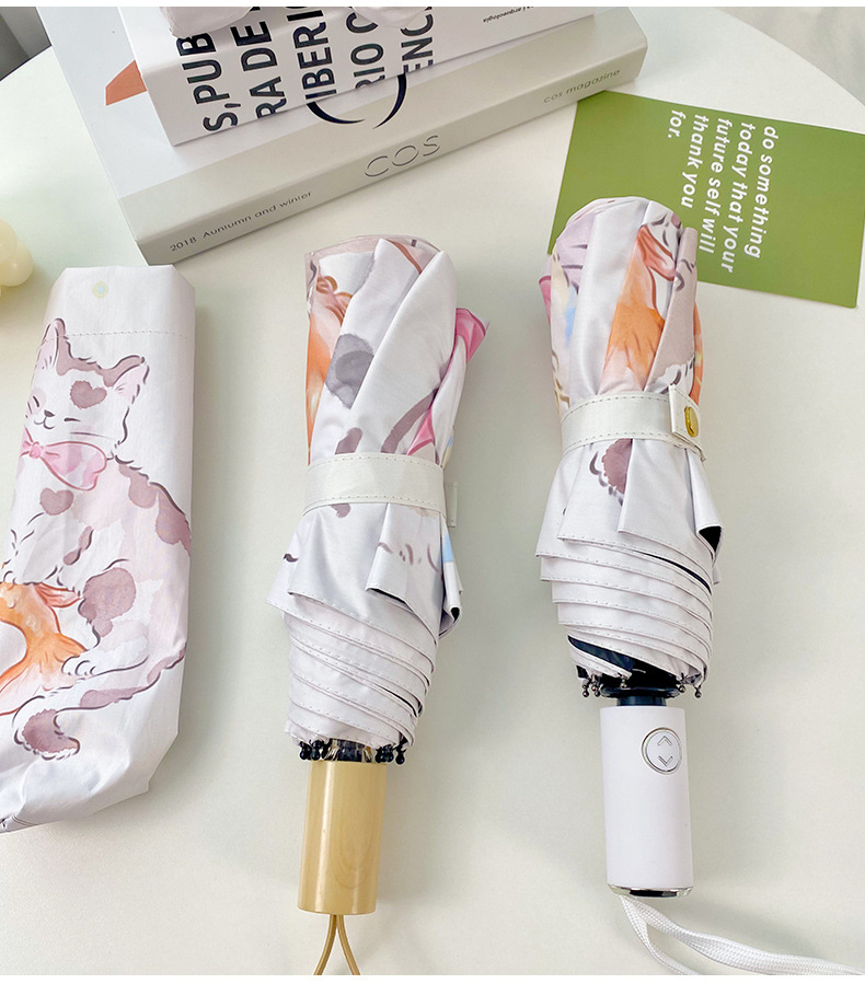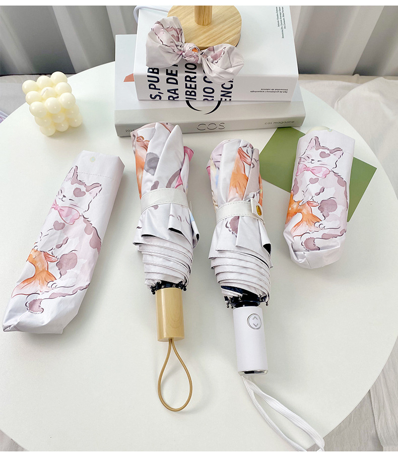 원래 디자인 귀여운 금붕어 고양이 자동 접이식 우산 여성 이중 사용 접이식 검은 접착제 태양 보호 우산스토어 가기