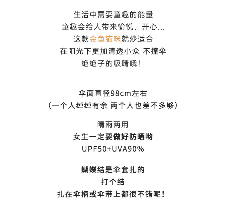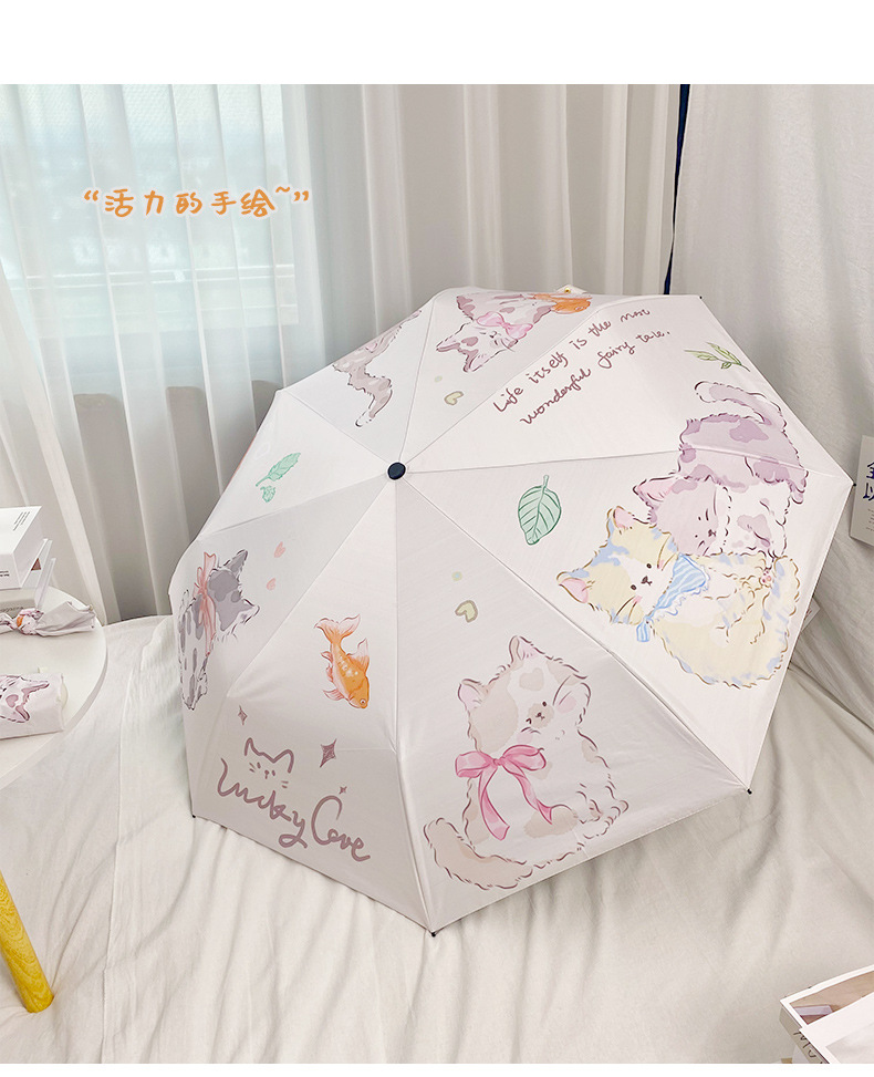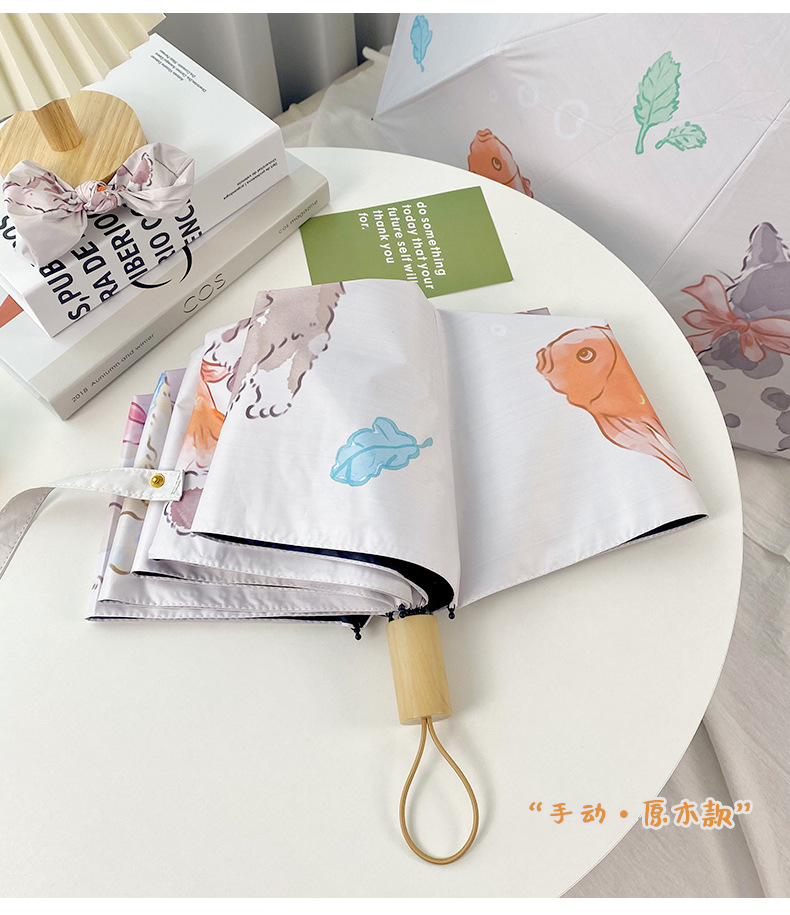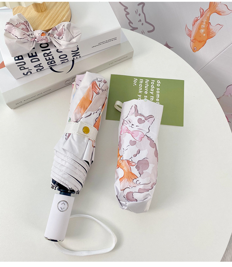 원래 디자인 귀여운 금붕어 고양이 자동 접이식 우산 여성 이중 사용 접이식 검은 접착제 태양 보호 우산