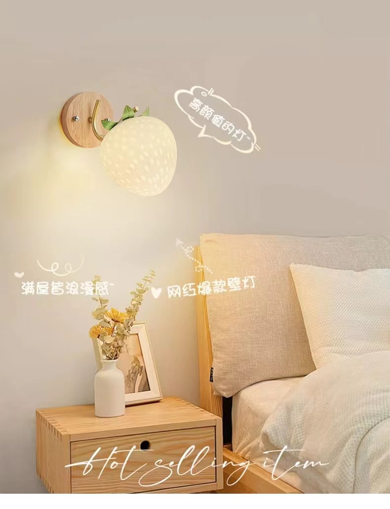 북유럽 복고풍 크림 스타일 복도 로그 귀여운 모양 벽 램프 침실 목가적 인 간단한 통로 침대 옆 벽 램프