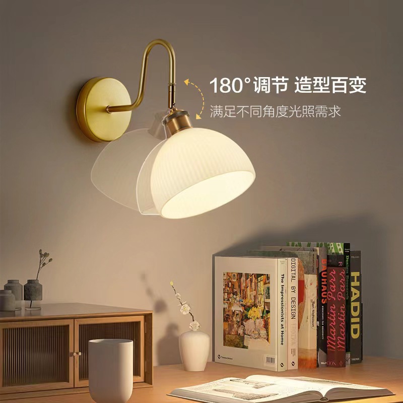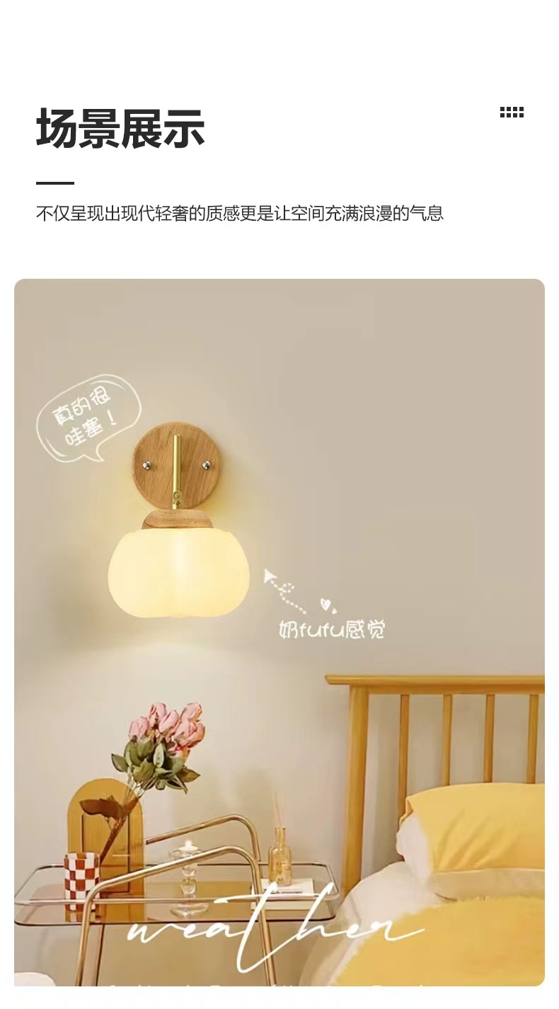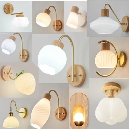 북유럽 복고풍 크림 스타일 복도 로그 귀여운 모양 벽 램프 침실 목가적 인 간단한 통로 침대 옆 벽 램프스토어 가기