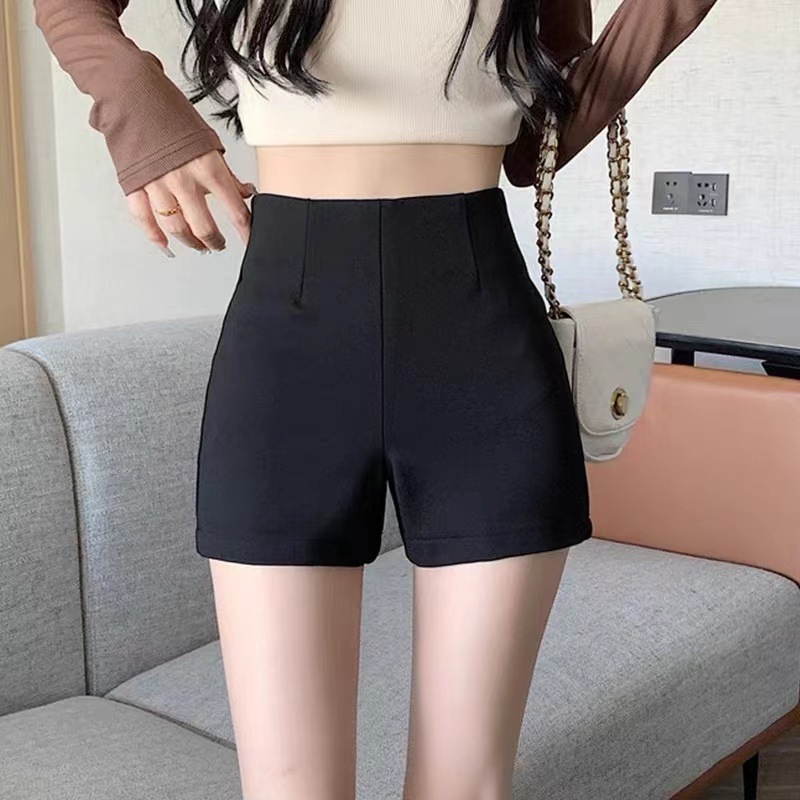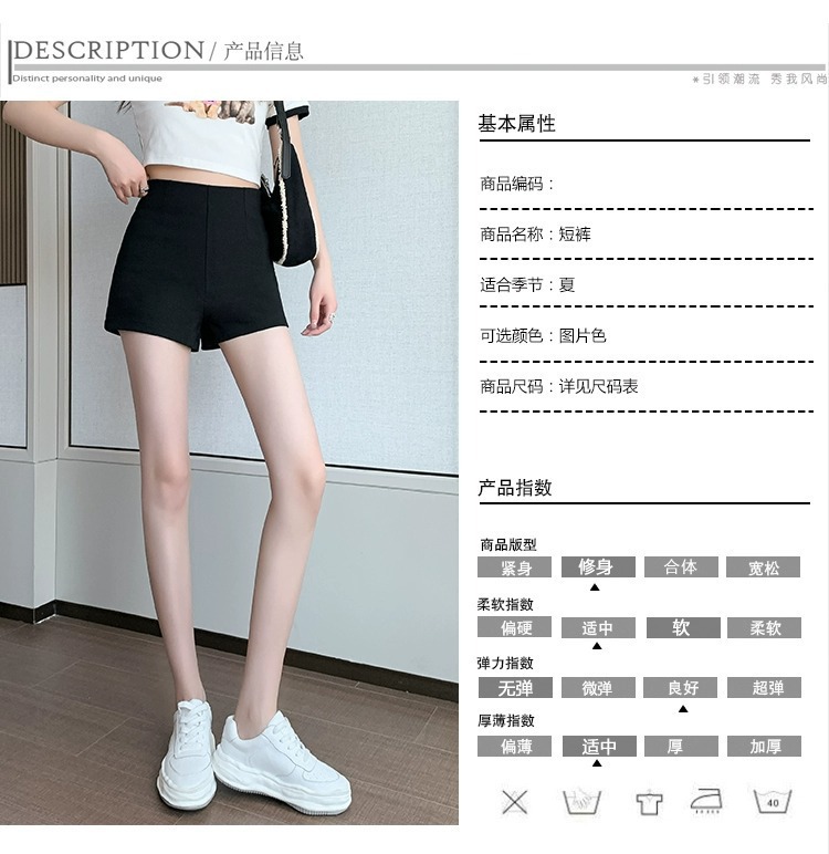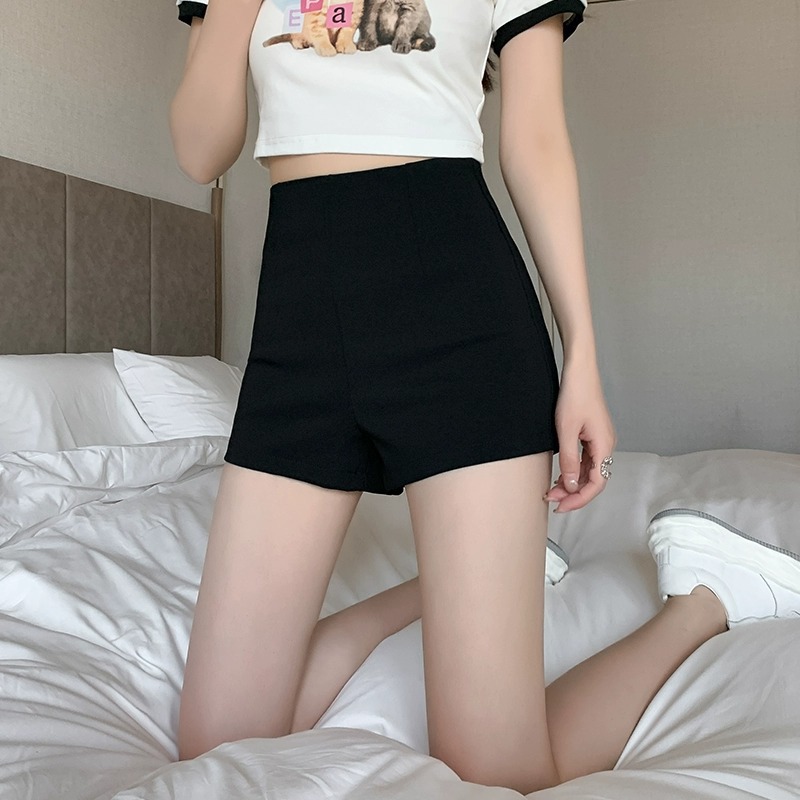 블랙 세트 반바지 여성 여름 높은 허리 A 라인 타이트 스트레칭 작은 노출 방지 안전 바닥 핫팬츠 착용스토어 가기
