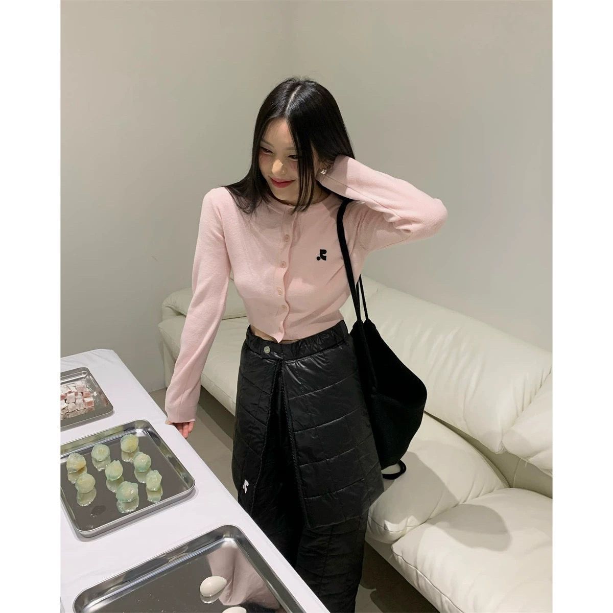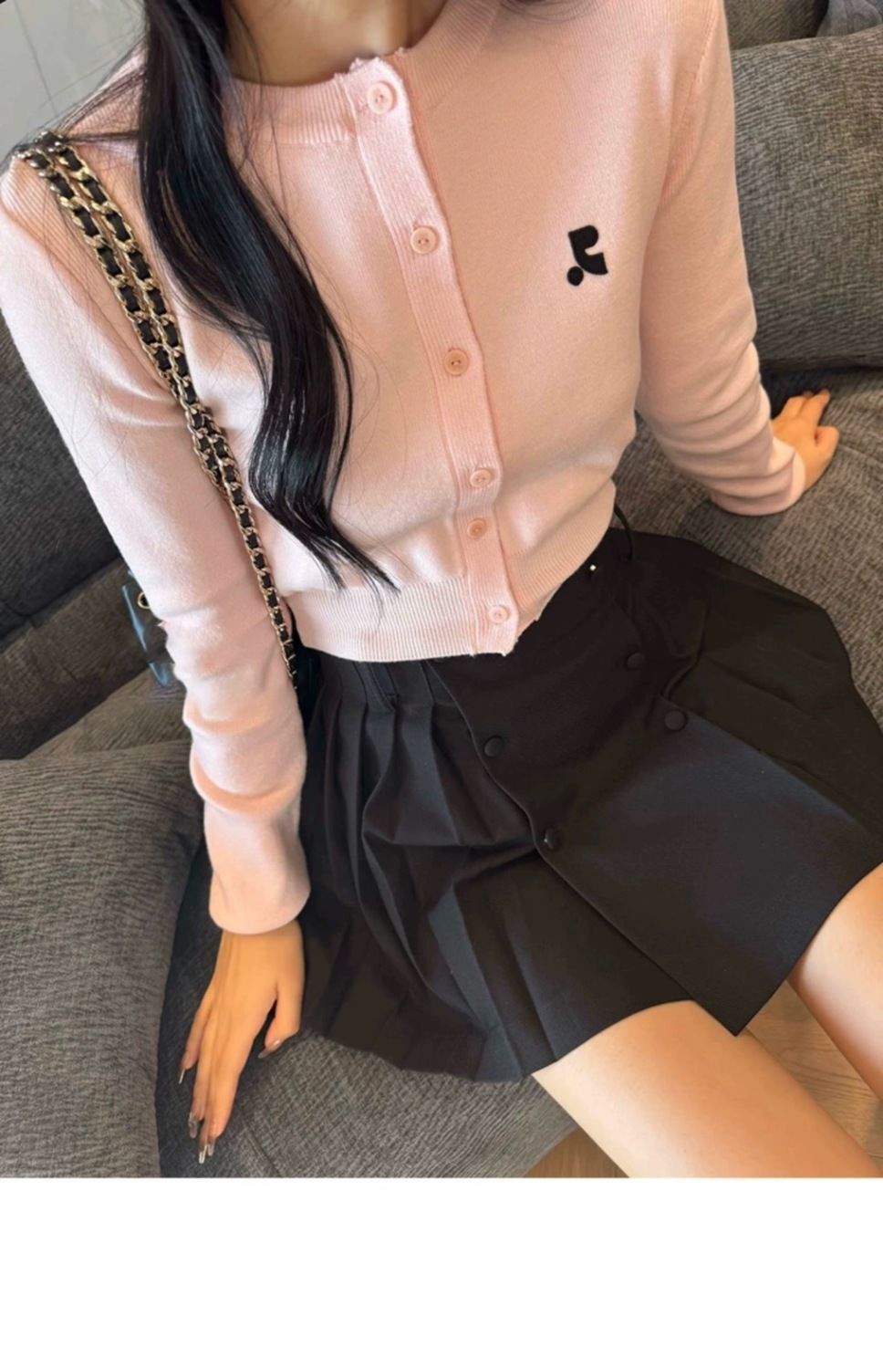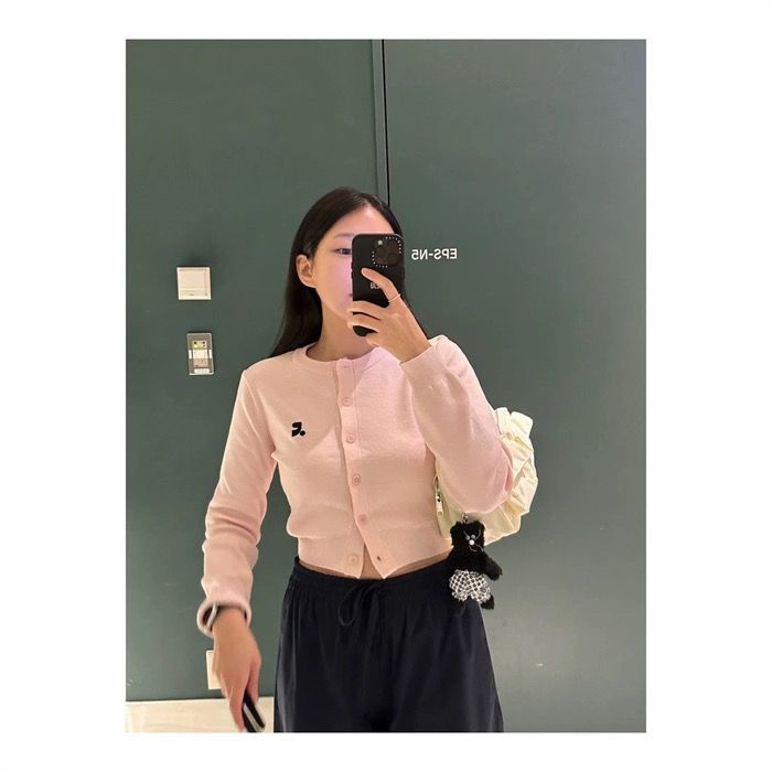 루스 코리안 크루 넥 카디건 여자 봄과 가을 편안한 단색 니트 카디건 슬림 핏 올 매치 스웨터 코트 여자스토어 가기