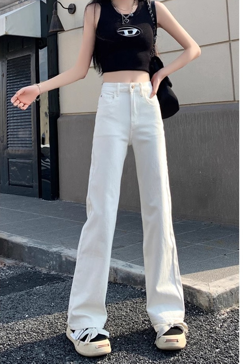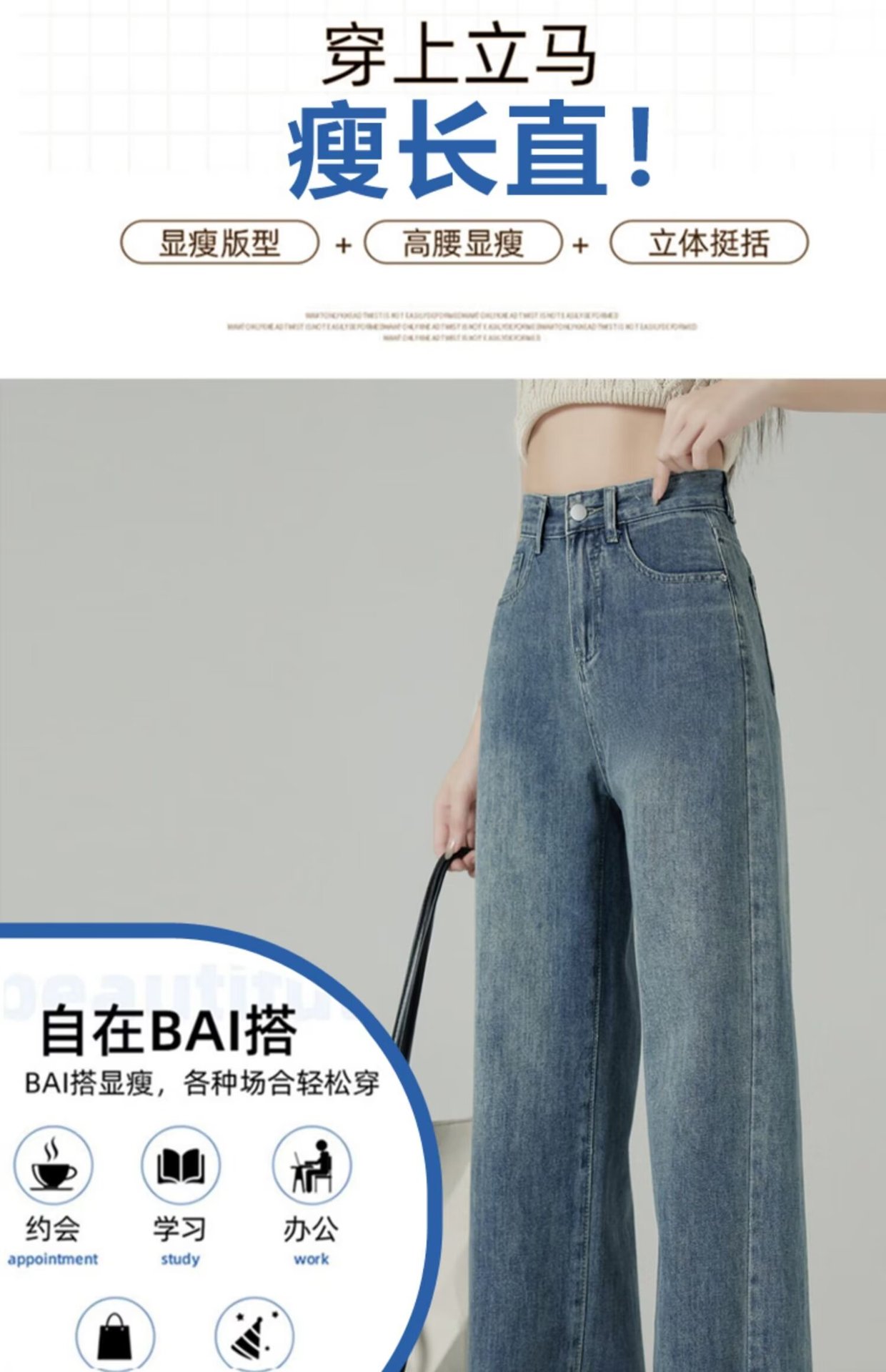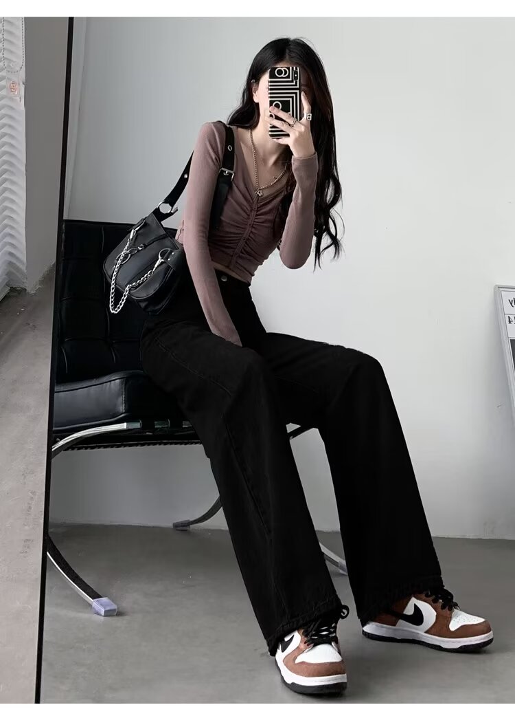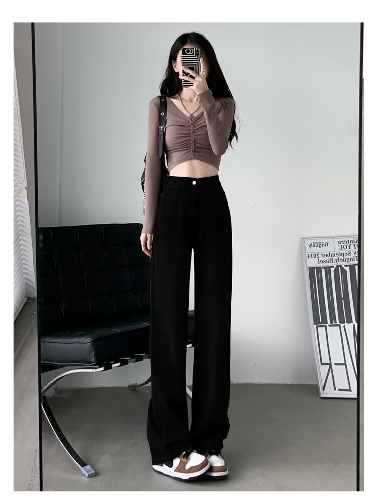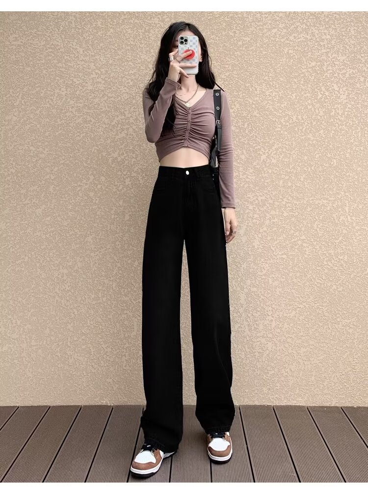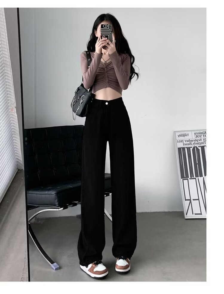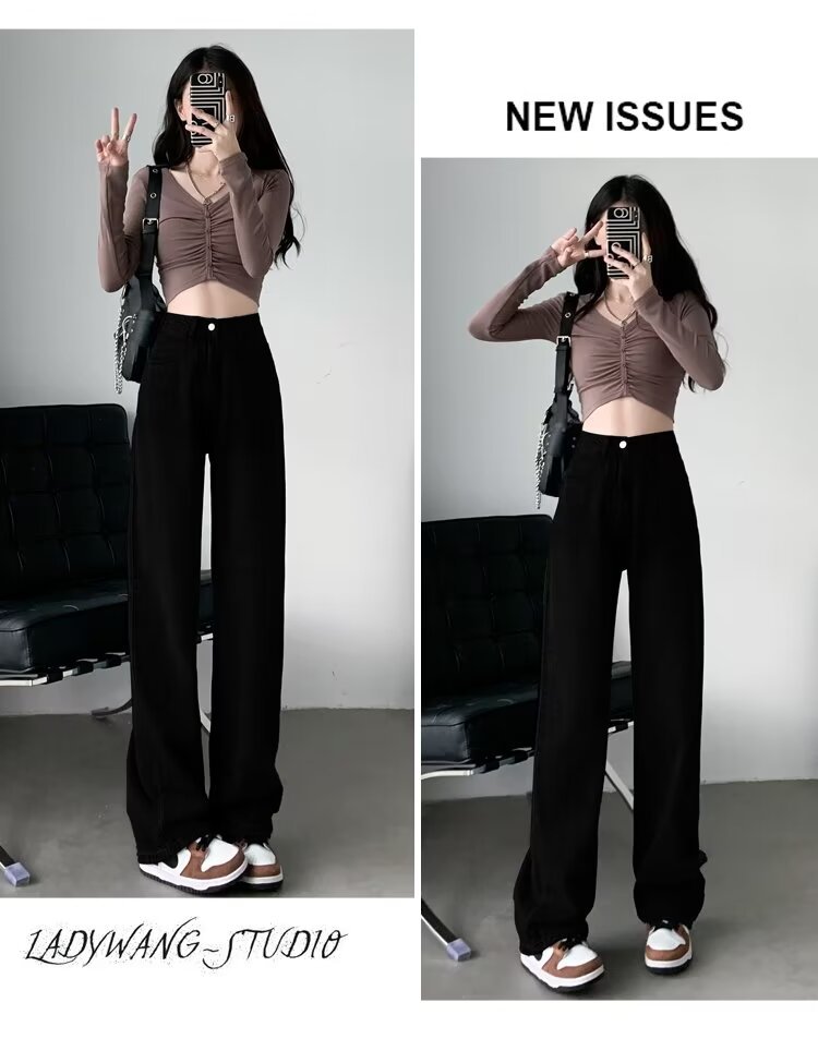 레트로 블루 와이드 레그 청바지 여성의 봄과 가을 얇은 2024 새로운 느슨한 슬리밍 작은 스트레이트 걸레 바지스토어 가기