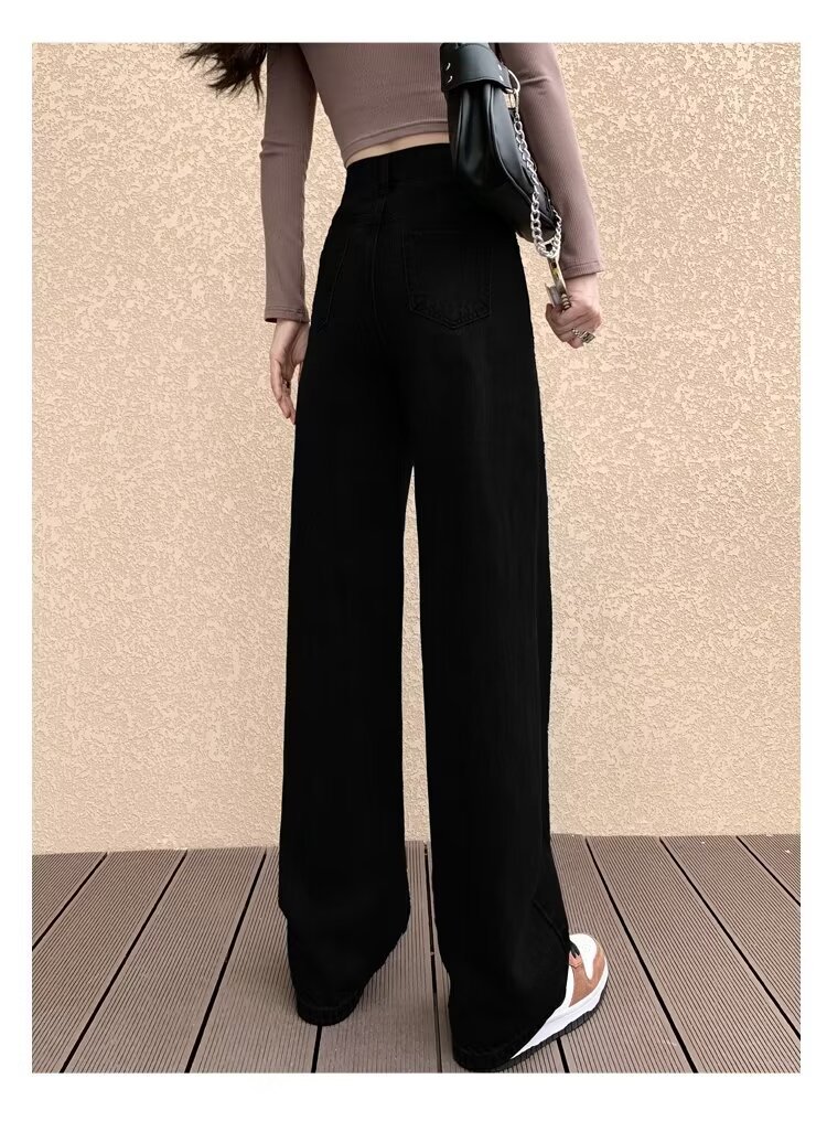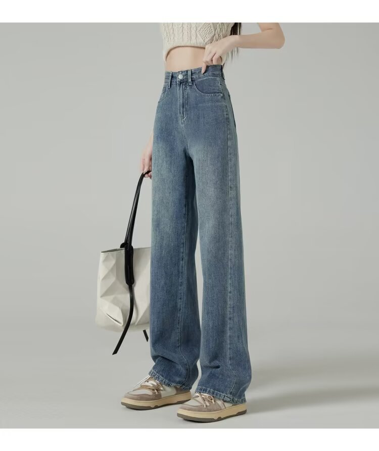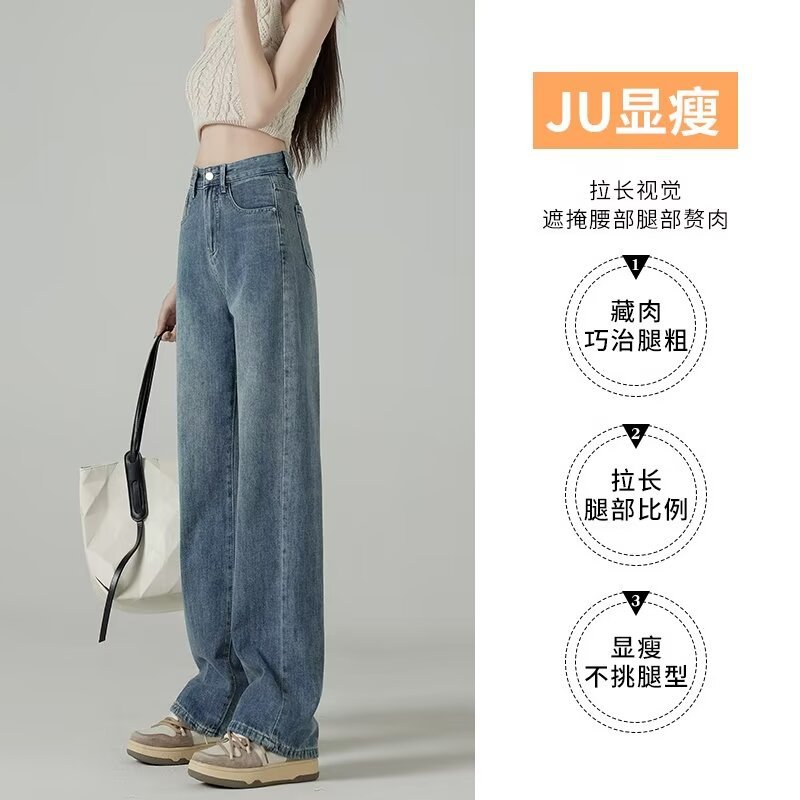 레트로 블루 와이드 레그 청바지 여성의 봄과 가을 얇은 2024 새로운 느슨한 슬리밍 작은 스트레이트 걸레 바지