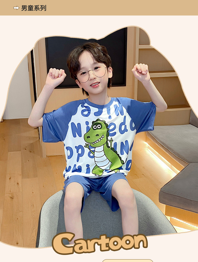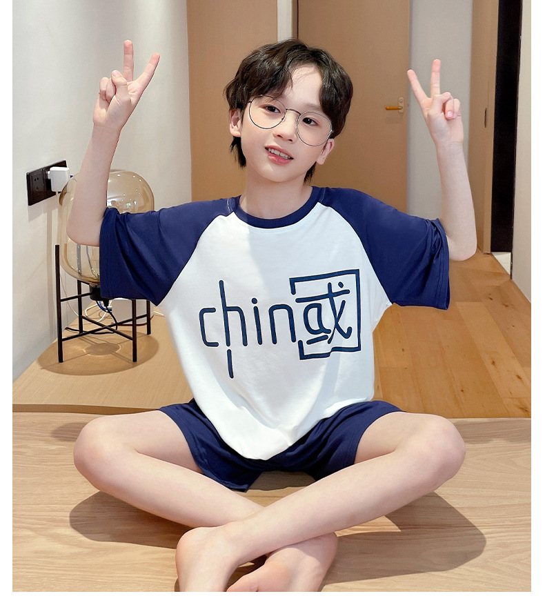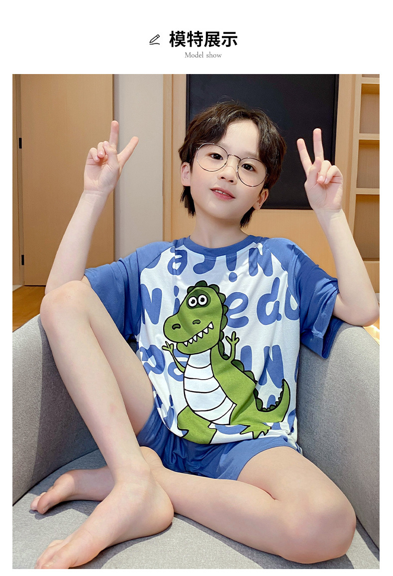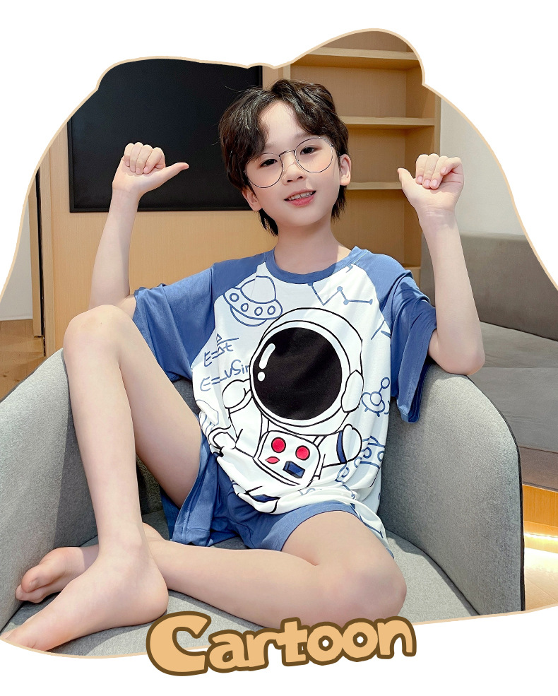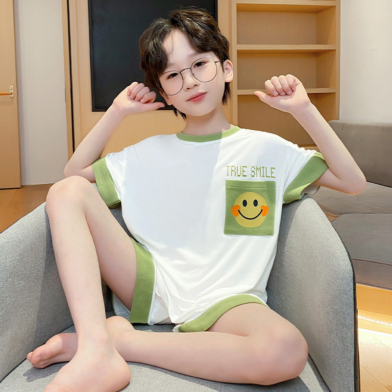 남학생 잠옷 어린이 반팔 모달 반팔 얇은 여름 나이 많은 아이들 13 세 중학생 홈웨어스토어 가기