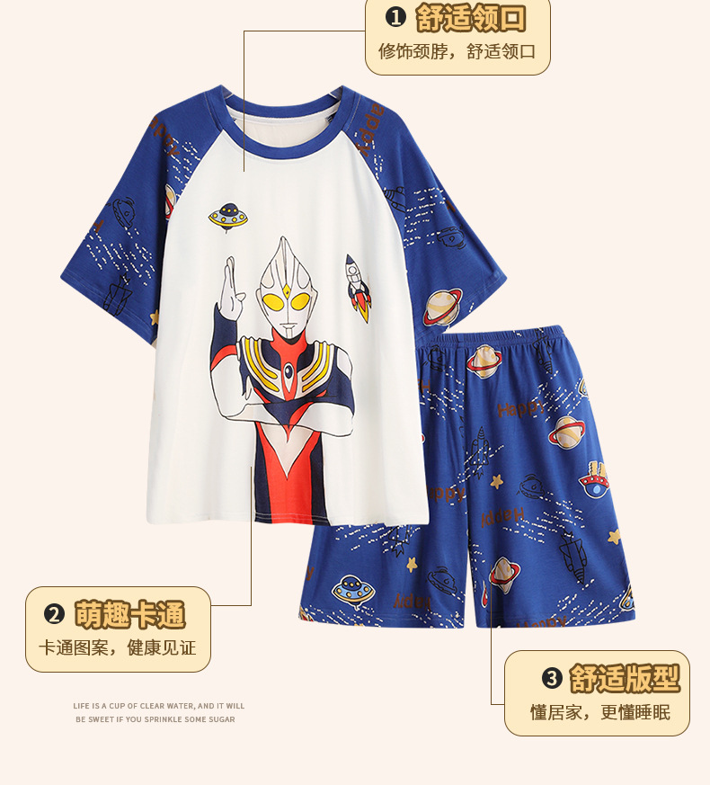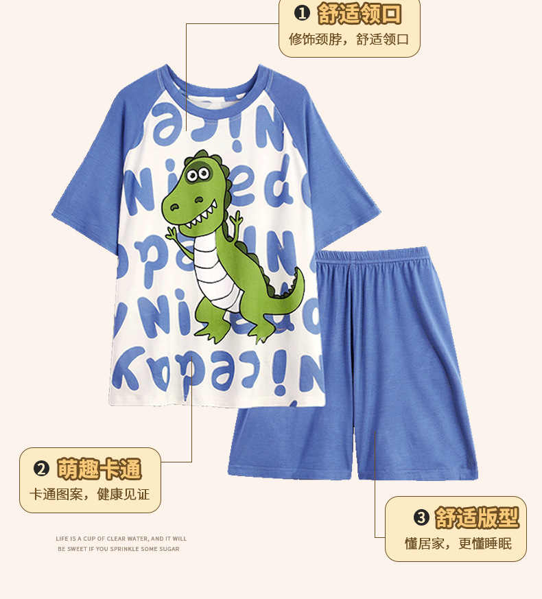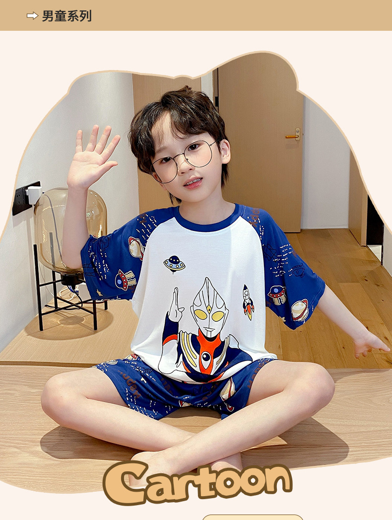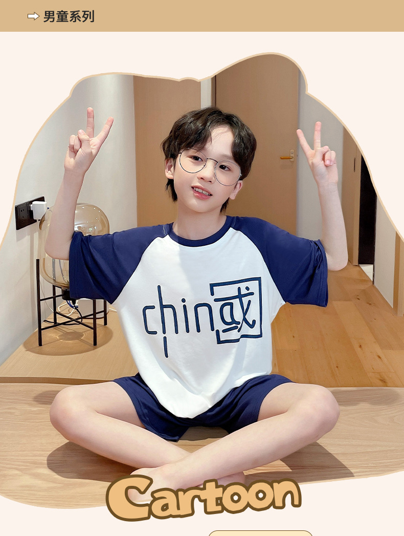 남학생 잠옷 어린이 반팔 모달 반팔 얇은 여름 나이 많은 아이들 13 세 중학생 홈웨어스토어 가기