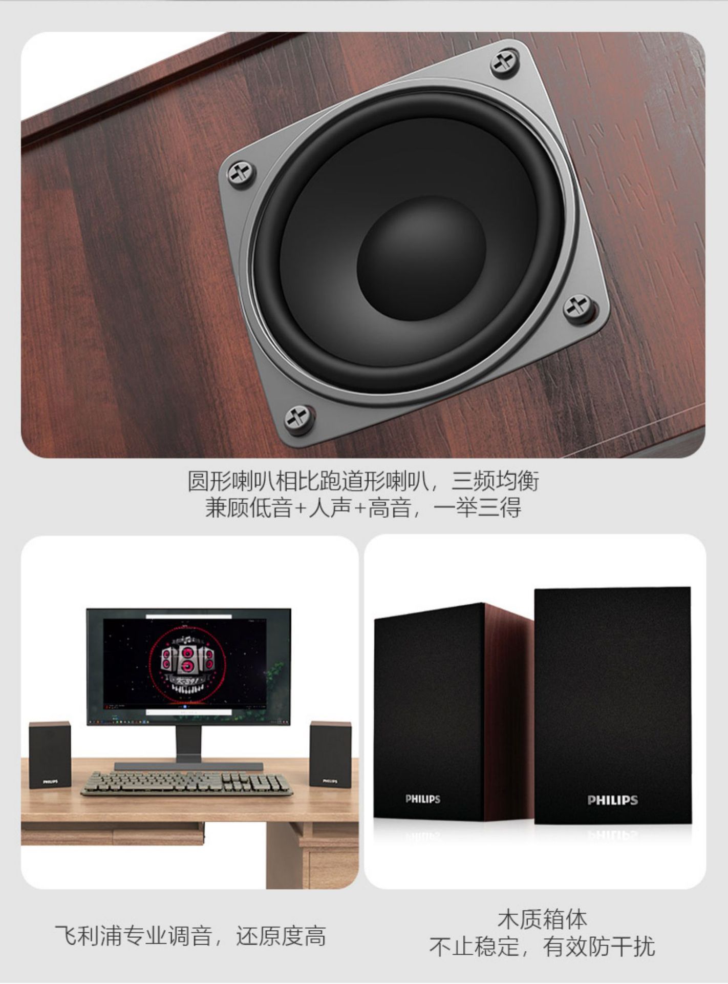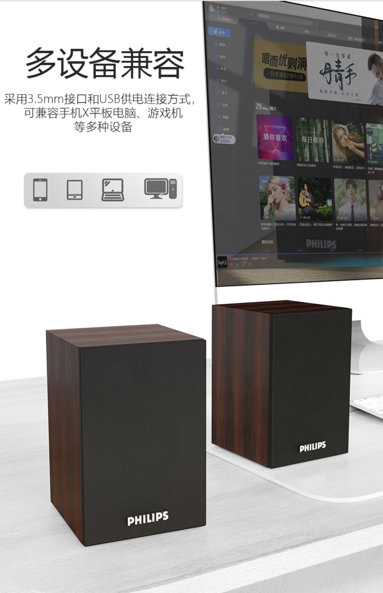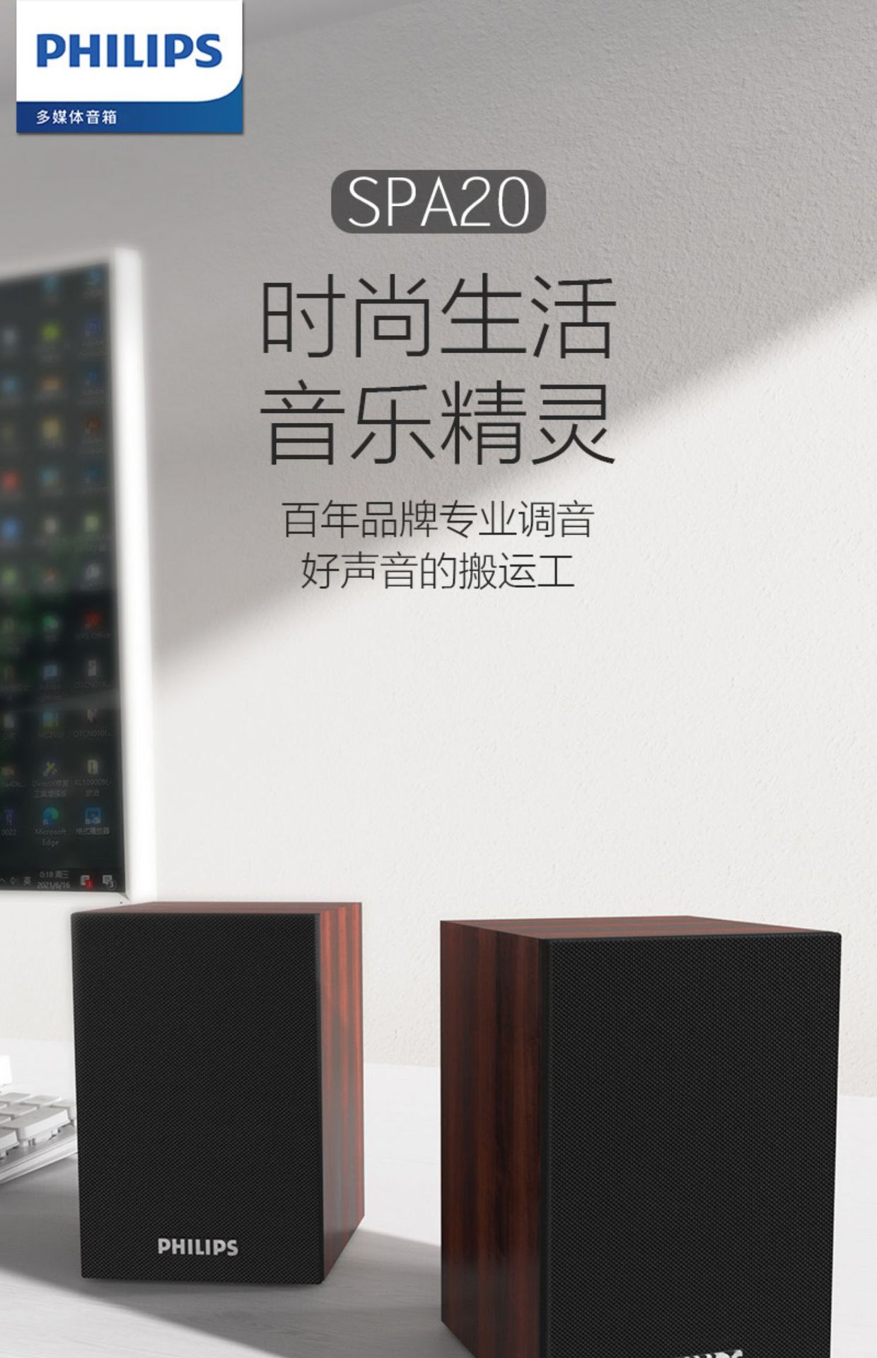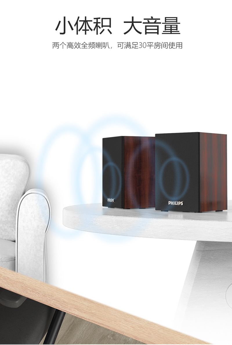필립스 SPA20 컴퓨터 오디오 데스크톱 홈 나무 미니 스피커 USB 노트북 블루투스 게임스토어 가기