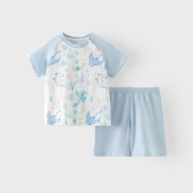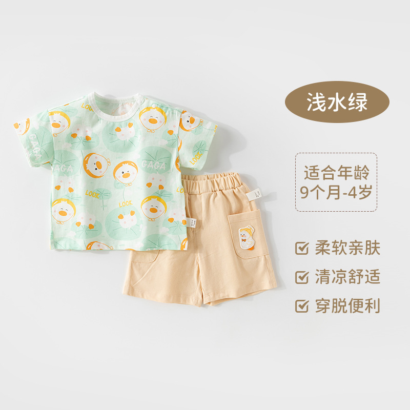 중소형 아동 여름옷, 남녀공용 티셔츠 세트, 아동 티셔츠 반바지, 아동 캐주얼 세트스토어 가기