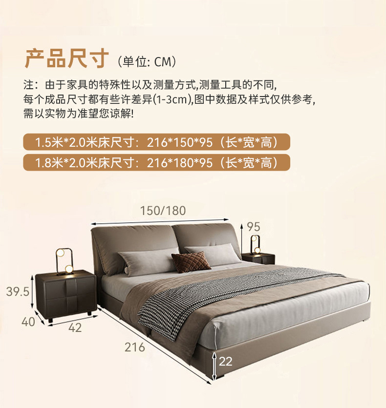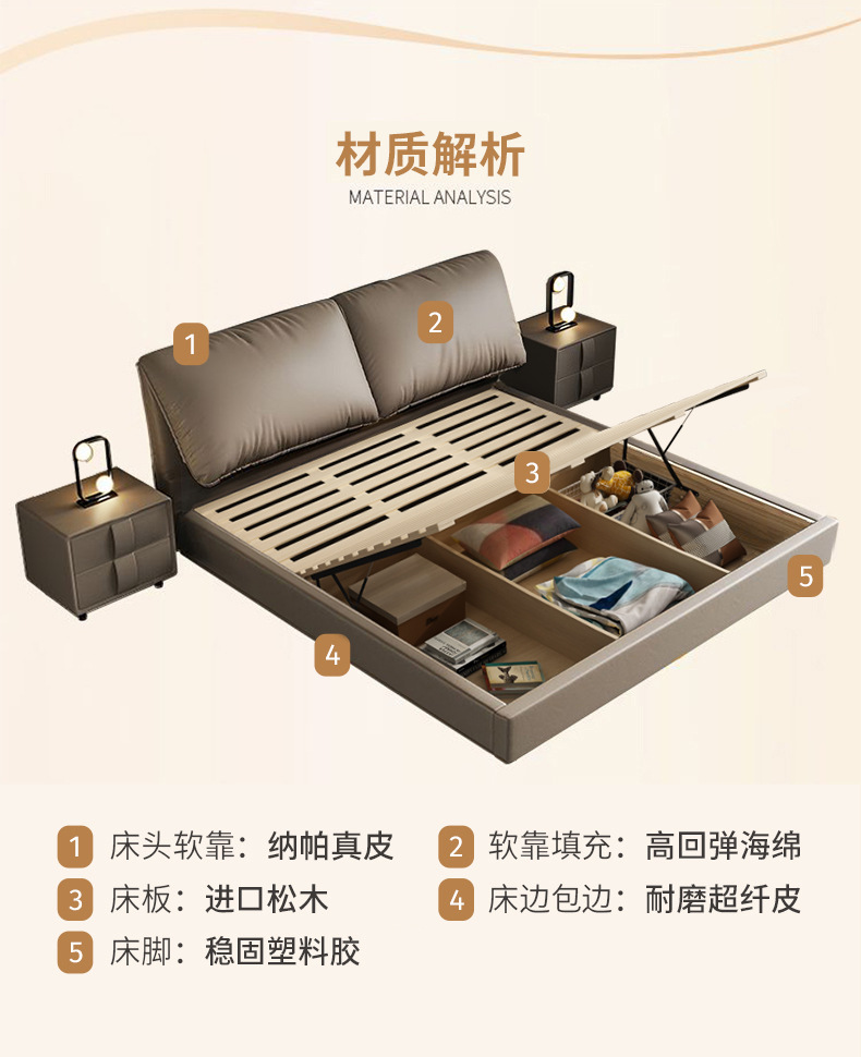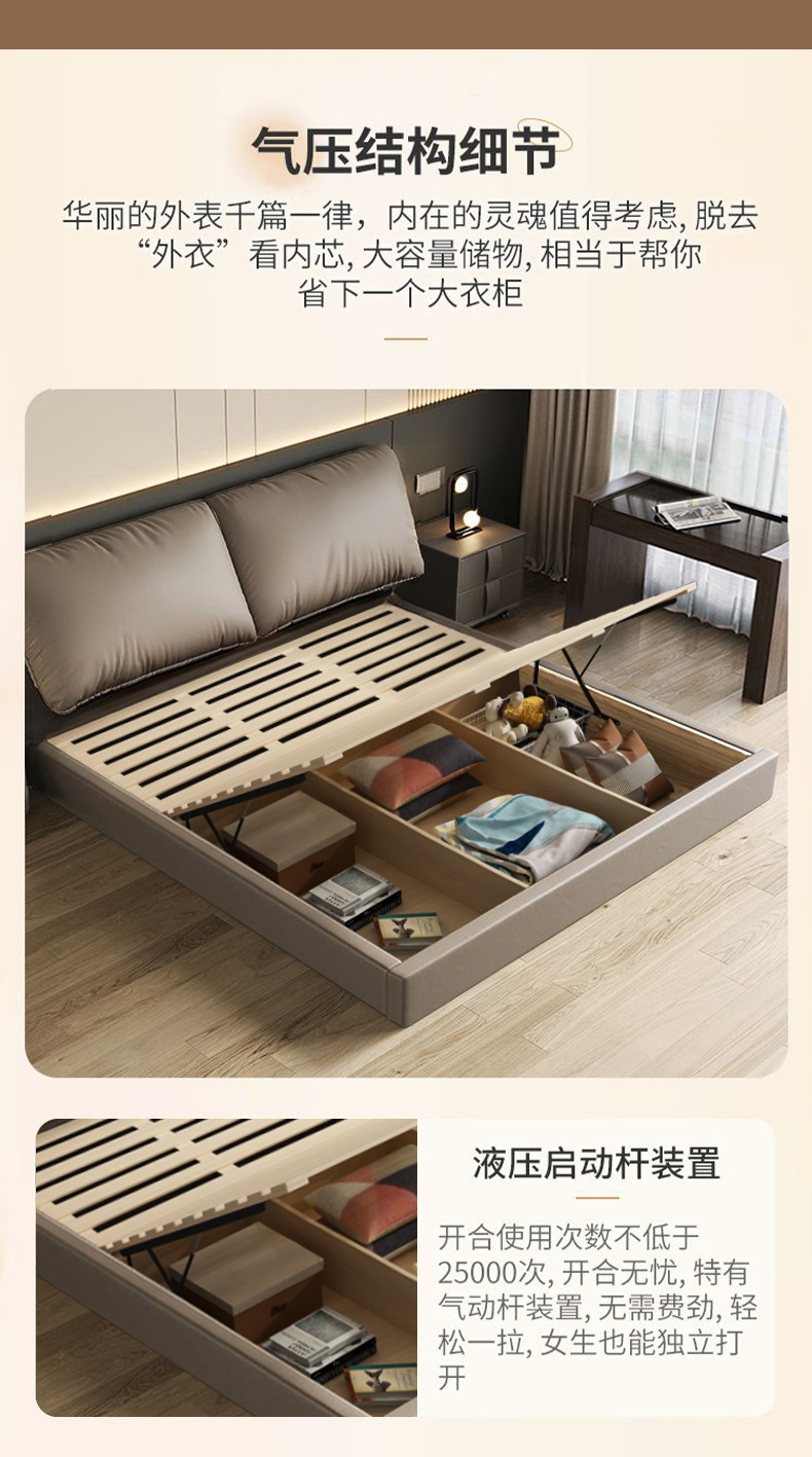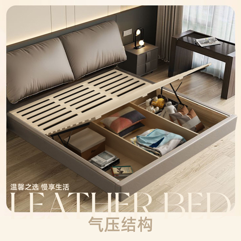 나파 가죽 침대 수납형 더블 침대 1.8m 가죽 아트 웨딩 침대 부드러운 등받이 침실 새로운 심플 다기능 침대