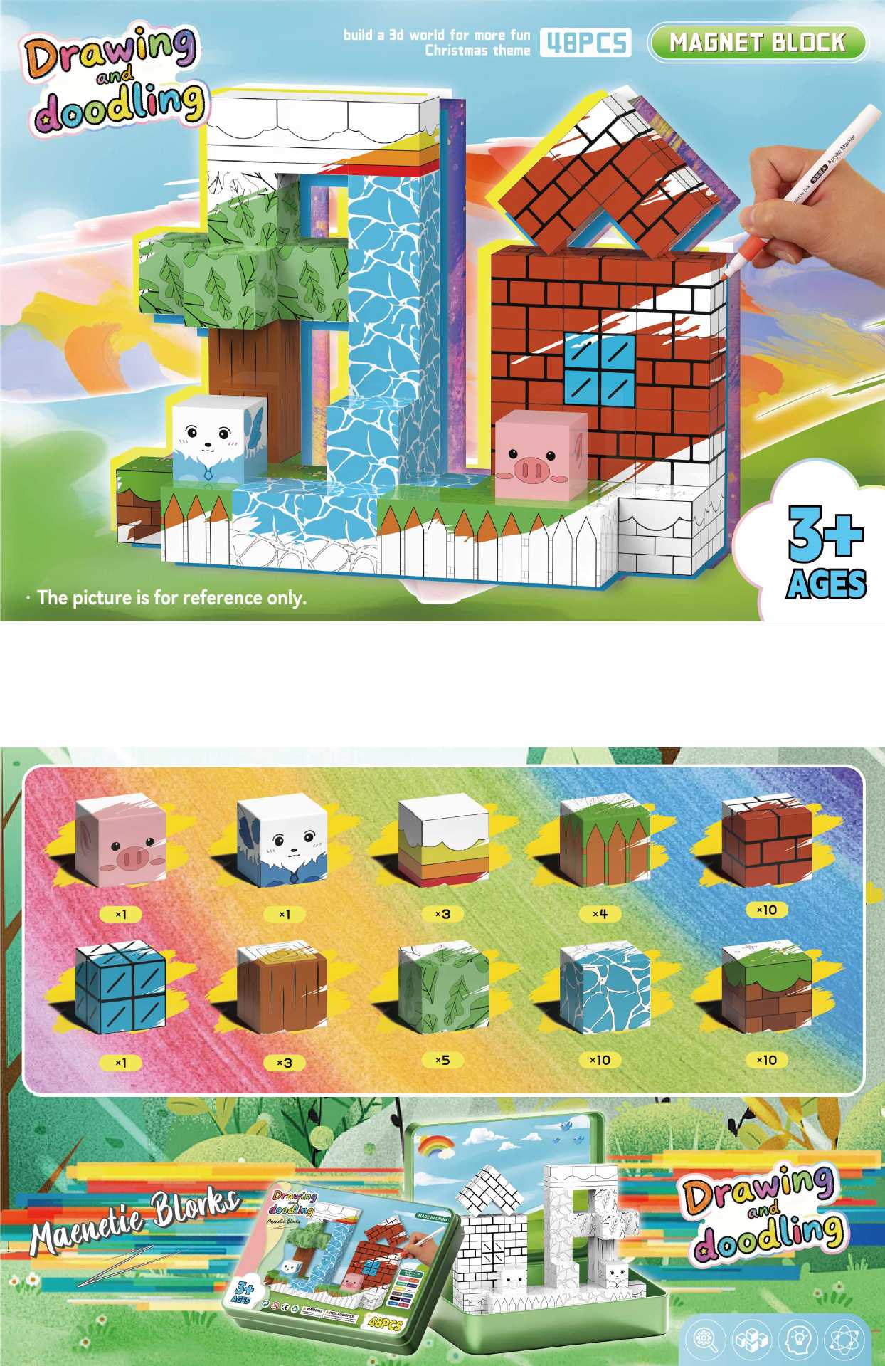국경 간 자기 상자 강한 자기 기하학적 빌딩 블록 세계 게임 주변 어린이 퍼즐 미니 모델 장난감 만들기스토어 가기