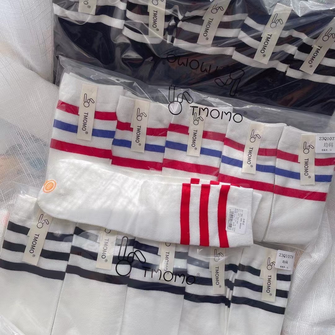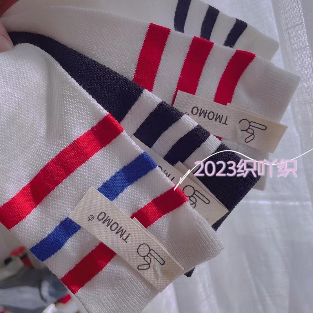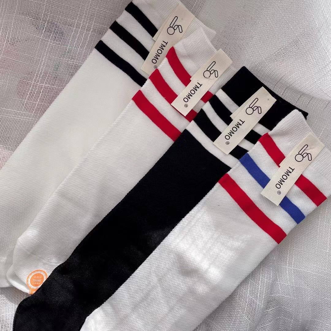 학생 양말 봄과 여름 메쉬 높은 스타킹 코튼 비 힐 블랙 및 화이트 3 바 축구 양말 소년과 소녀 빨간색과 파란색 스트립 학교 유니폼 양말