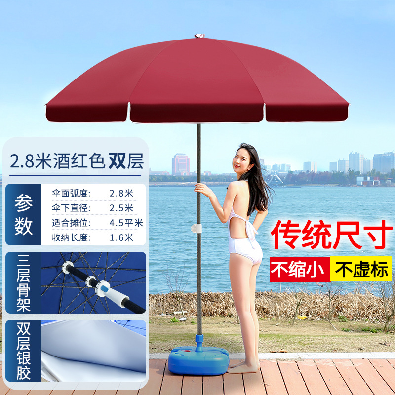 • 버건디 2.8 미터 더블 실버 접착제 두꺼운 우산 기둥