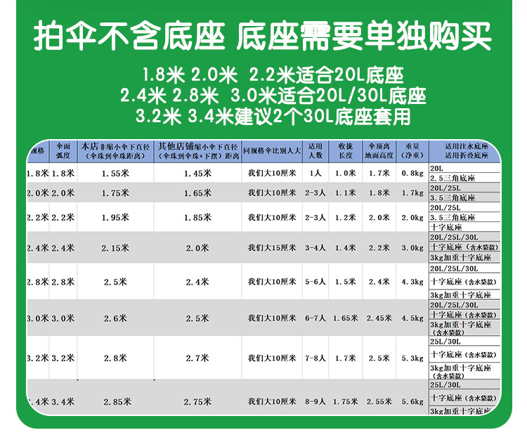 • 다크 그린 3.0 미터 실버 접착제 두꺼운 우산 기둥