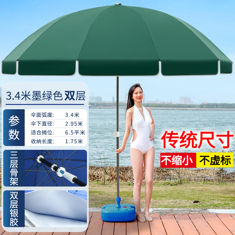 • 다크 그린 3.4 미터 이중 실버 접착제 두꺼운 우산 막대 10 뼈 강화