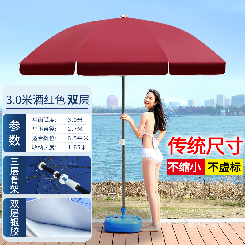 • 버건디 3.0 미터 이중 실버 접착제 두꺼운 우산 기둥