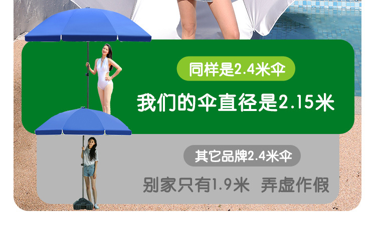 • 사파이어 블루 2.4 m 더블 실버 접착제 두꺼운 우산 막대 더블 뼈