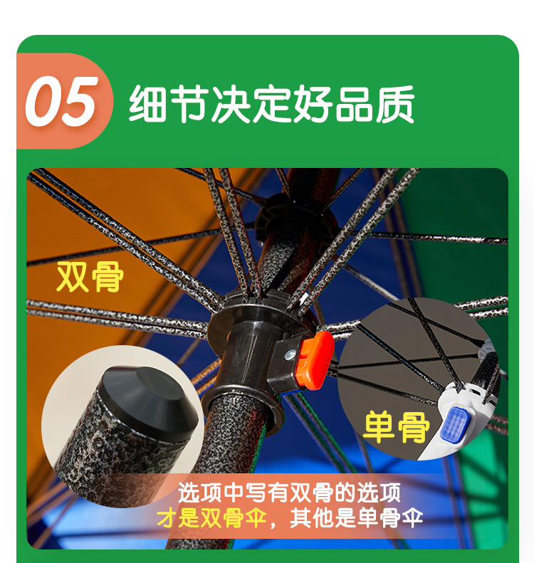 • 무지개 3.0 m 더블 레이어 실버 접착제 두꺼운 우산 막대 뼈