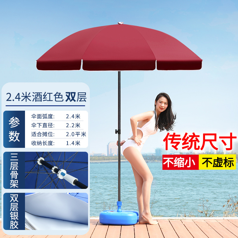 • 버건디 2.4 미터 더블 실버 접착제 두꺼운 우산 기둥