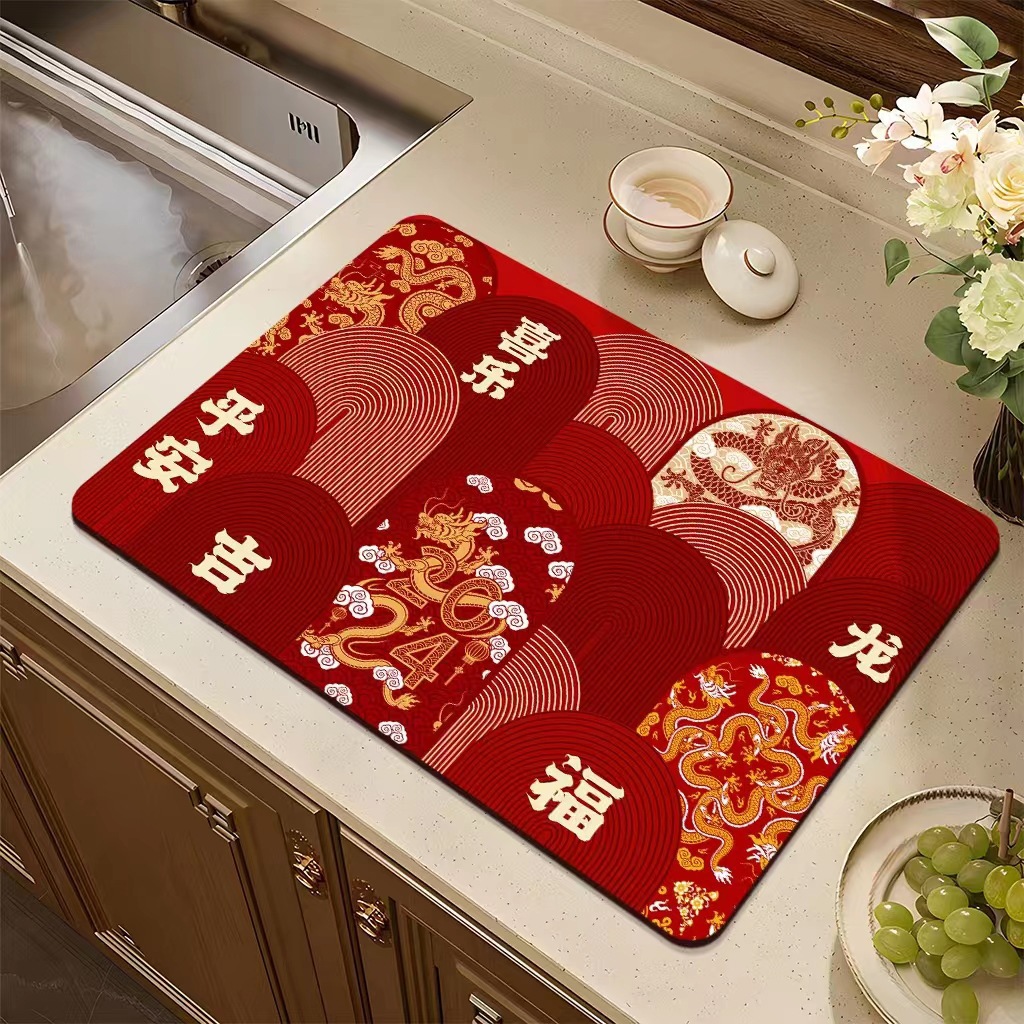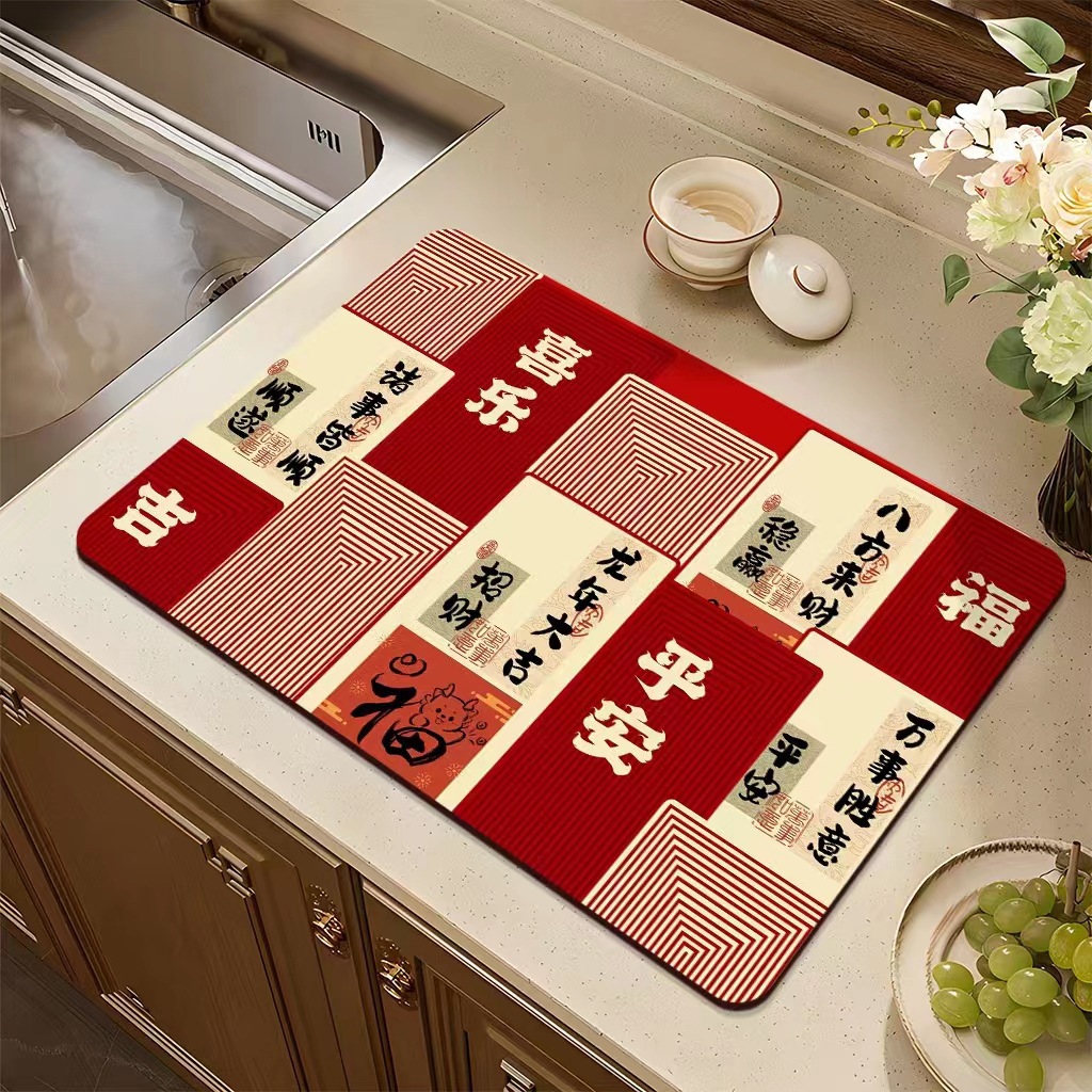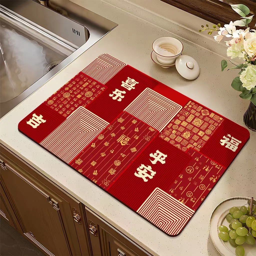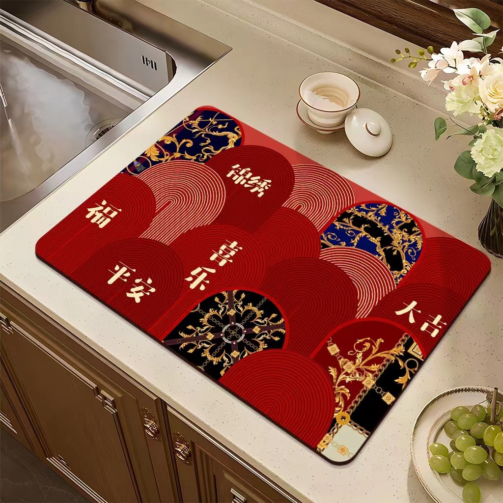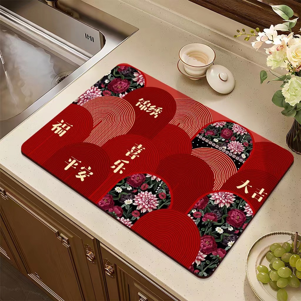 집들이 축제 과일 플레이트 diatom 진흙 매트 재떨이 매트 주방 배수 매트 식탁을 움직이는 붉은 장식 매트