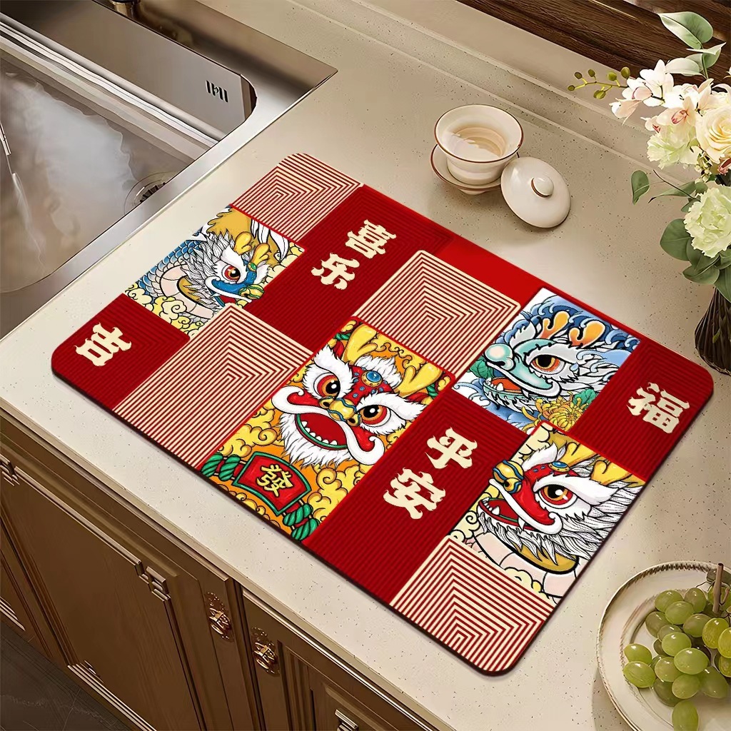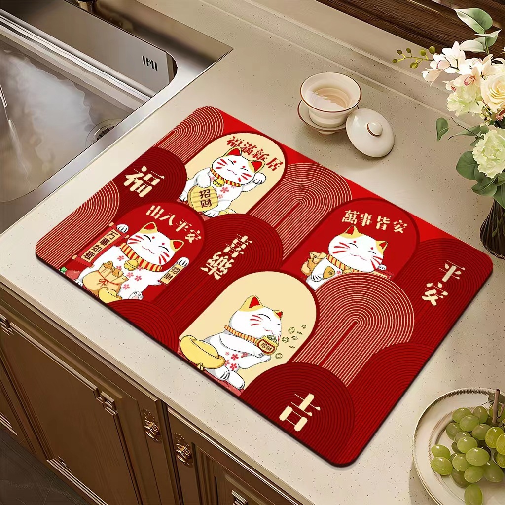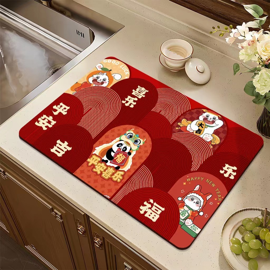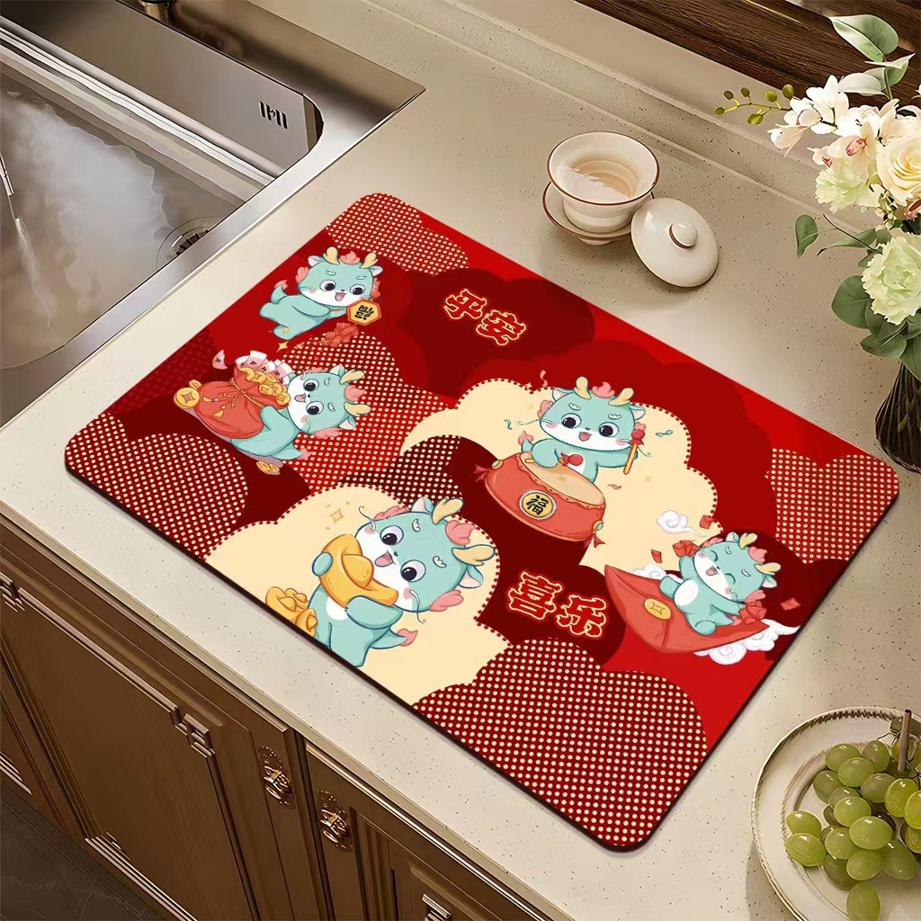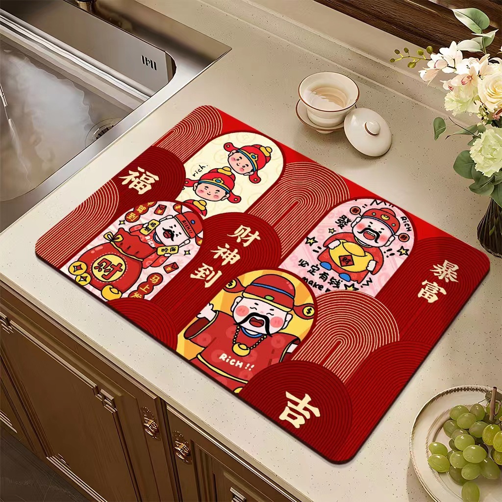 집들이 축제 과일 플레이트 diatom 진흙 매트 재떨이 매트 주방 배수 매트 식탁을 움직이는 붉은 장식 매트