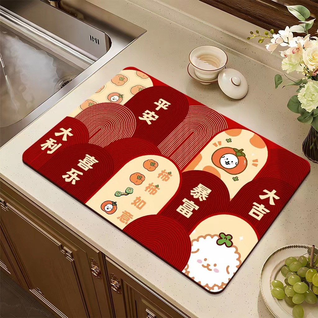 집들이 축제 과일 플레이트 diatom 진흙 매트 재떨이 매트 주방 배수 매트 식탁을 움직이는 붉은 장식 매트스토어 가기