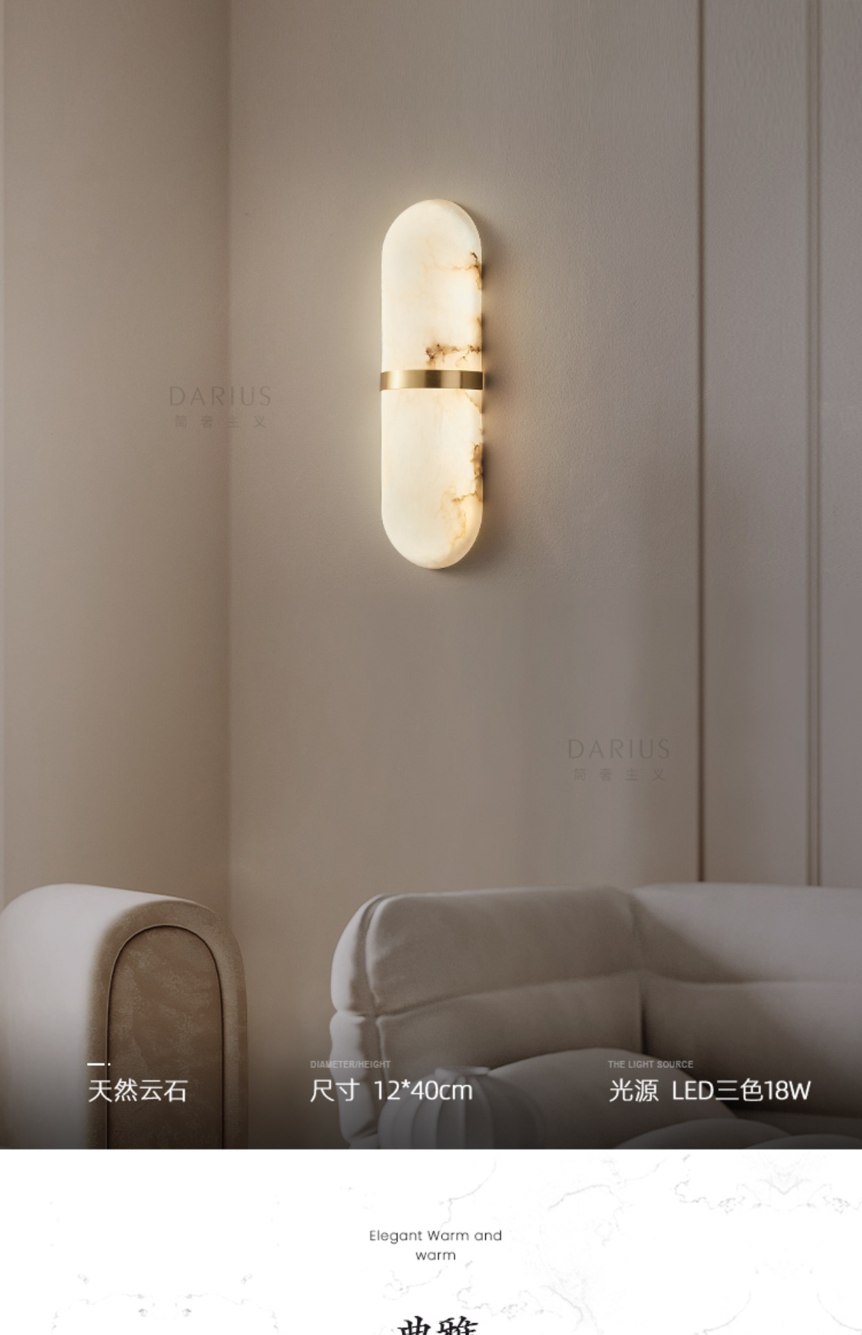 북유럽 빛 럭셔리 대리석 벽 램프 거실 TV 배경 벽 침실 침실 램프 문 통로 모방 대리석 타원형
