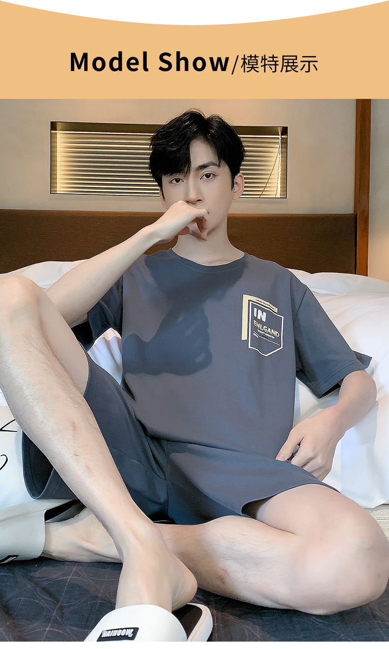 남성용 순면 잠옷, 여름용 반팔 반바지, 외부에서 착용 가능한 양복, 심플한 캐주얼 플러스 사이즈 남성용 시원한 홈웨어스토어 가기