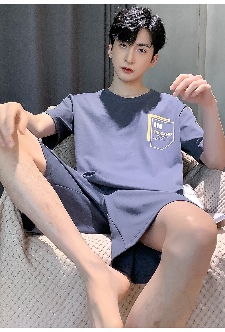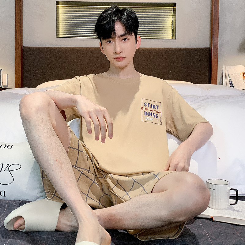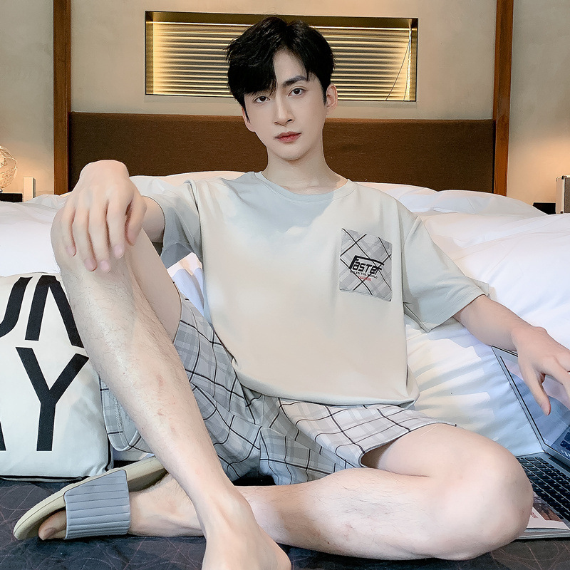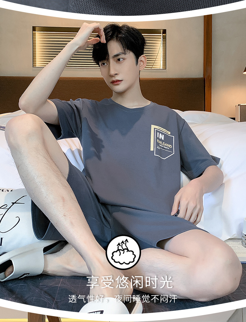 남성용 순면 잠옷, 여름용 반팔 반바지, 외부에서 착용 가능한 양복, 심플한 캐주얼 플러스 사이즈 남성용 시원한 홈웨어
