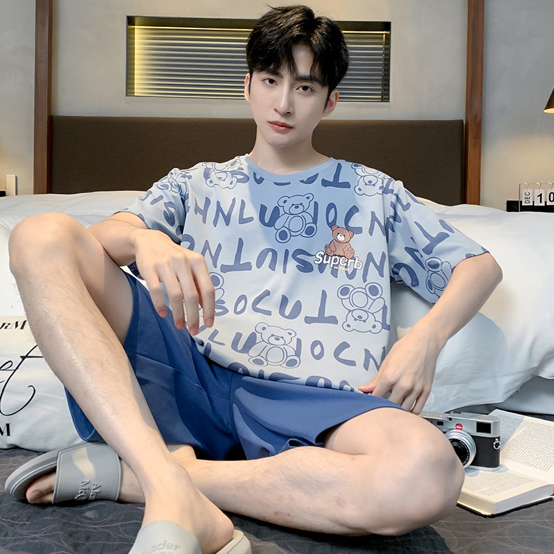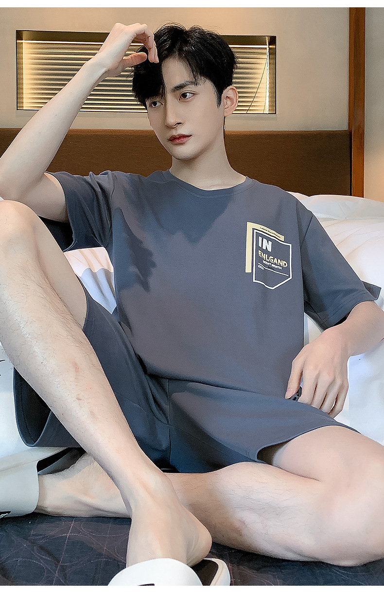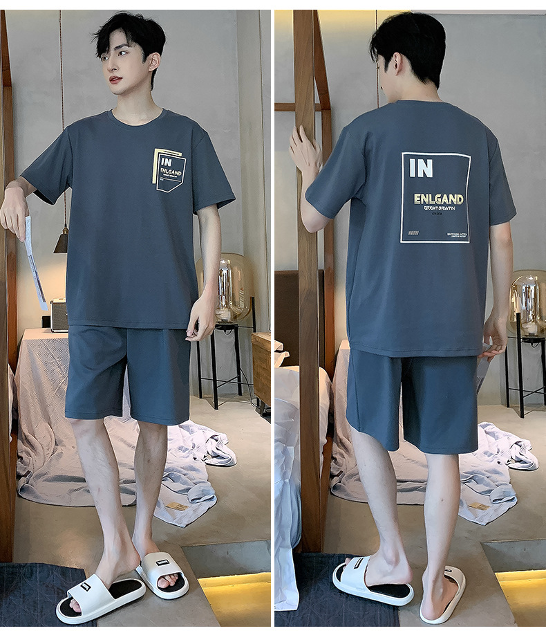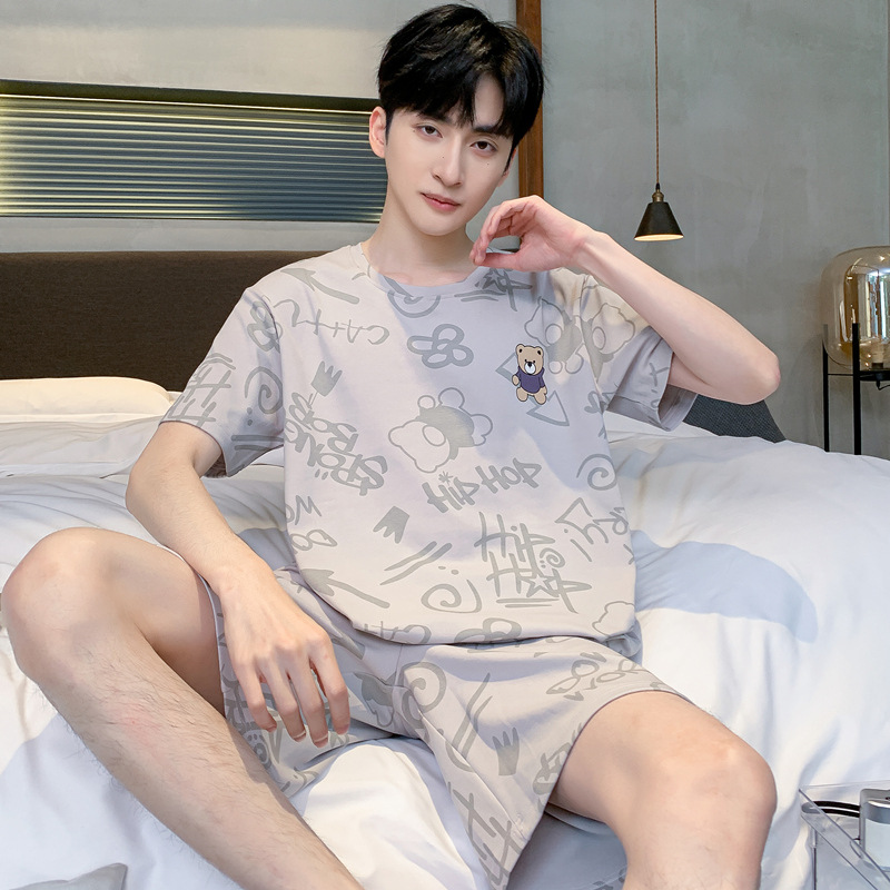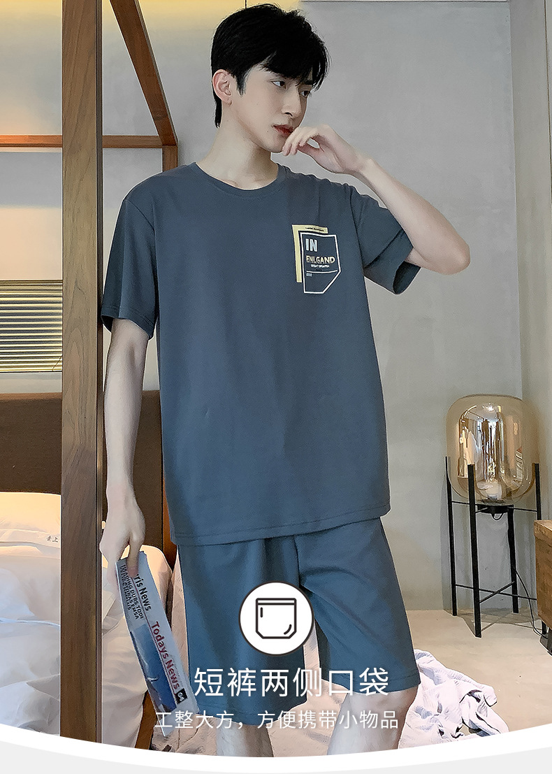 남성용 순면 잠옷, 여름용 반팔 반바지, 외부에서 착용 가능한 양복, 심플한 캐주얼 플러스 사이즈 남성용 시원한 홈웨어