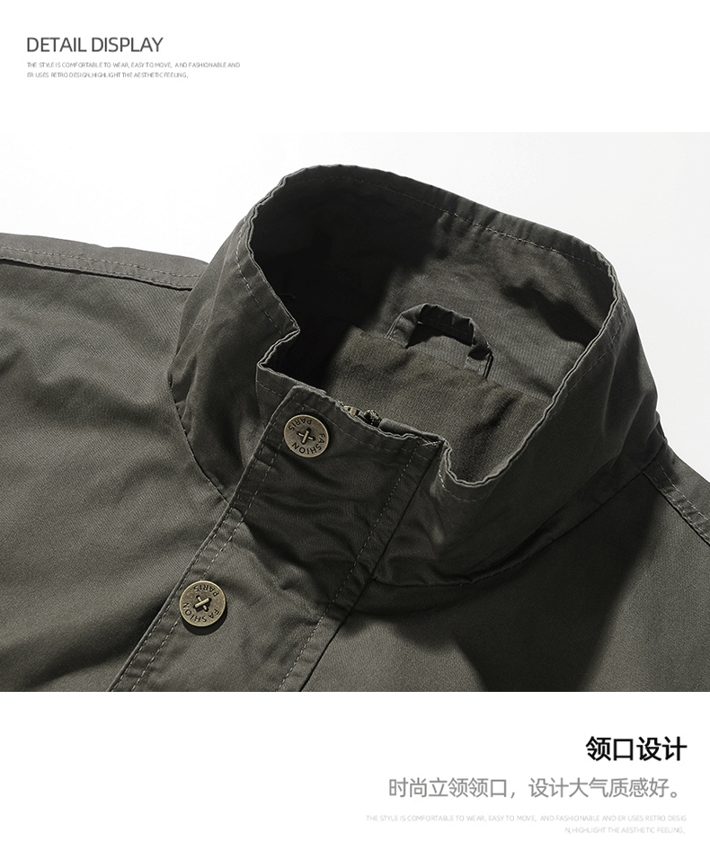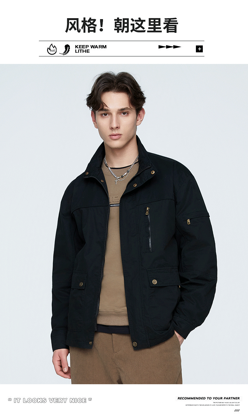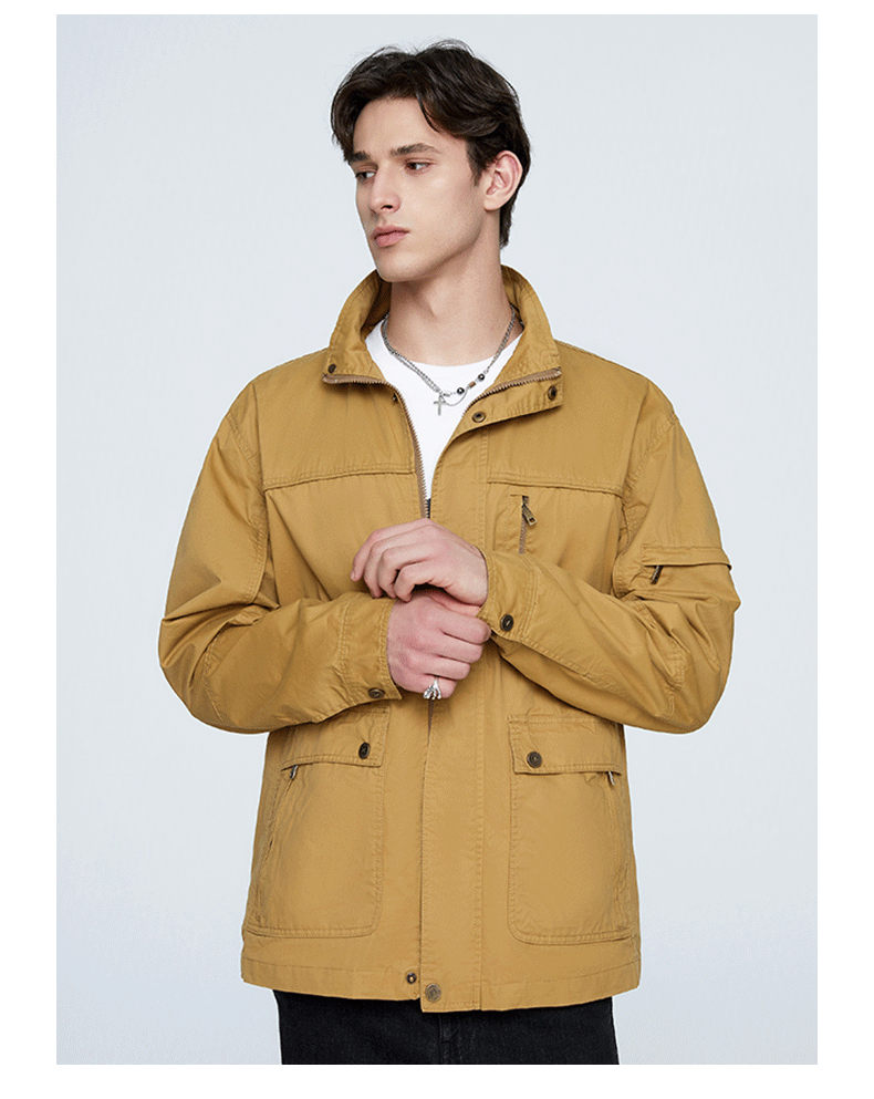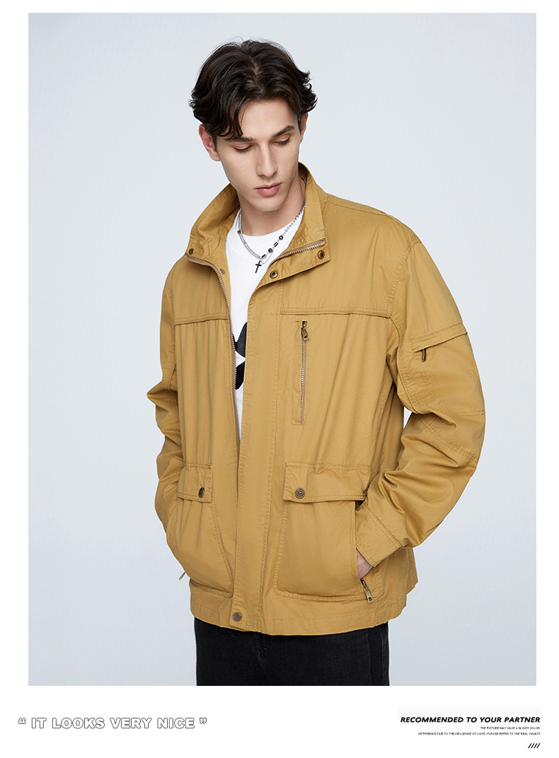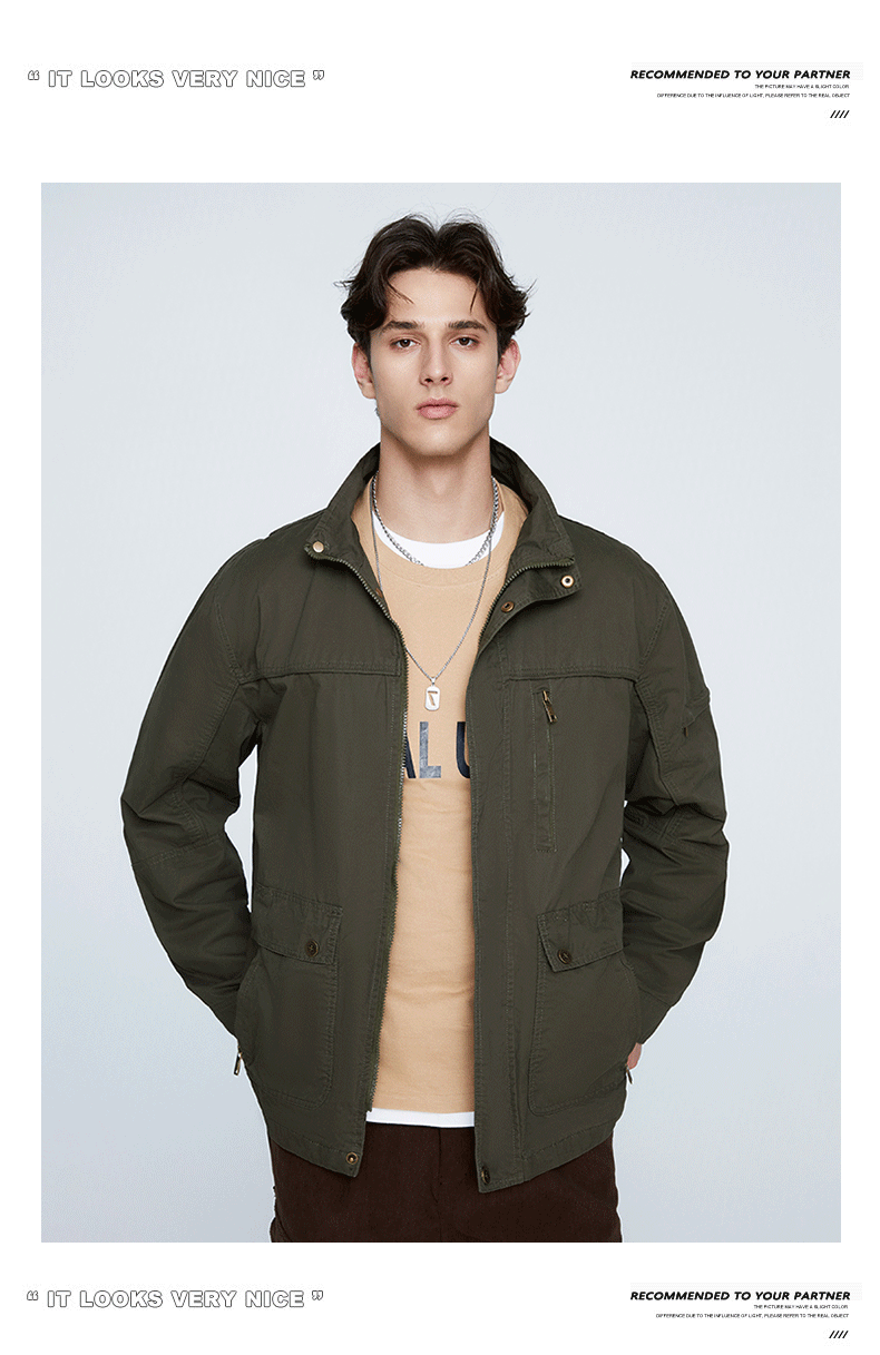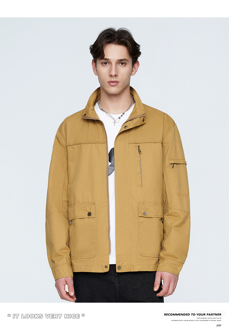 OLA 春秋款男士薄款美式工装多袋休闲夹克宽松百搭简约风运动户外