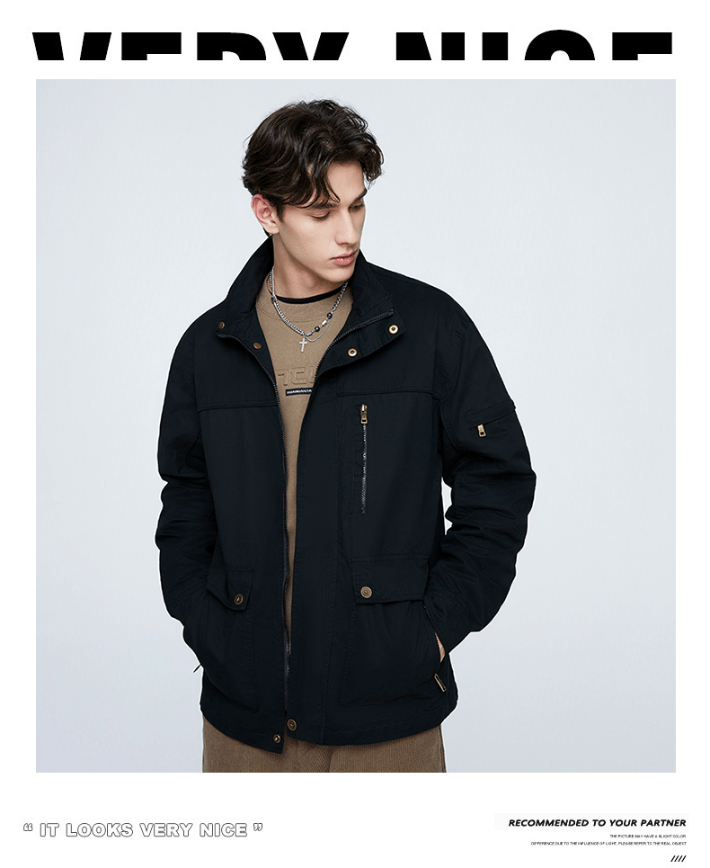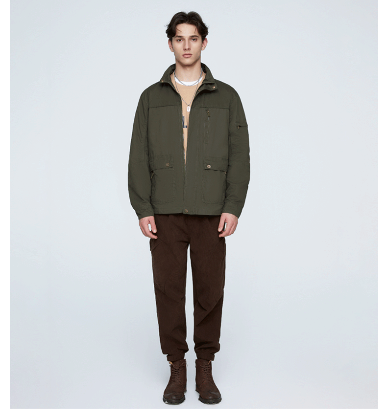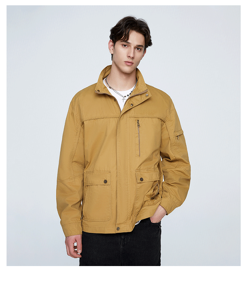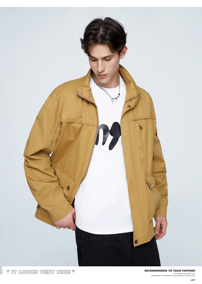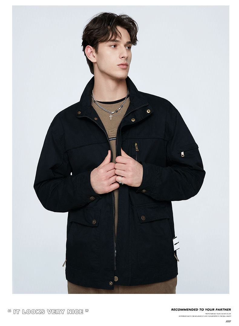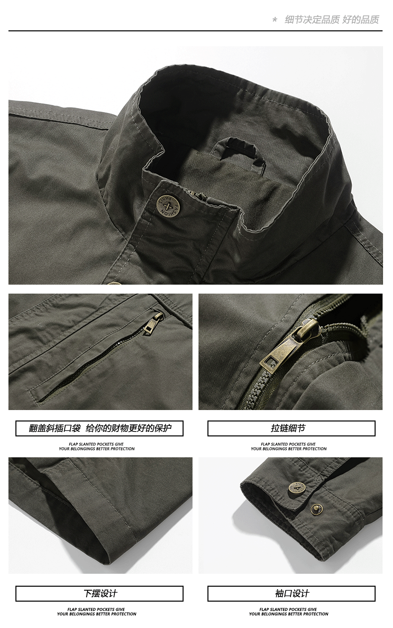 OLA 春秋款男士薄款美式工装多袋休闲夹克宽松百搭简约风运动户外