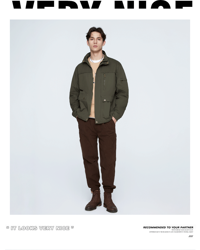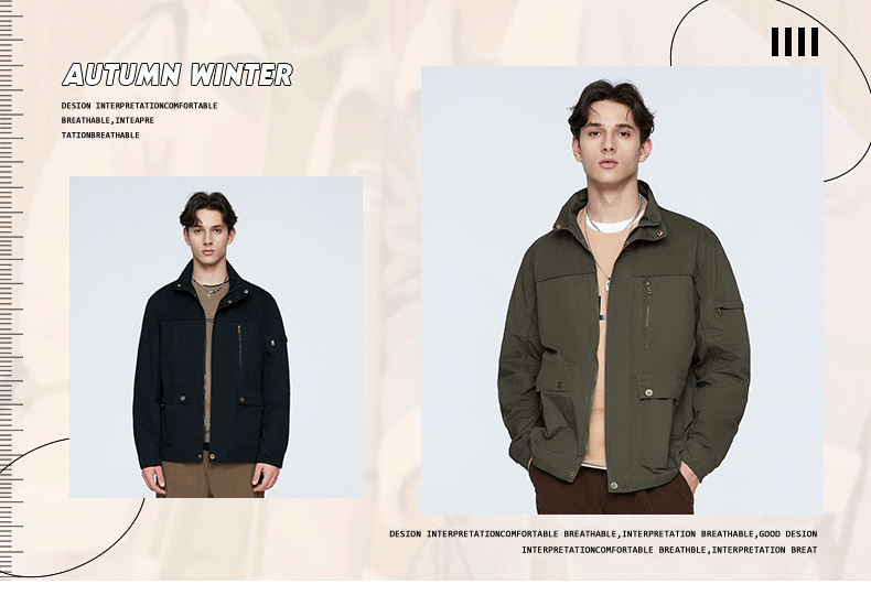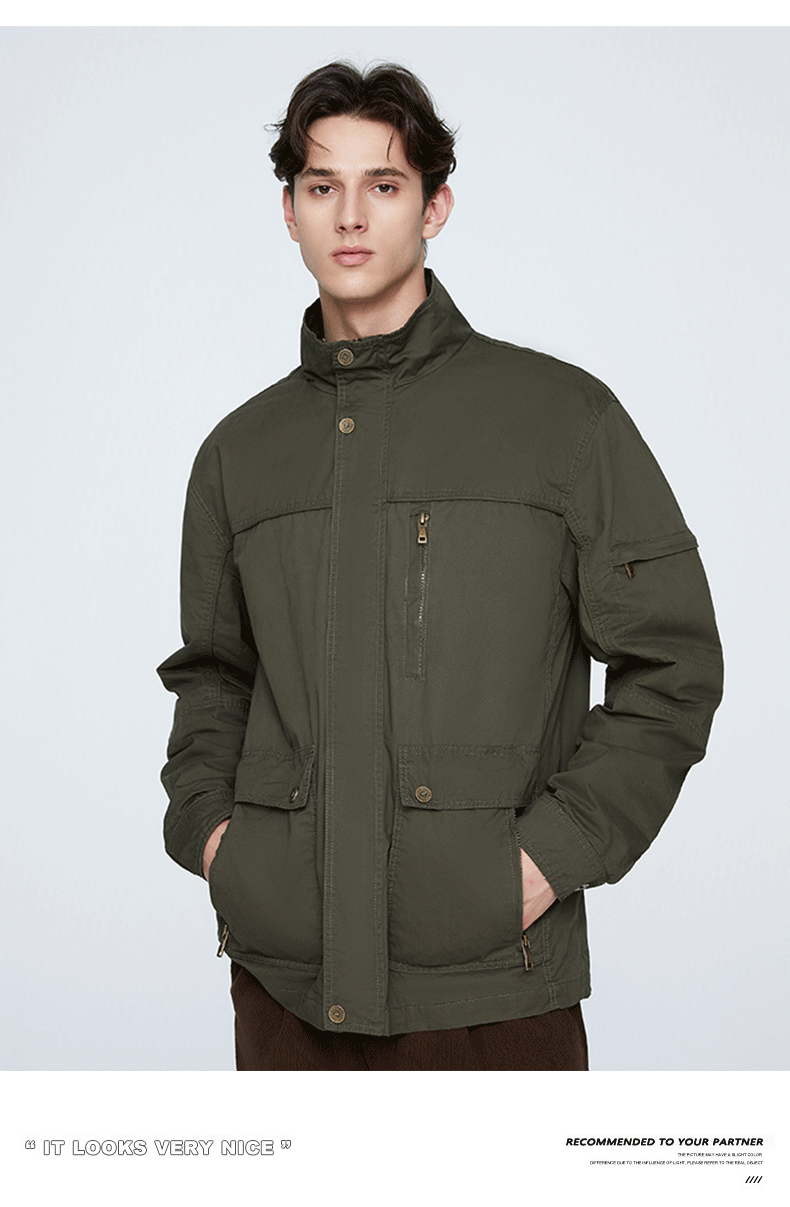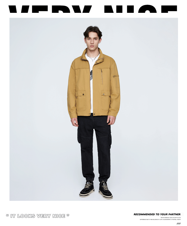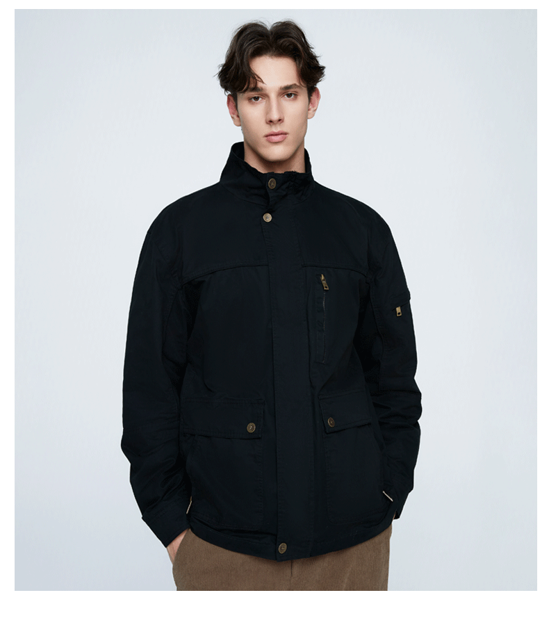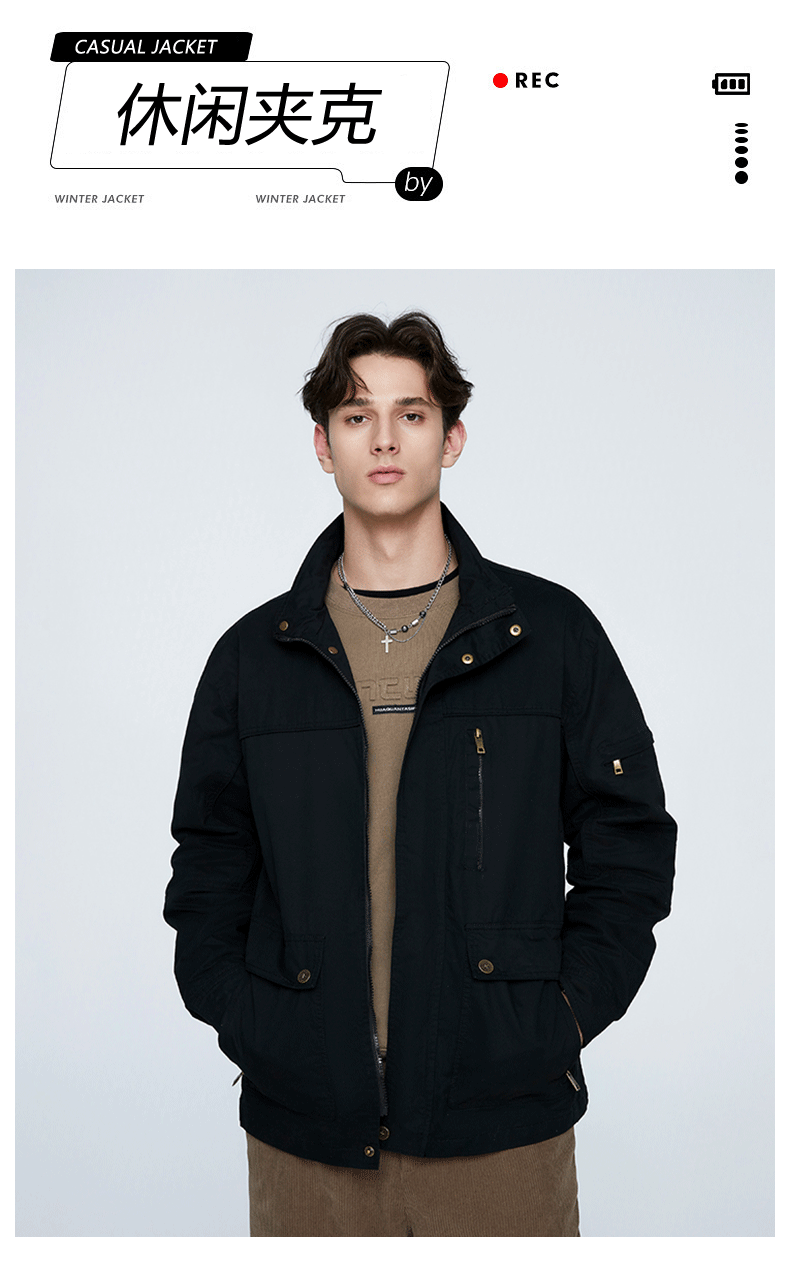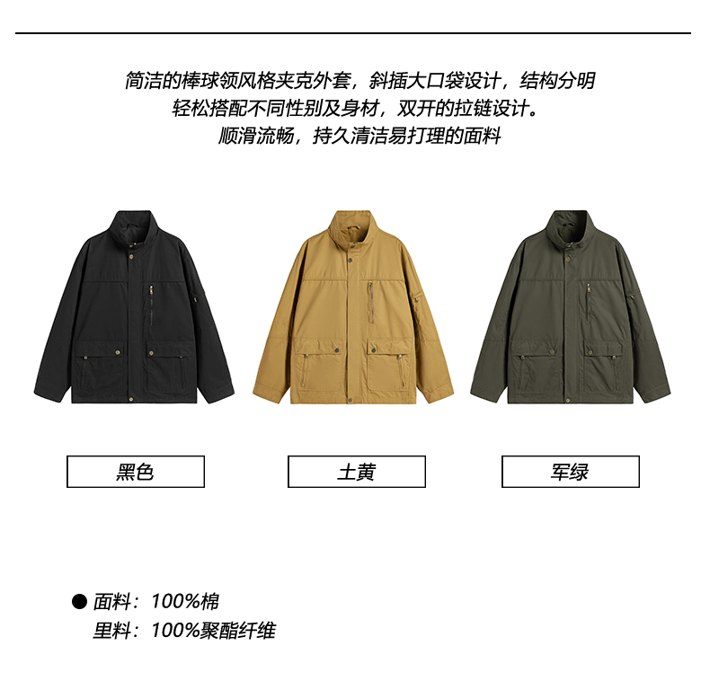 OLA 春秋款男士薄款美式工装多袋休闲夹克宽松百搭简约风运动户外
