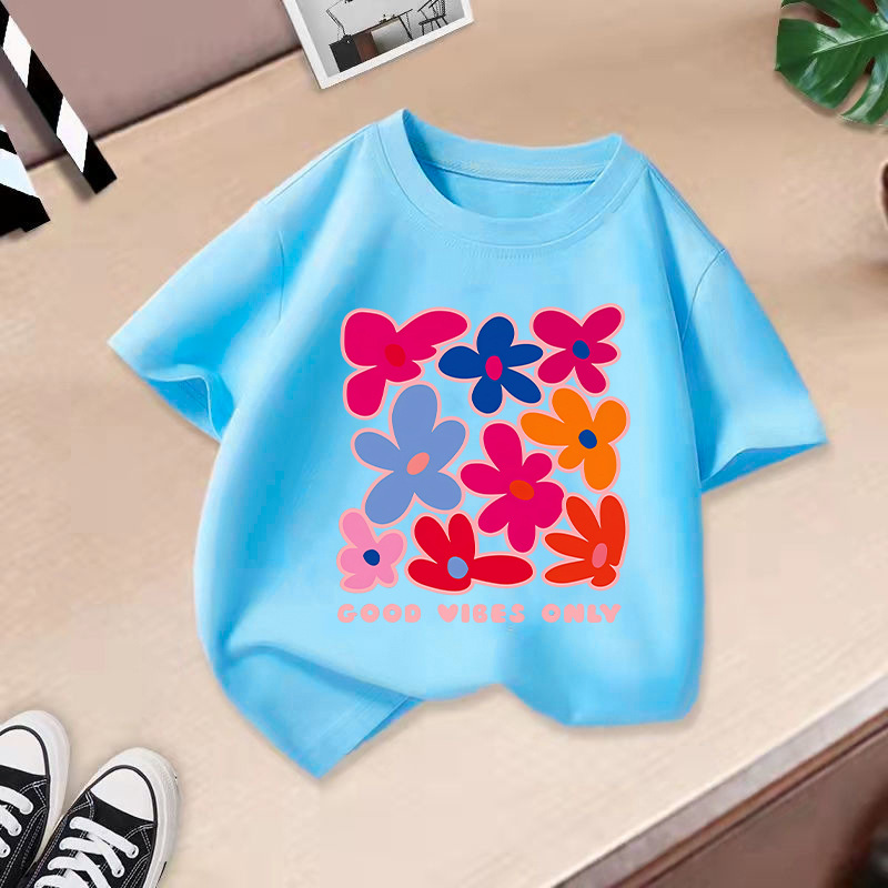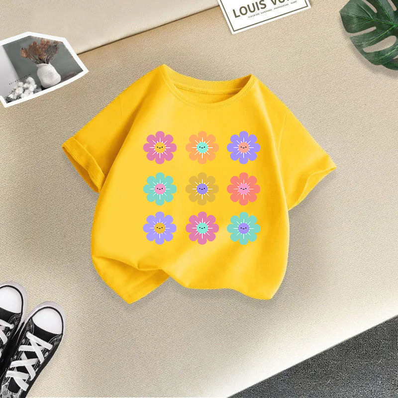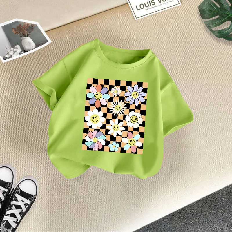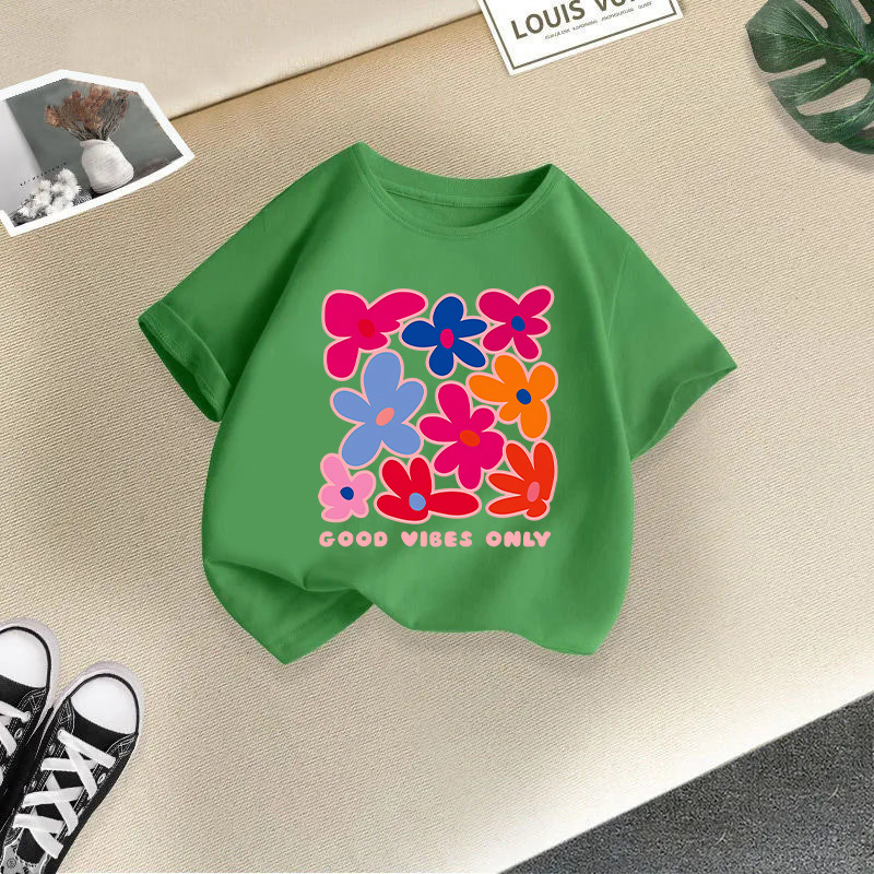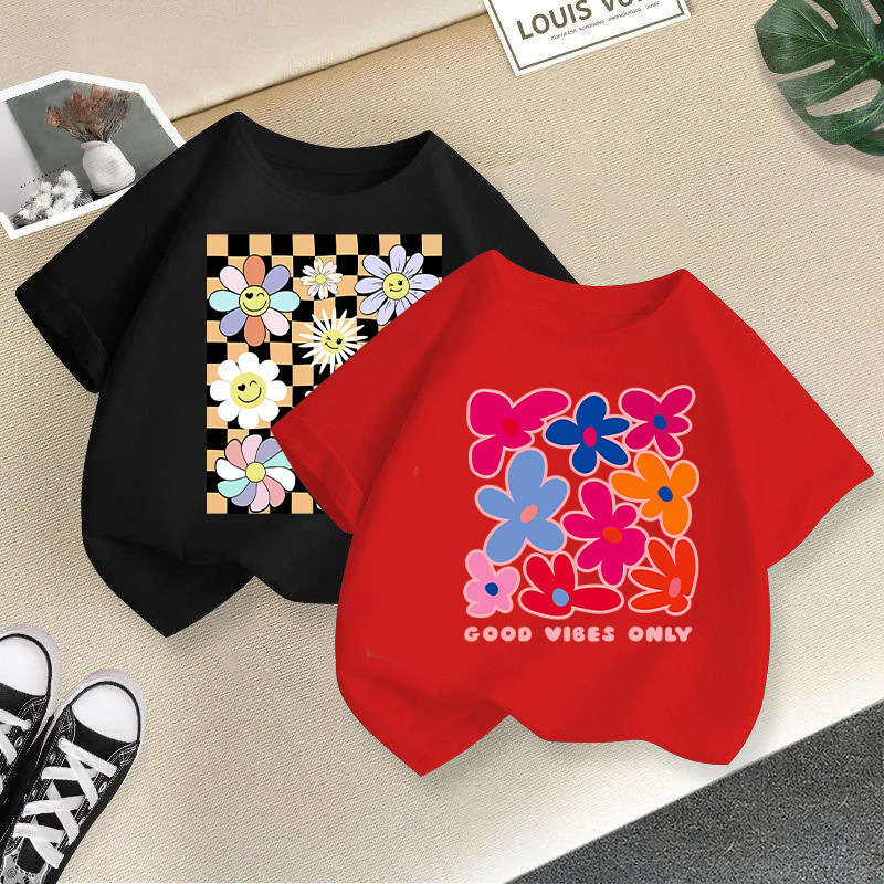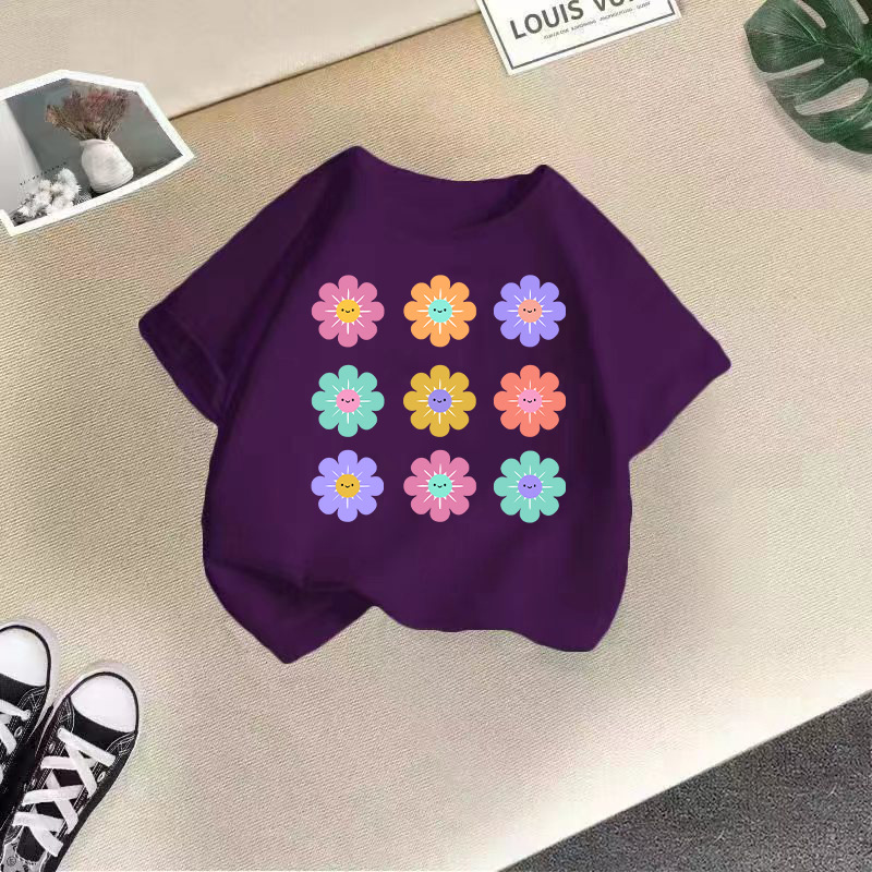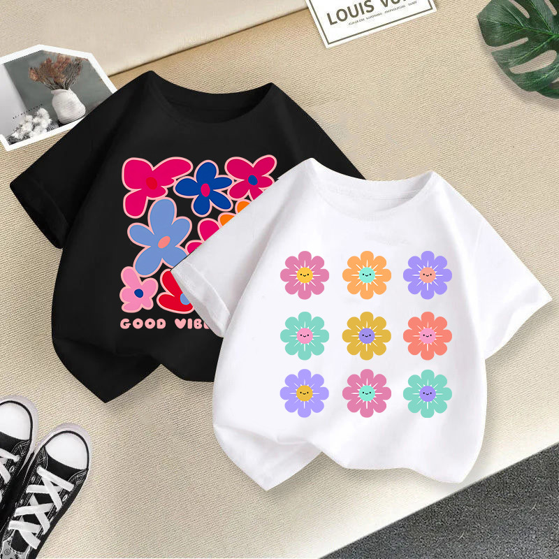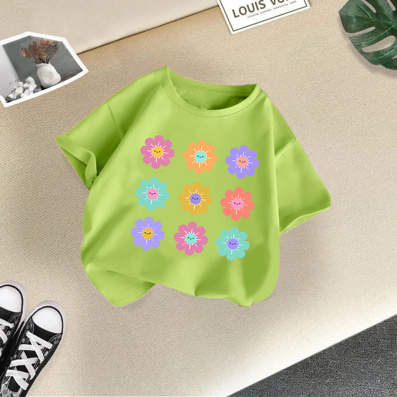 여아 반팔 티셔츠 면 2026 신상 아동 만화 프린트 반팔 여아 한국 스타일 트렌디 해외 아동복스토어 가기