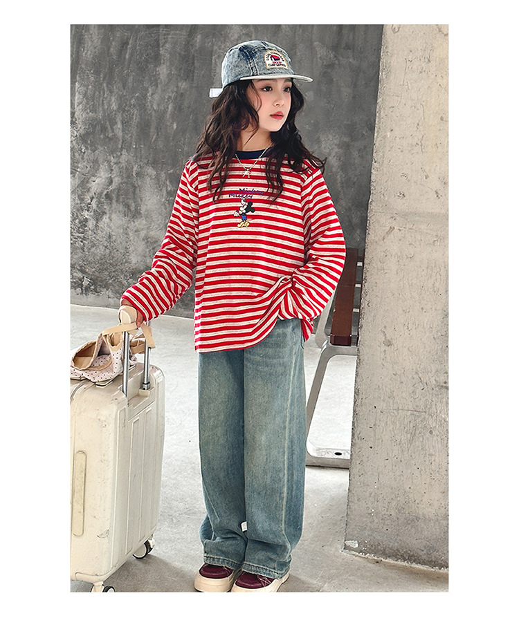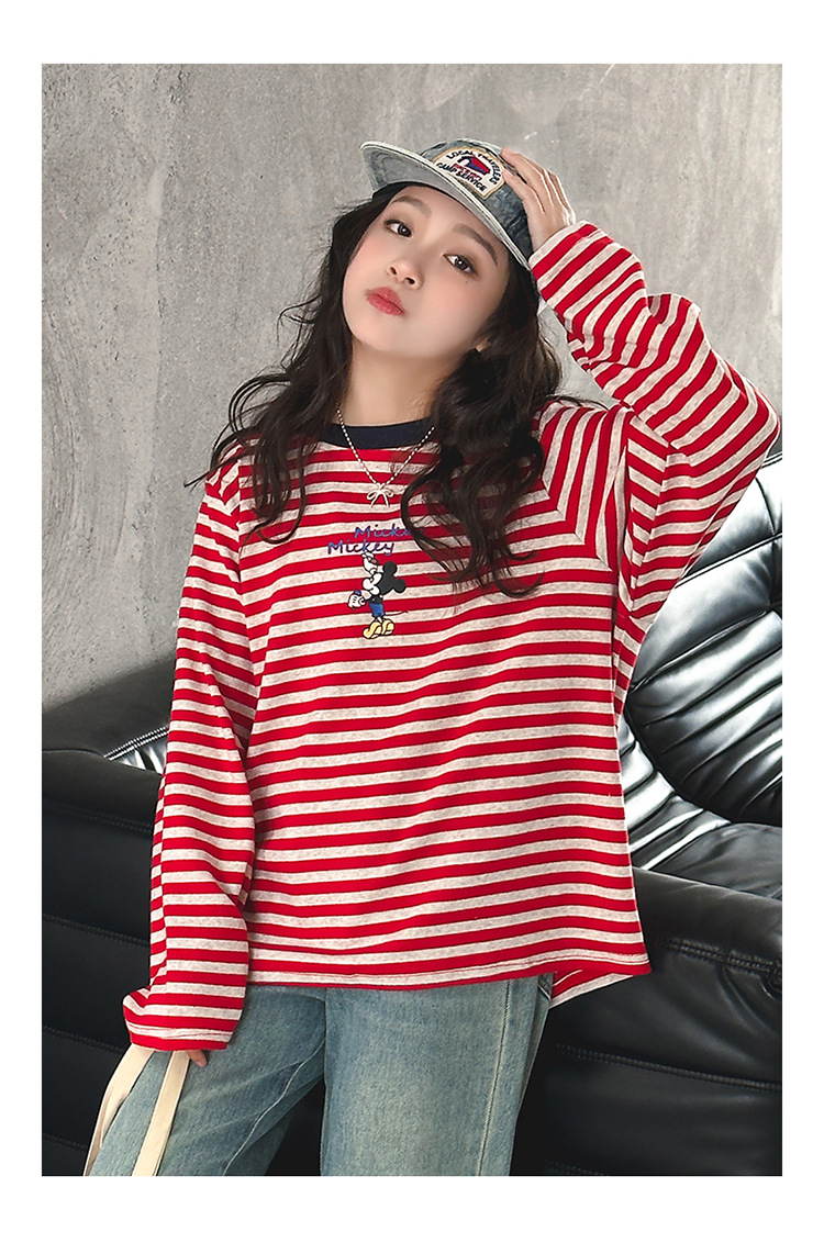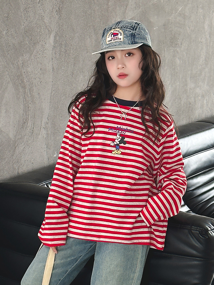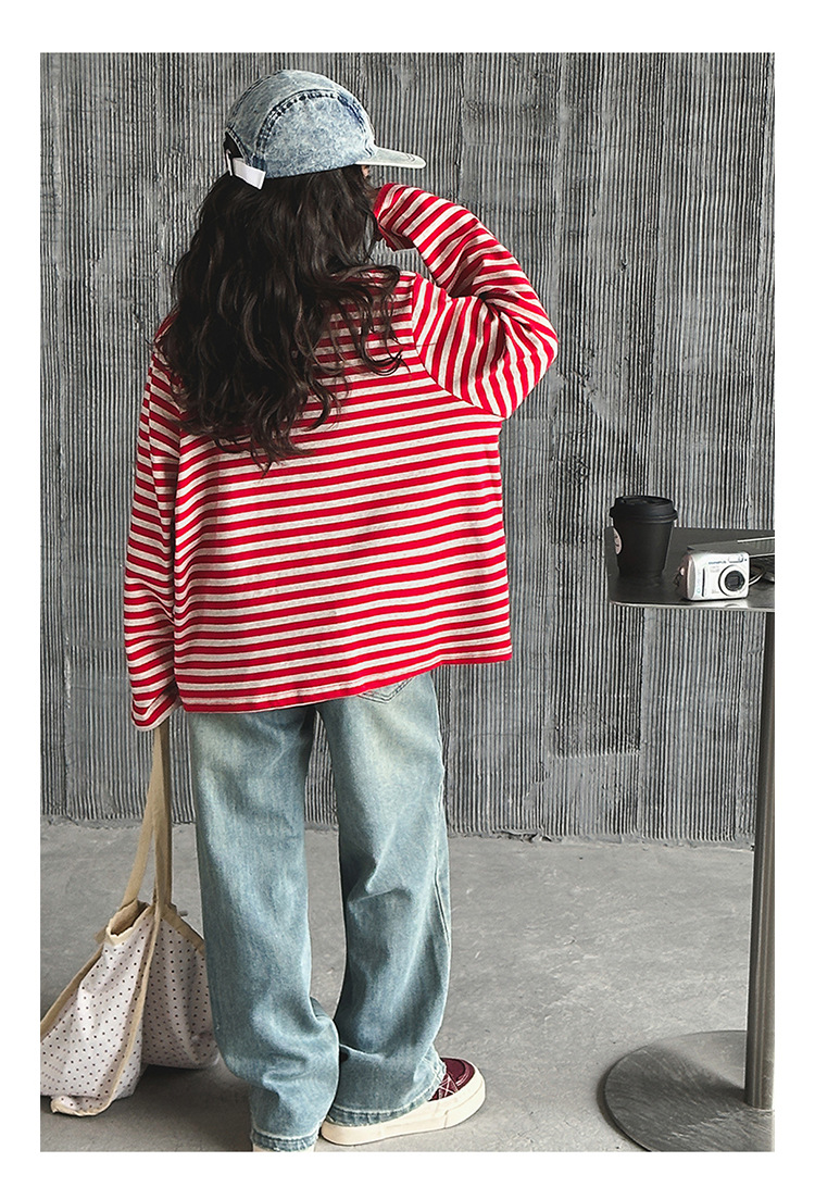 소녀 긴팔베이스 셔츠 봄과 가을 티셔츠 서양식 느슨한 캐주얼 탑 중대형 어린이 줄무늬 스웨터 아동복 트렌디스토어 가기