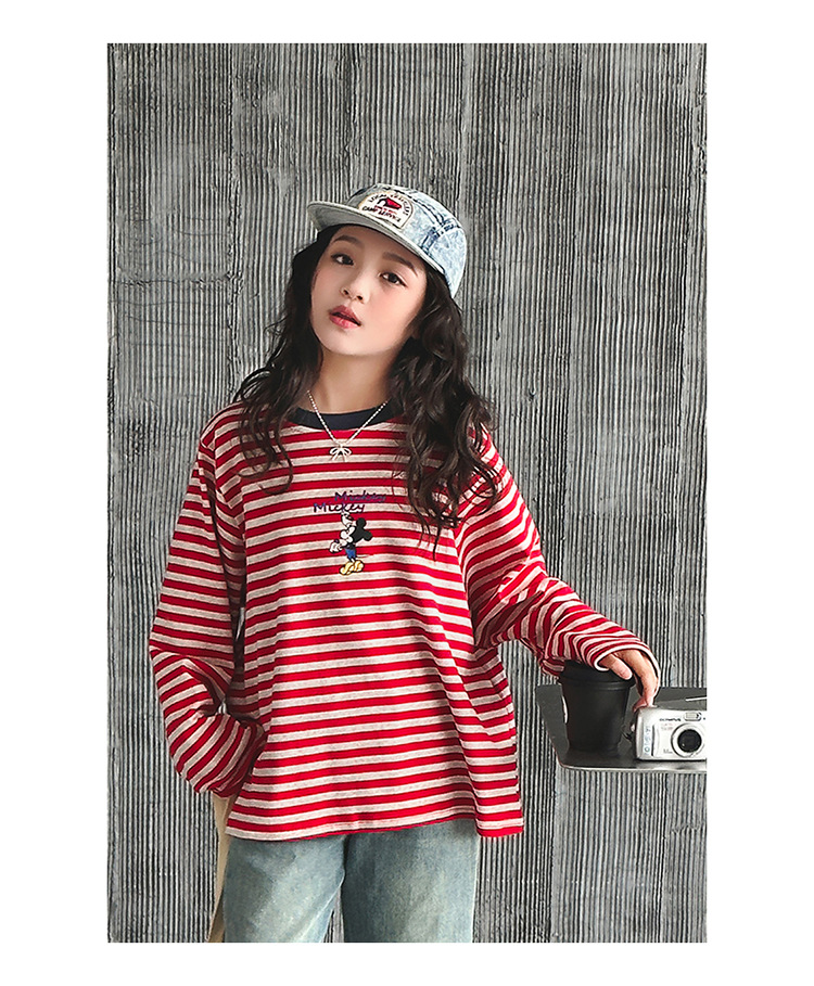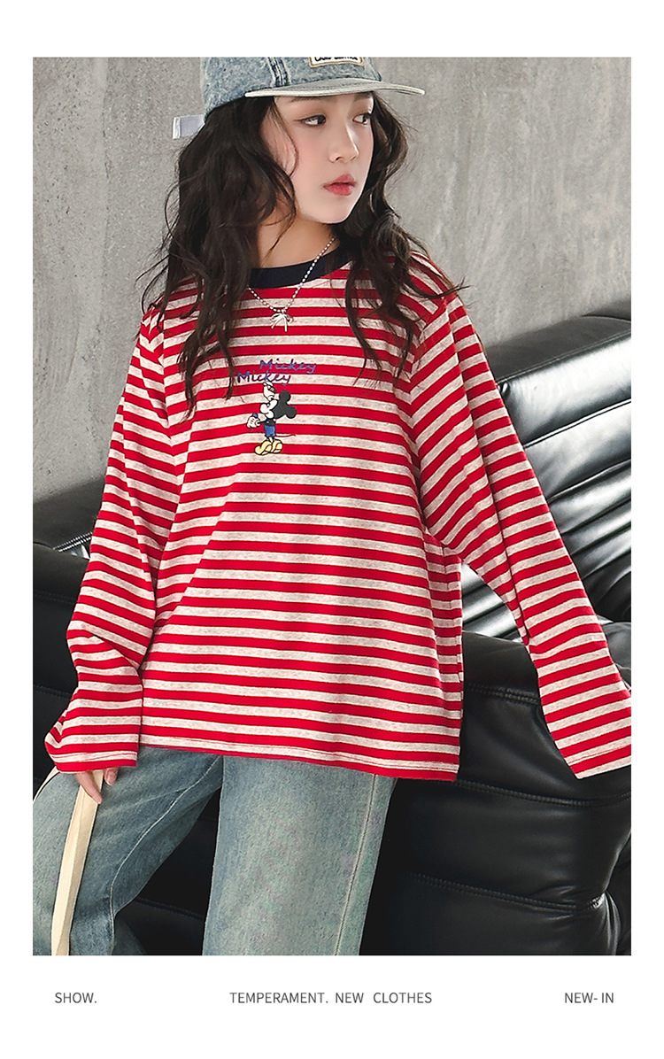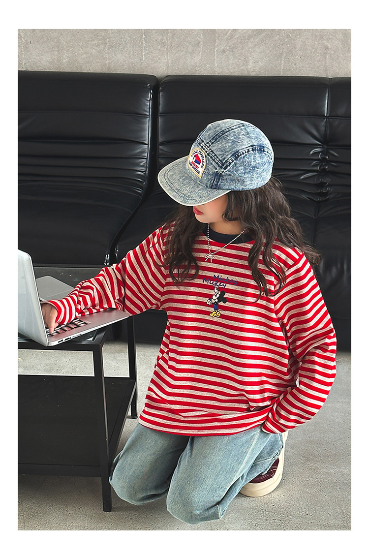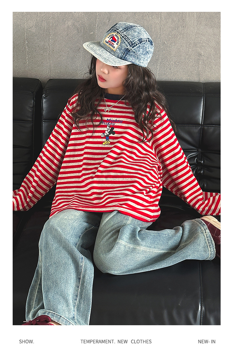 소녀 긴팔베이스 셔츠 봄과 가을 티셔츠 서양식 느슨한 캐주얼 탑 중대형 어린이 줄무늬 스웨터 아동복 트렌디스토어 가기