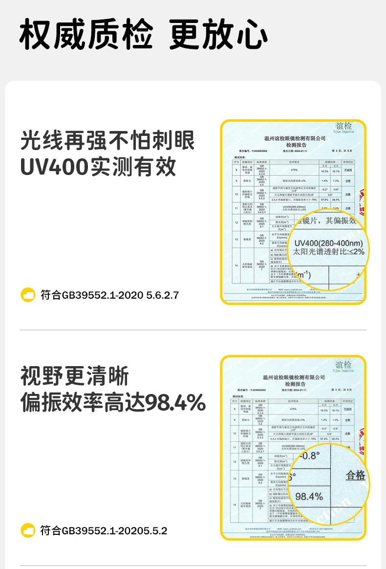 (8)商品说明:1.TAC偏光镜片 高倍数防晒 视野清晰不眩晕