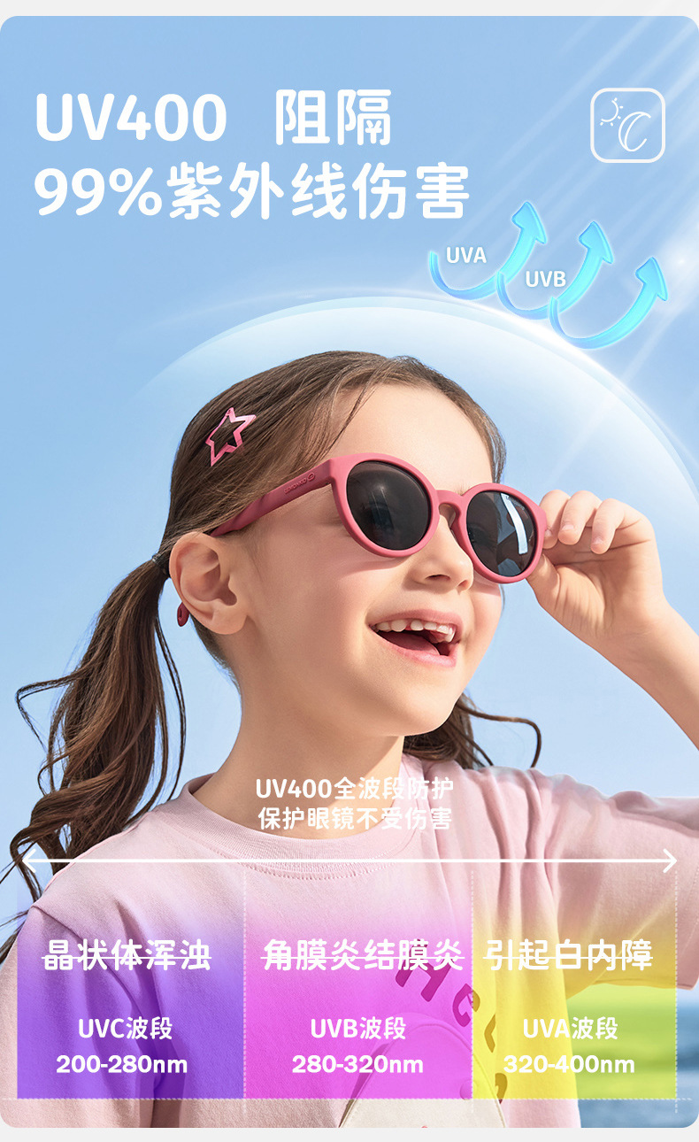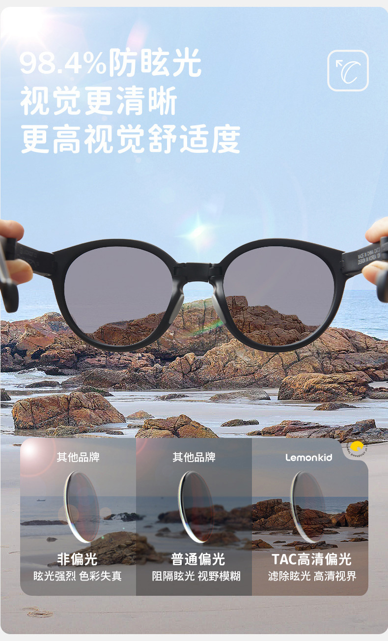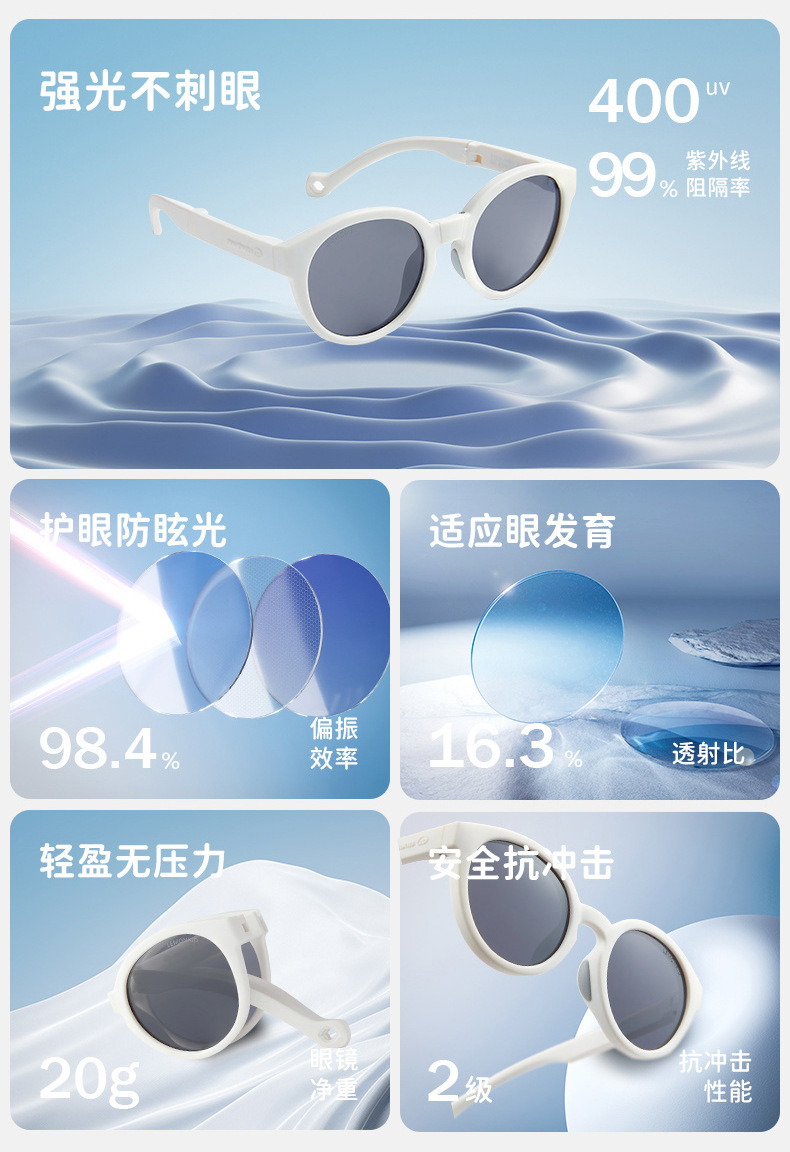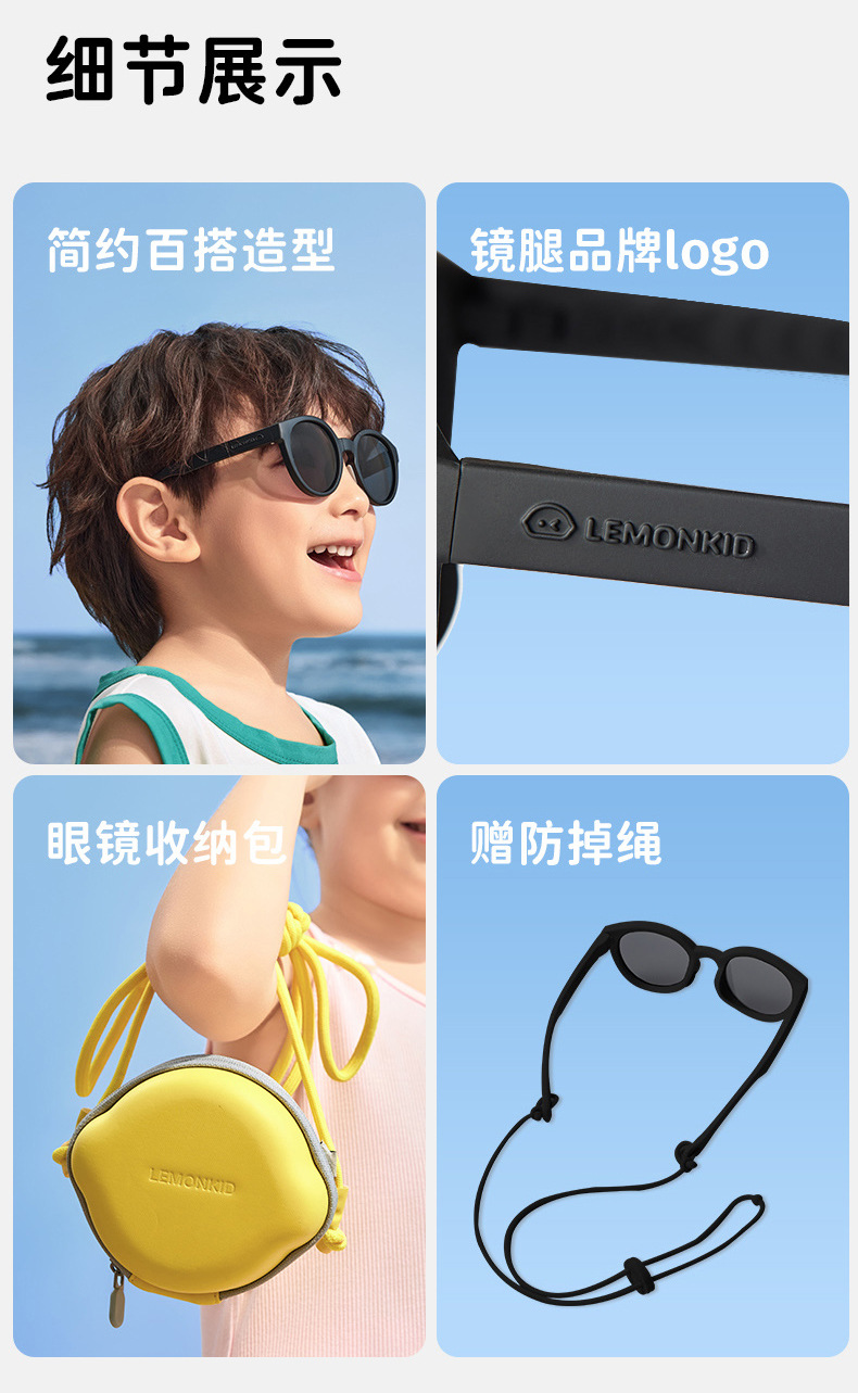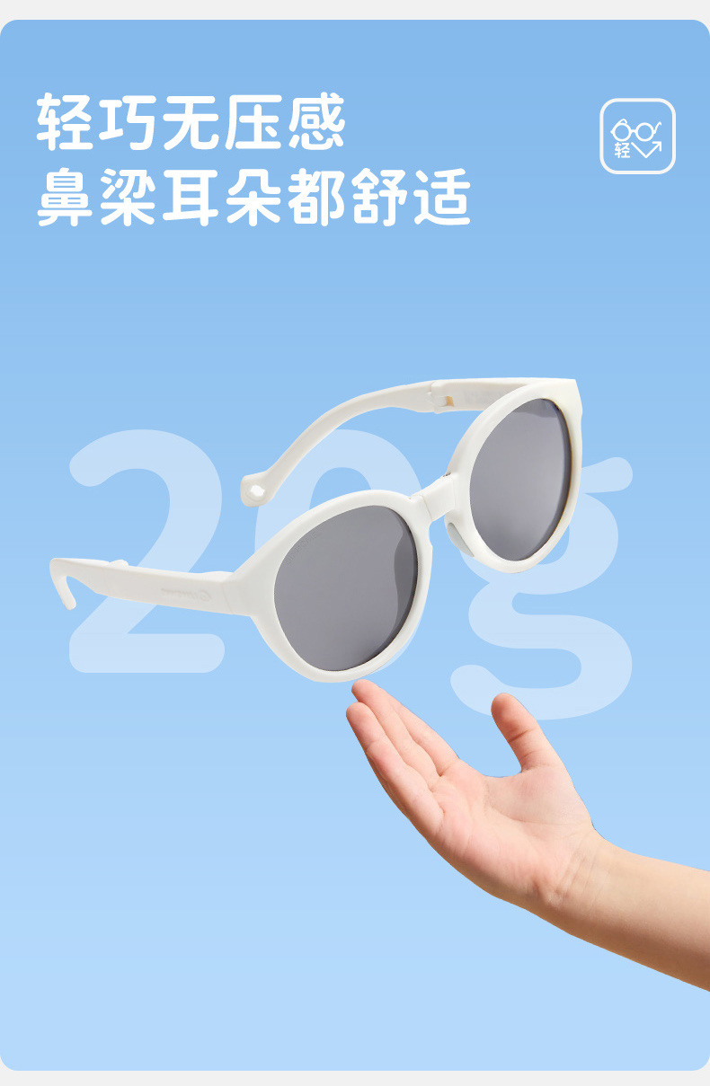 3.高回弹镜腿 根据宝贝脸型随意调节宽度 佩戴不勒脸 定制专属感
