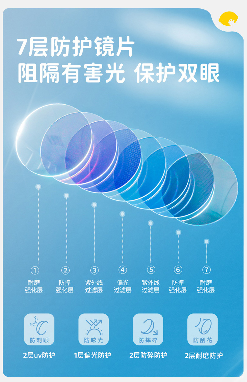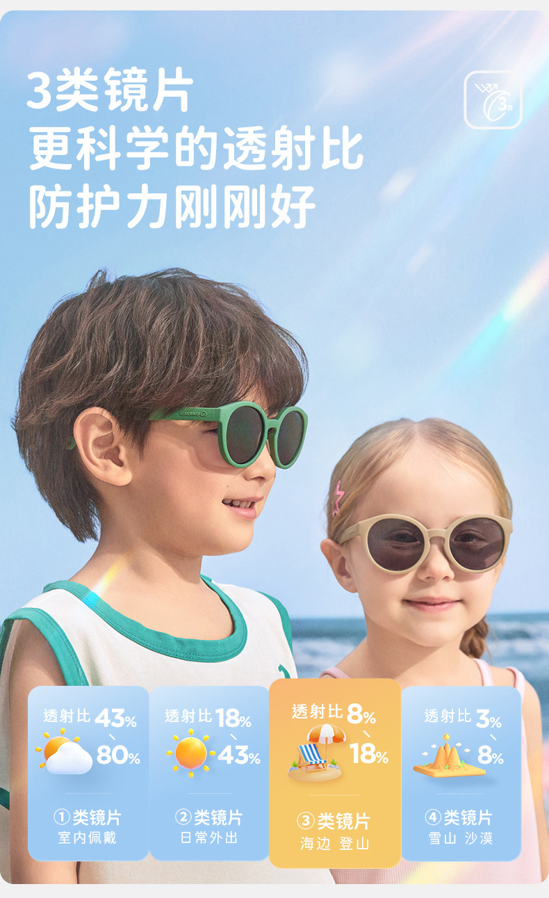 2.一体成型镜片 专为亚洲宝宝设计 防滑不压鼻梁